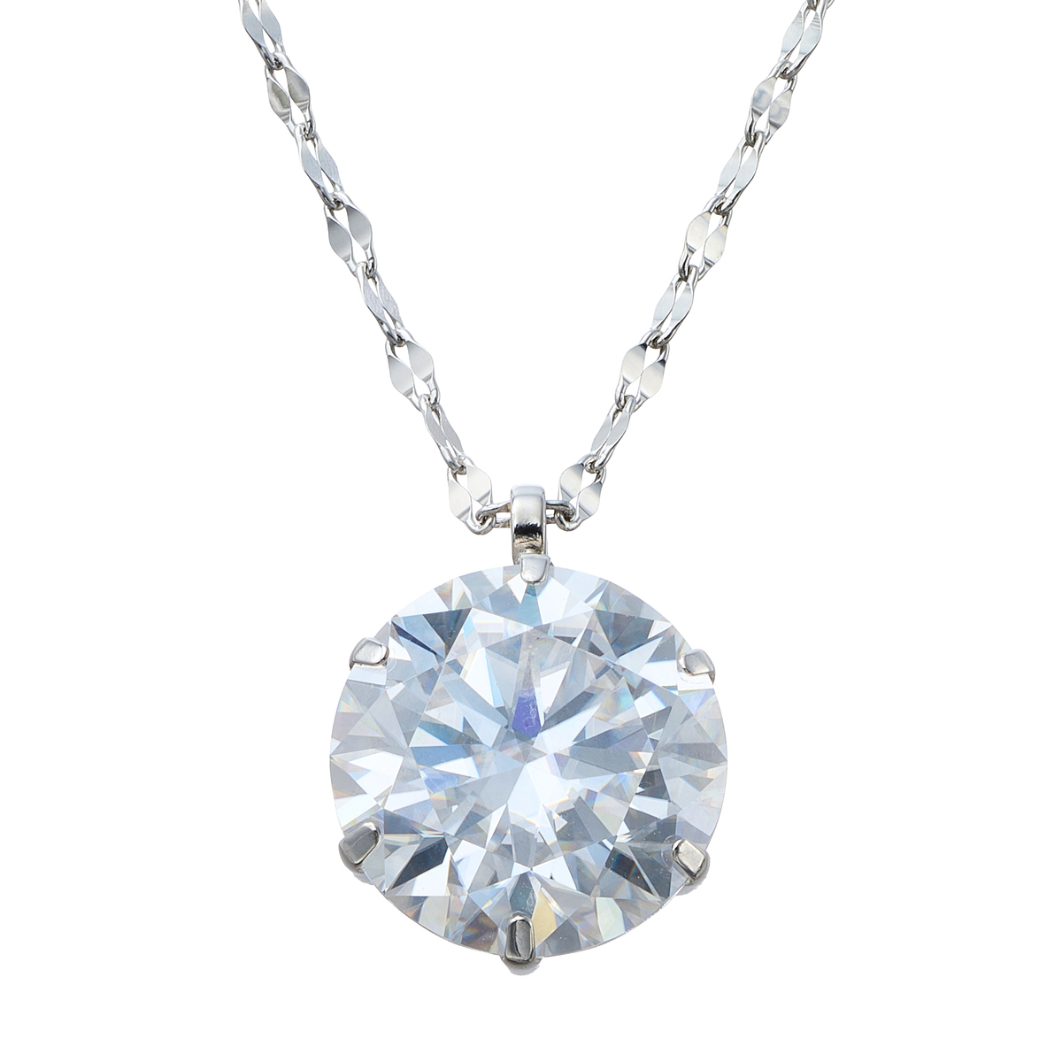 2ctUPの合成モアッサナイトをセッティング。モアッサナイトの輝きとキラめきを引き立てる、シンプルな6本爪のペンダントです。華やかなペタルチェーンを使用しました