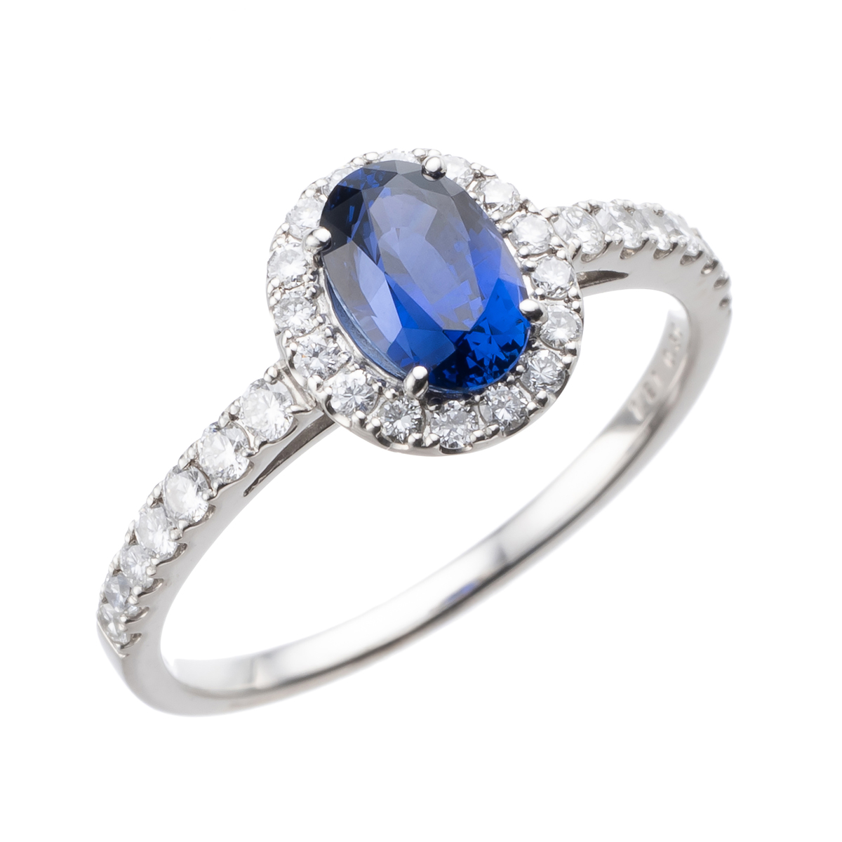 1.00ctUPのロイヤルブルーサファイヤを使用したリング。ダイヤモンドの煌めきも添えて華やかなデザインに仕上げました