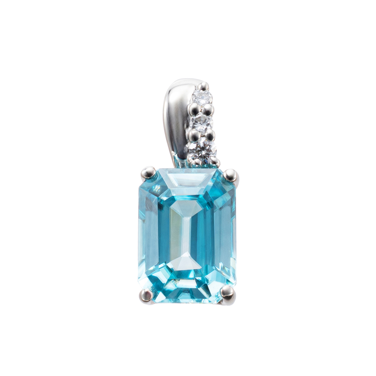 カンボジア・ラタナキリ産の天然ブルージルコンを使用したペンダントヘッド。鮮やかな青の輝きが胸元を美しく彩ります