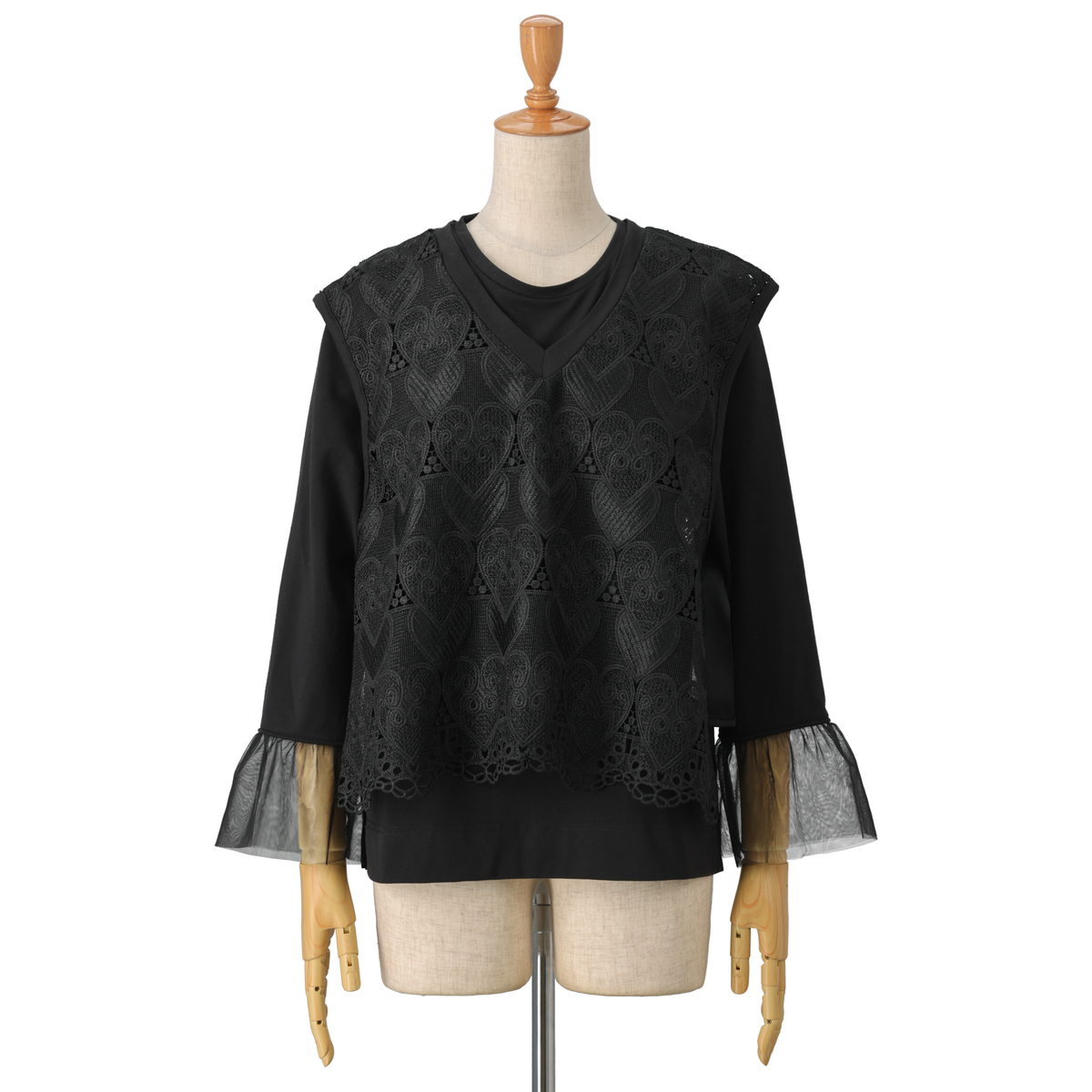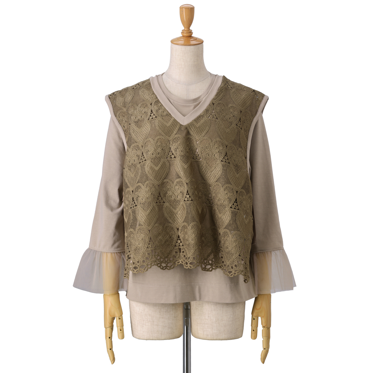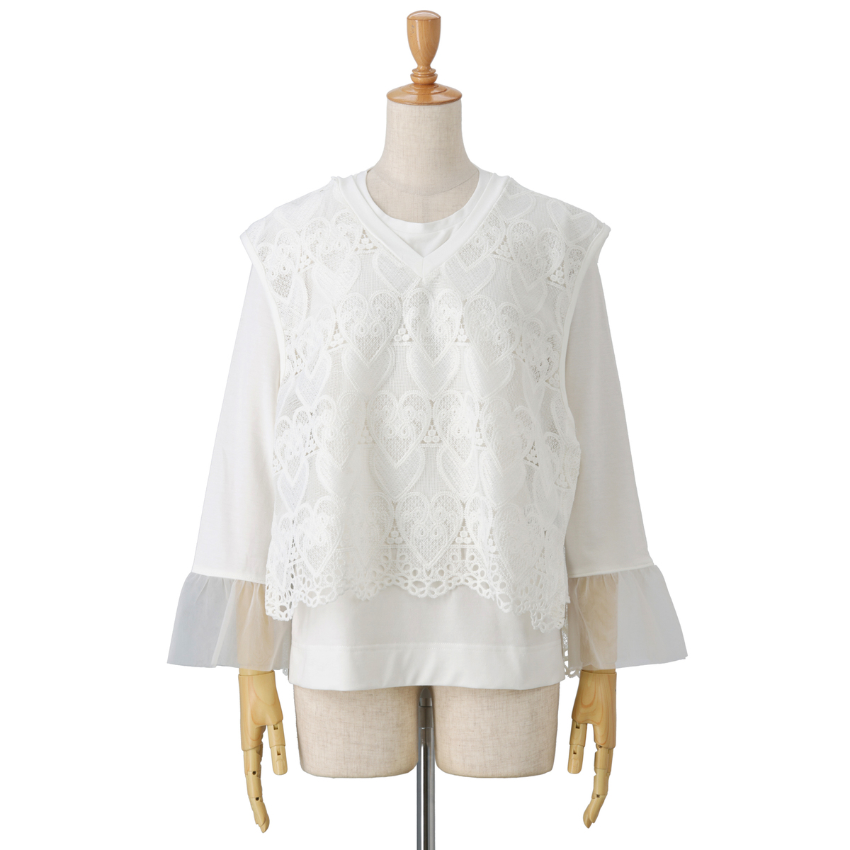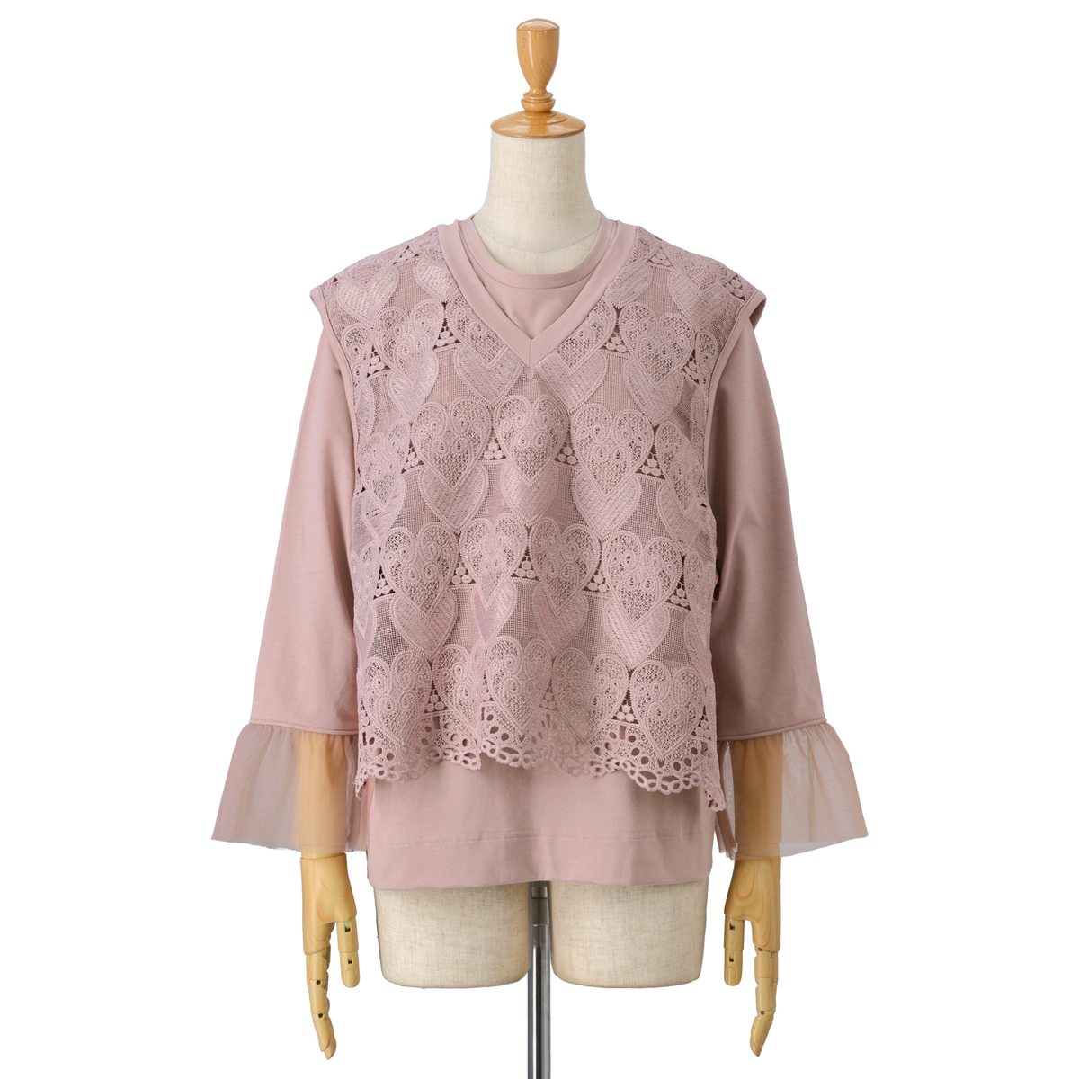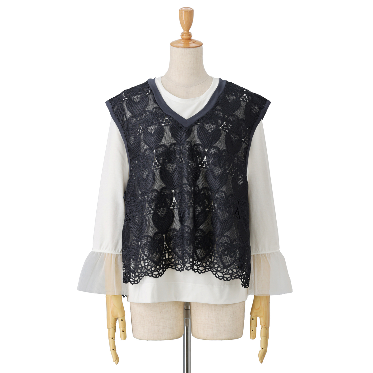 No. 751762 &LOVE コーデが楽々ハートレースベスト&袖フリルトップスセット