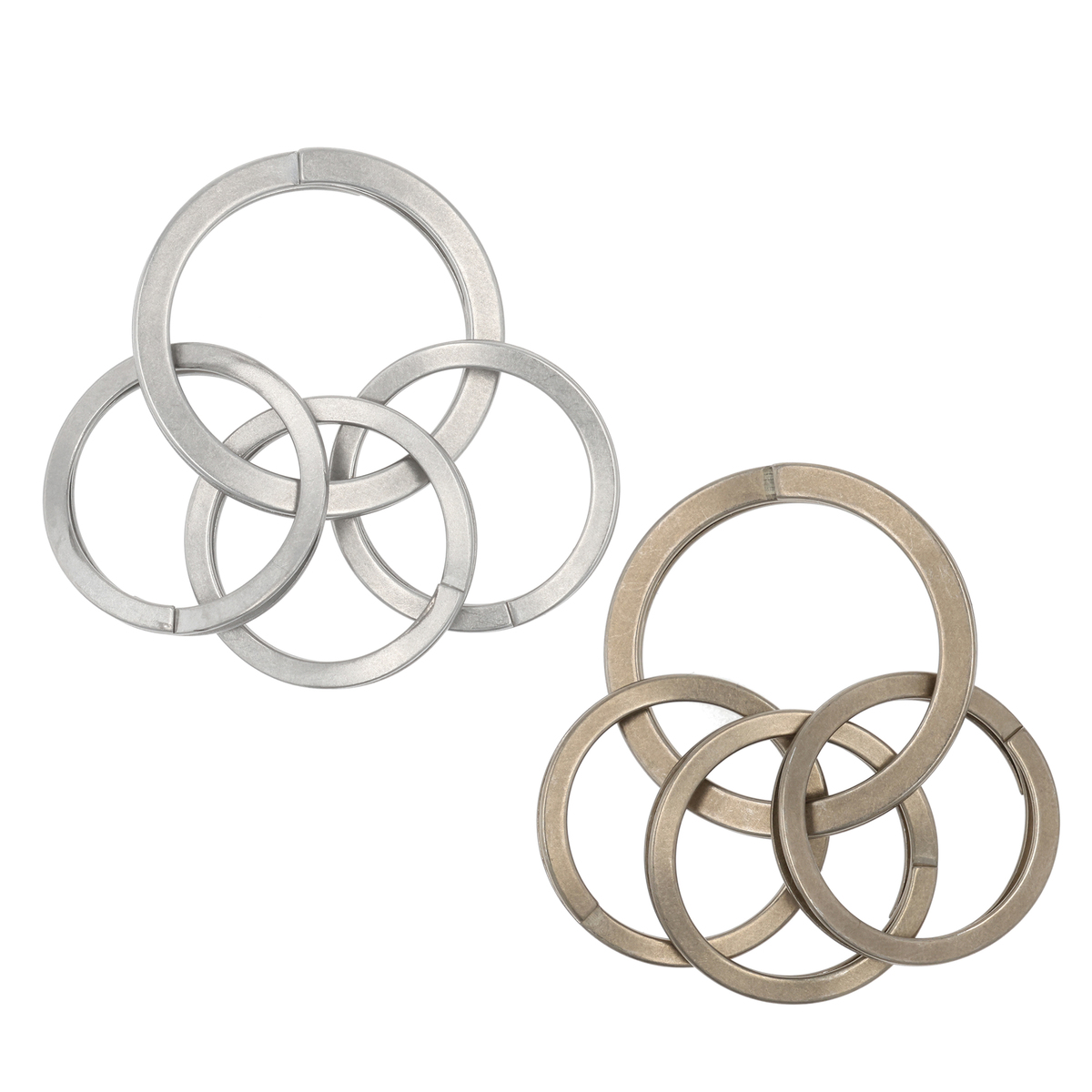 [サイズ] 大/外径 直径30mm 小/外径 直径23.5mm [重量] 大/3g 小/1.5g [材質] ステンレススチール [使用方法] 1.リングの大・小のどちらかを用意 2.鍵をウェーブ部分に差し込む 3.鍵穴にリング先端を通し、リングを回転して、鍵をセット 4.お好みでリングを組み合わせてください 【日本製】 [セット内容] 本体(大×1、小×3)×2