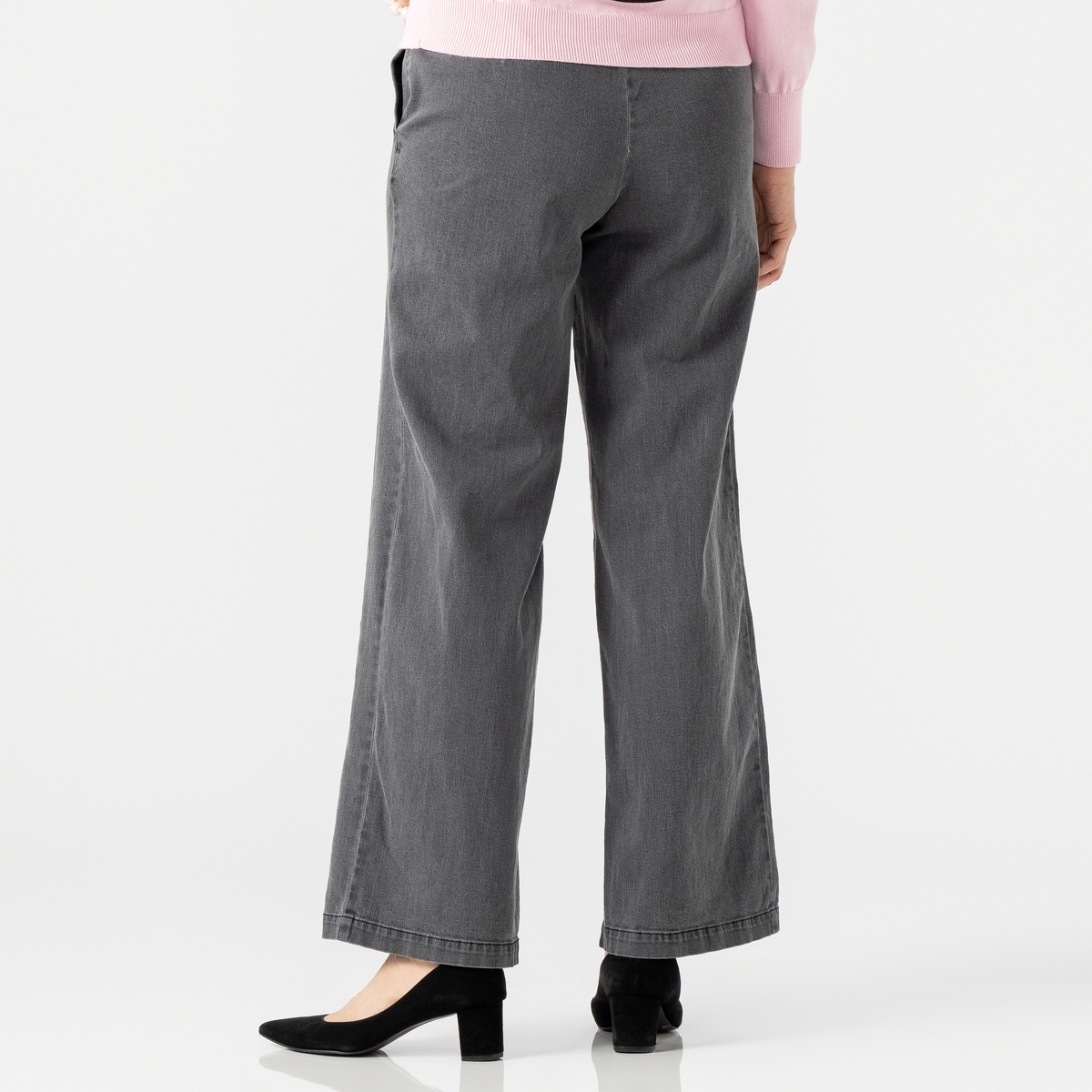 程良いワイドシルエットで脚のラインを拾いにくく、縦のラインを強調し、美脚効果も期待できます