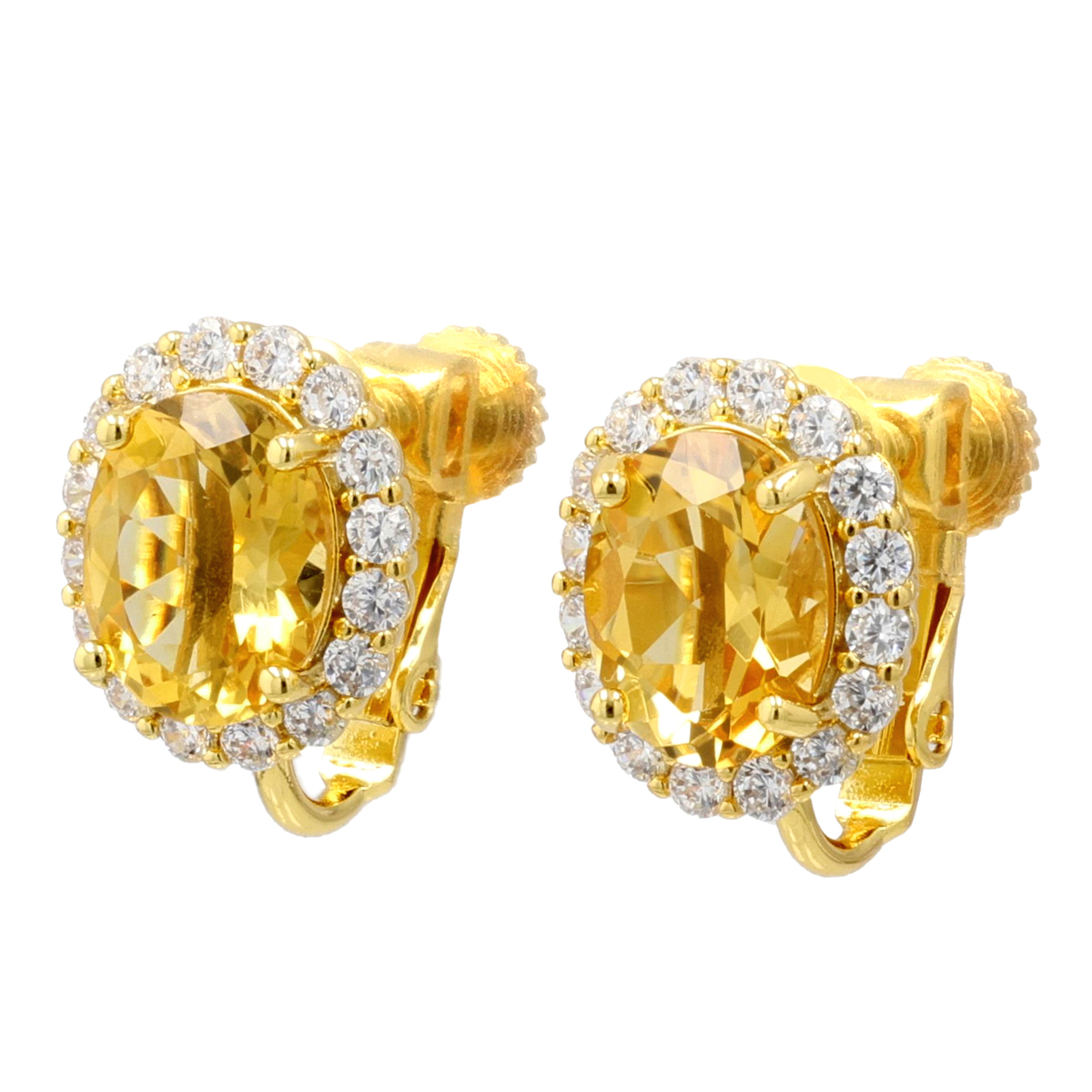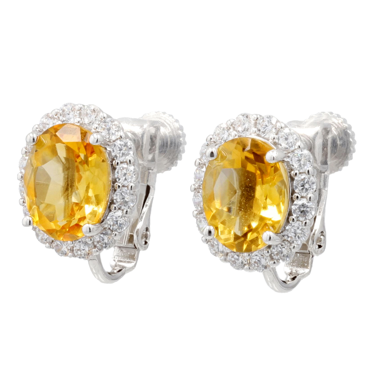計3.0ctUPのシトリンを使ったオーバルのイヤリングまたはピアスです。シトリンならではの鮮やかなイエローが、お顔まわりを華やかに彩ります
