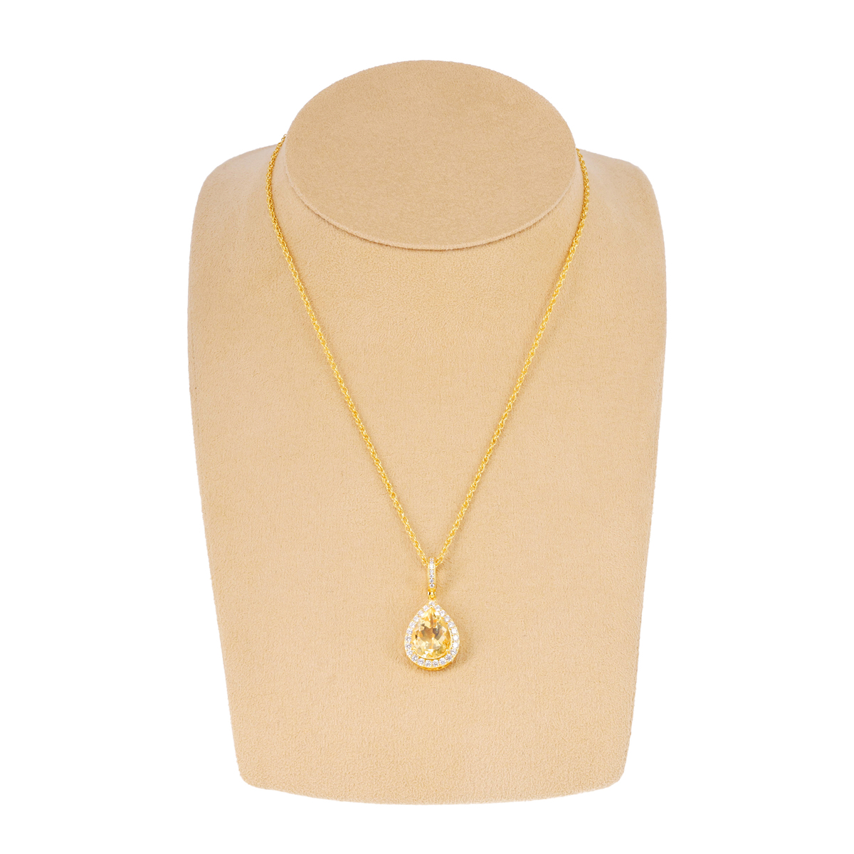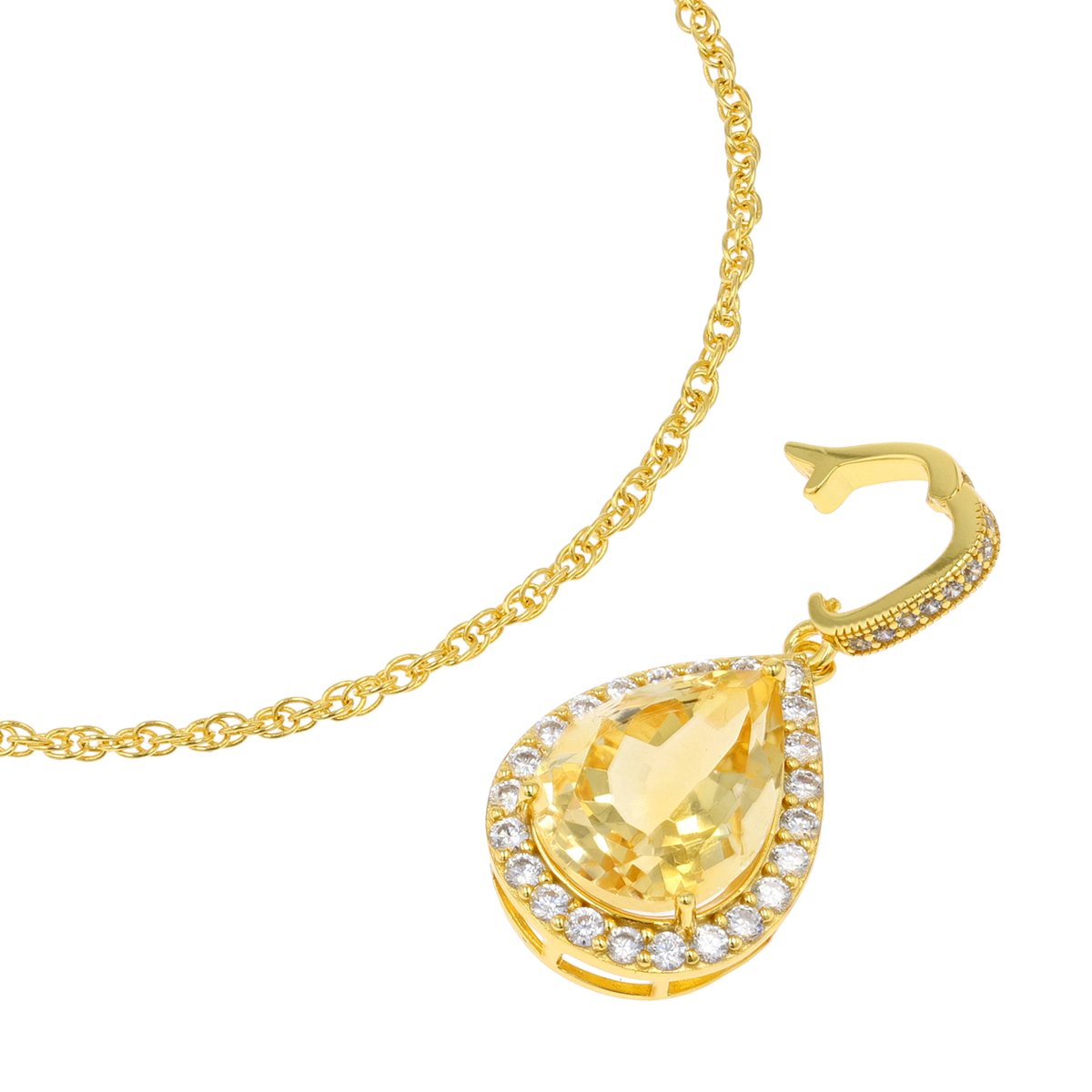 存在感を放つペアシェイプのシトリンをあしらったペンダント。爽やかなイエローが胸元を明るく彩ります