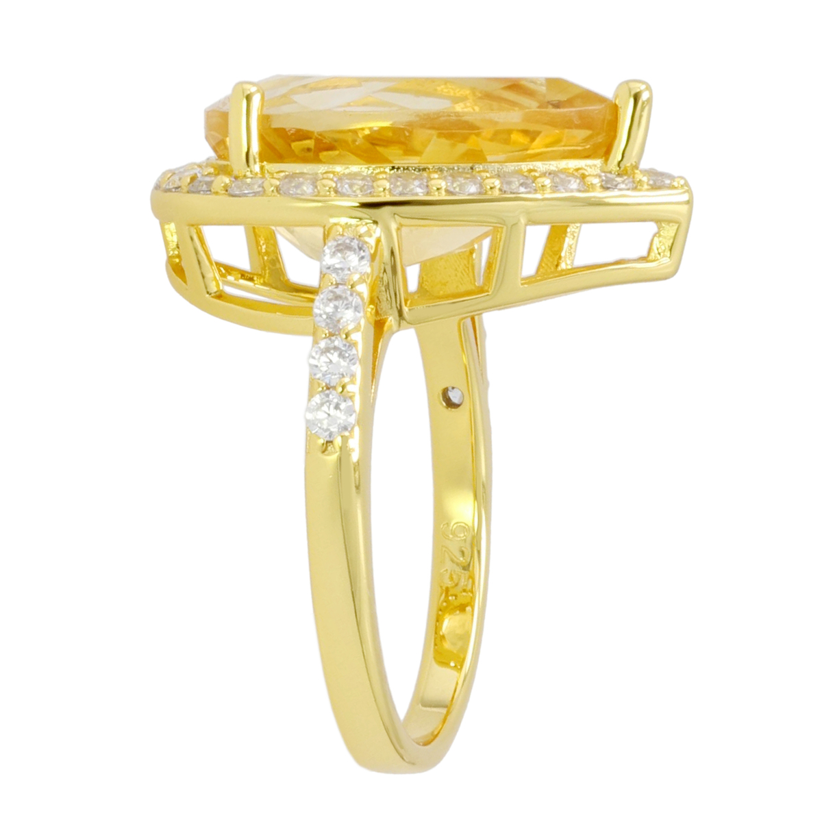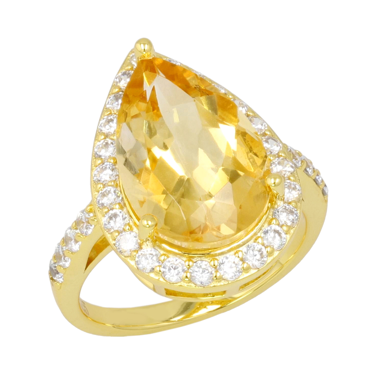 爽やかなイエローが魅力のシトリンを、大粒のペアシェイプにカットした存在感あるリングです。周囲をキュービックジルコニアで取り巻くことで、シトリンの明るさと輝きが一層引き立つデザインに仕上げました。石言葉は「富・繁栄・自信・希望」。素材にはシルバー925を使用しています
