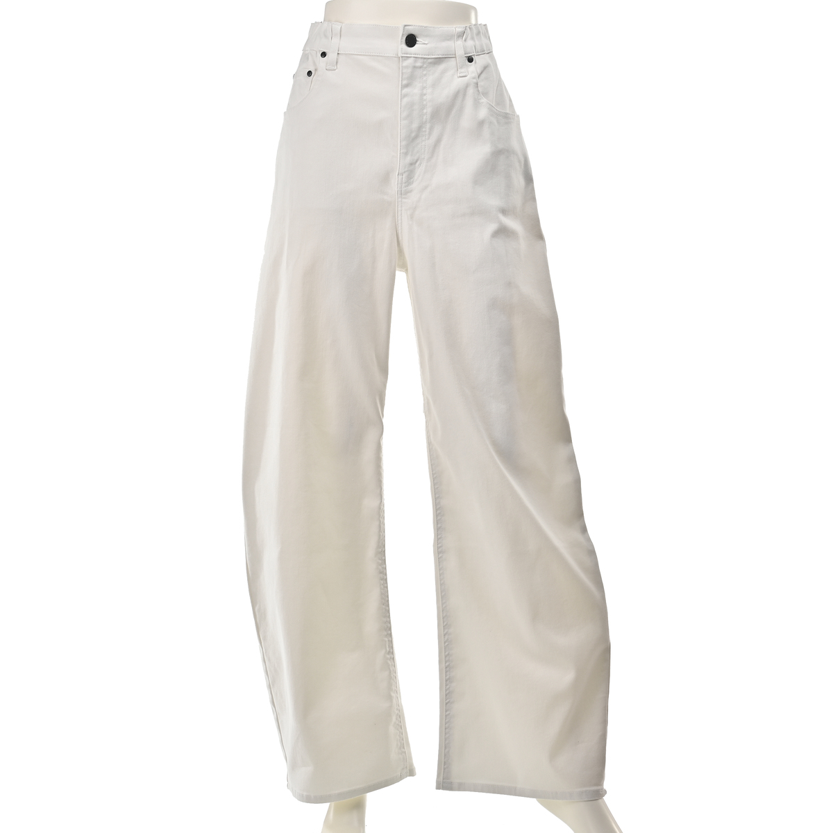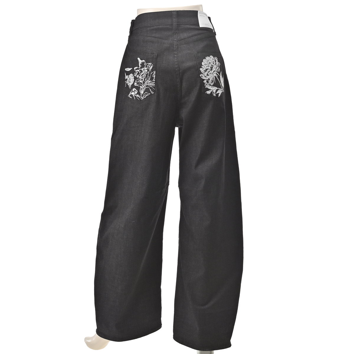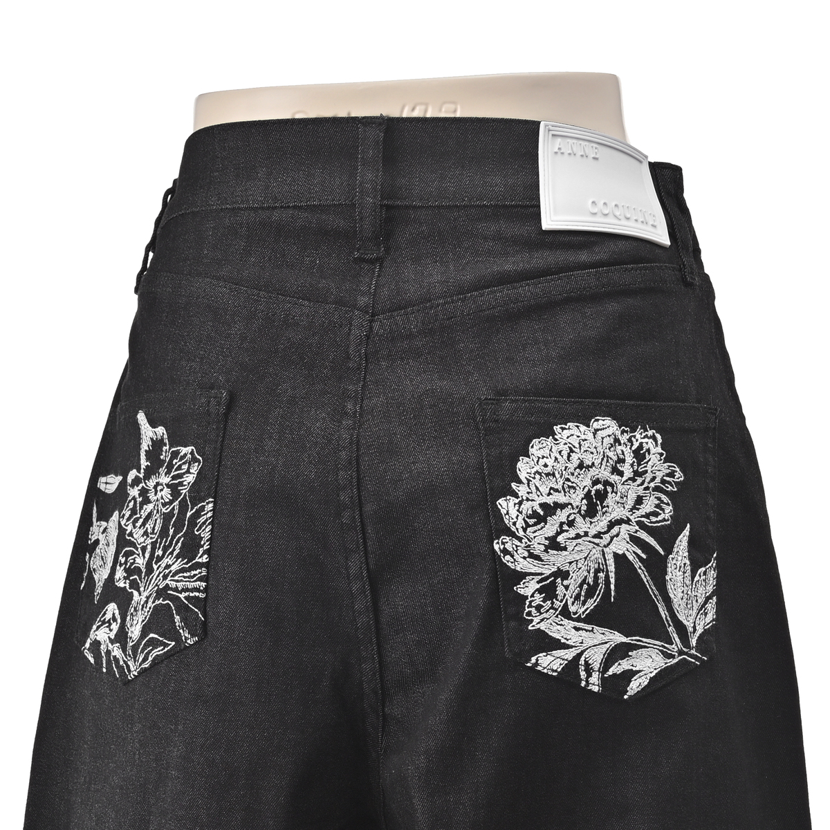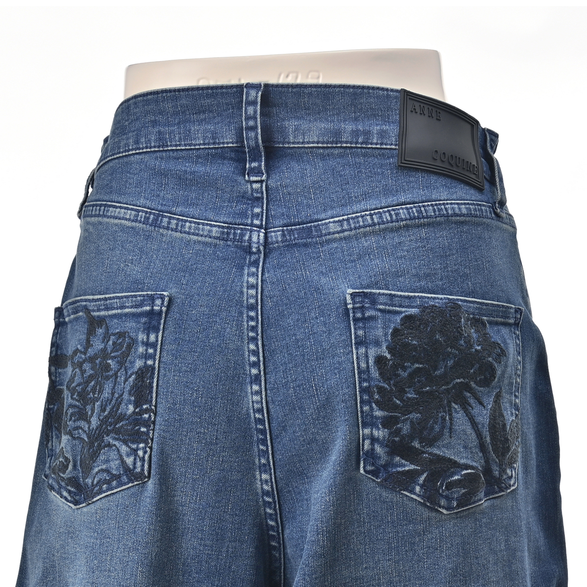 アンコキーヌで大人気のカーヴィーパンツ。裾にダーツ切り替えを入れた立体的なシルエットで、両脇ウエストは平ゴム入りに。後ろ左右パッチポケットにはフラワー柄の刺繍を施し、オリジナルタックボタン・リベットに加え、右腰部分にはオリジナルのシリコンパッチをたたき、こだわりのディテールを細部に散りばめました