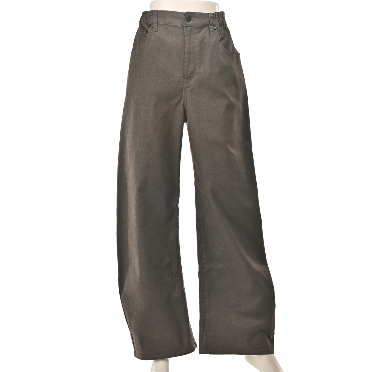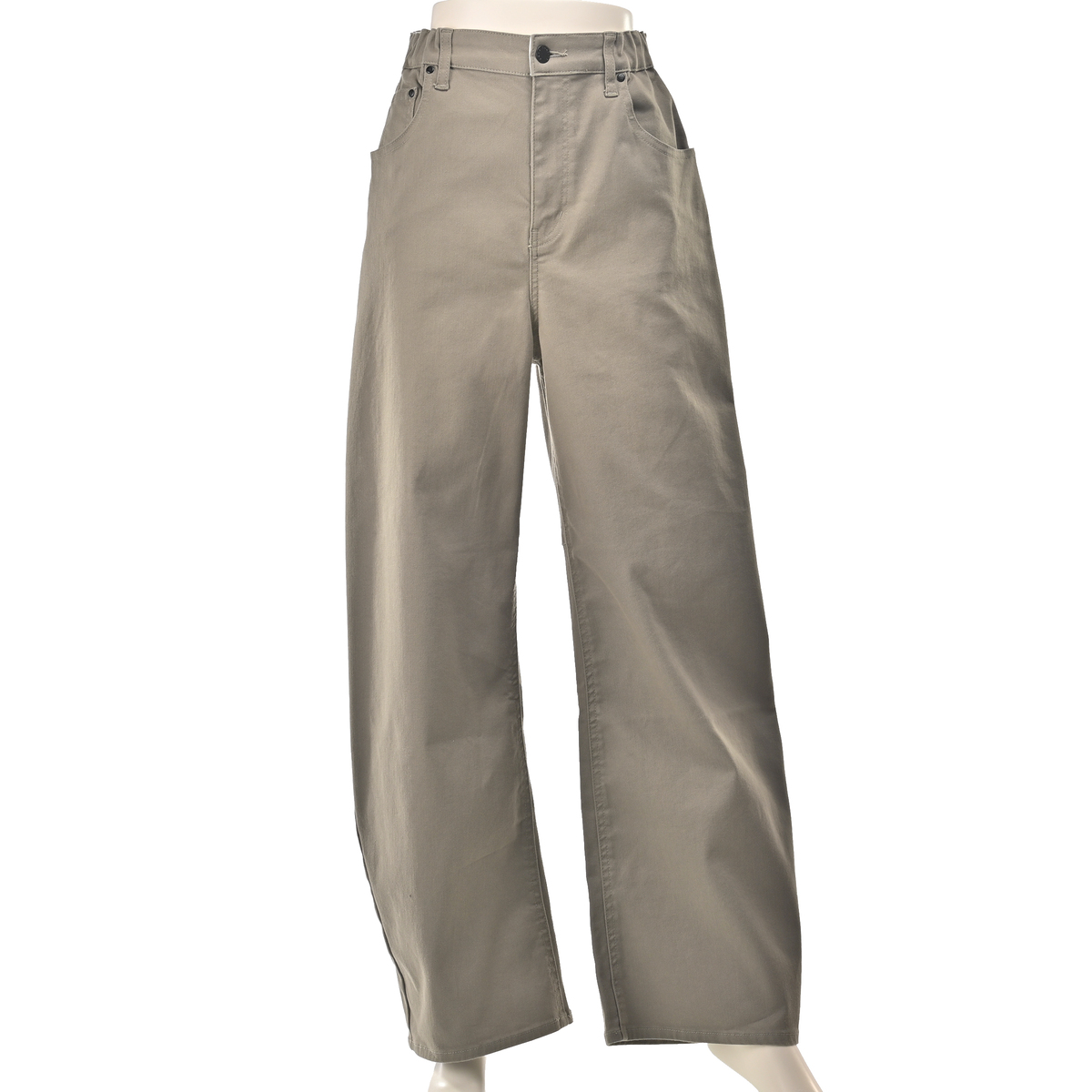 コットンブレンドのストレッチツイルを用い、型崩れしにくい立体感と程よい落ち感を備えています。ホワイト、グレージュ、カーキ、ブラックはストレッチツイル、ブルーとインディゴは加工デニムを採用し、洗い工程で柔軟剤を使って柔らかく仕上げています