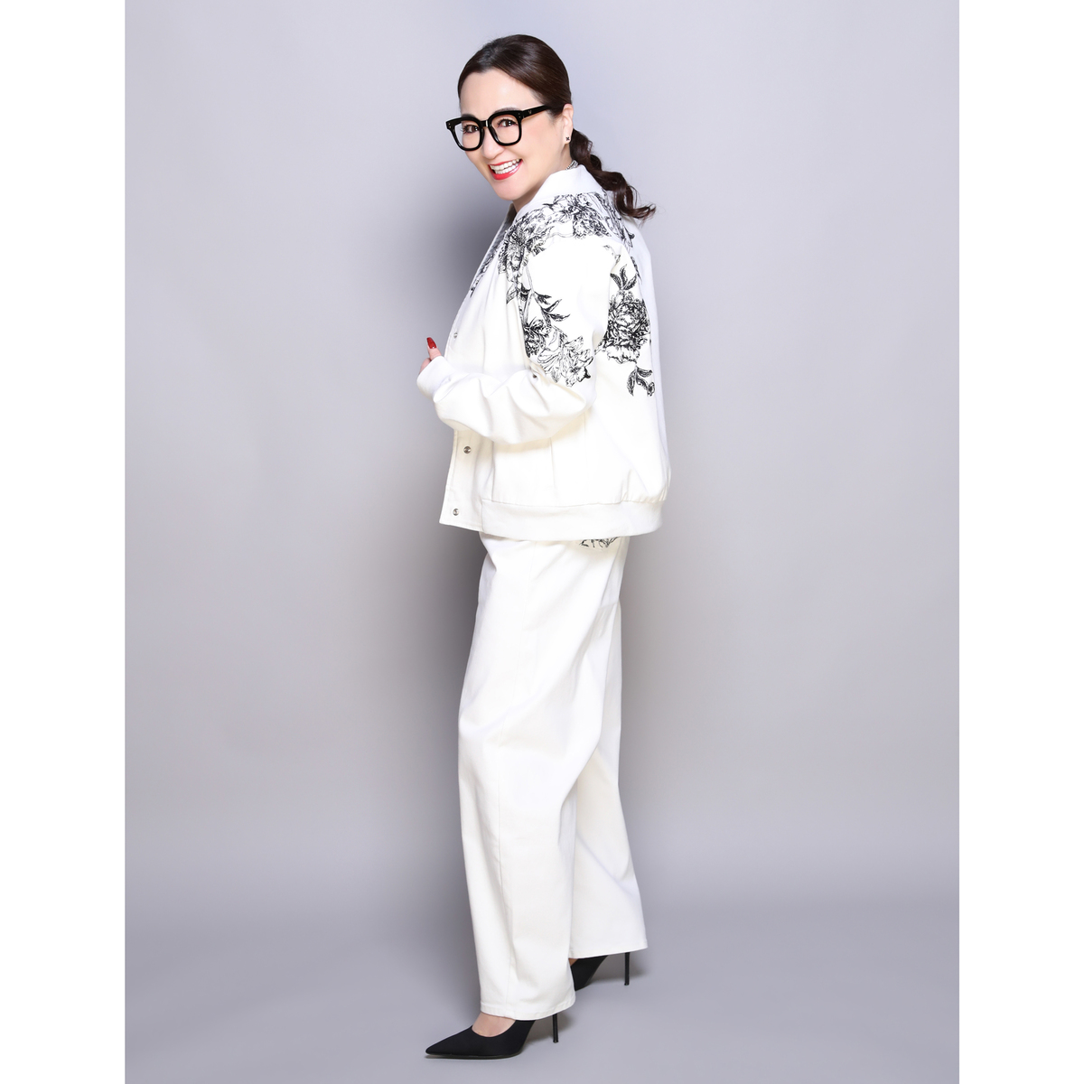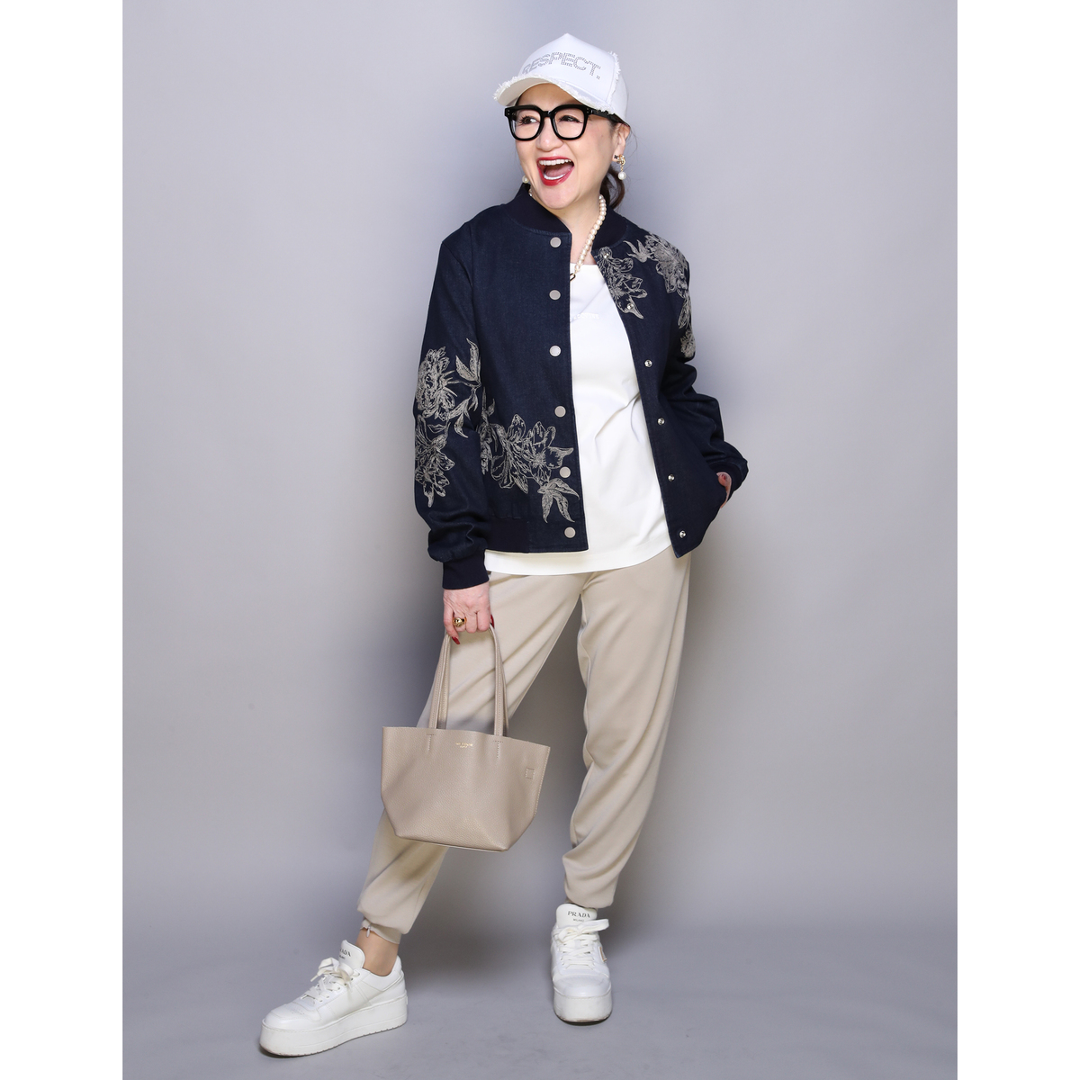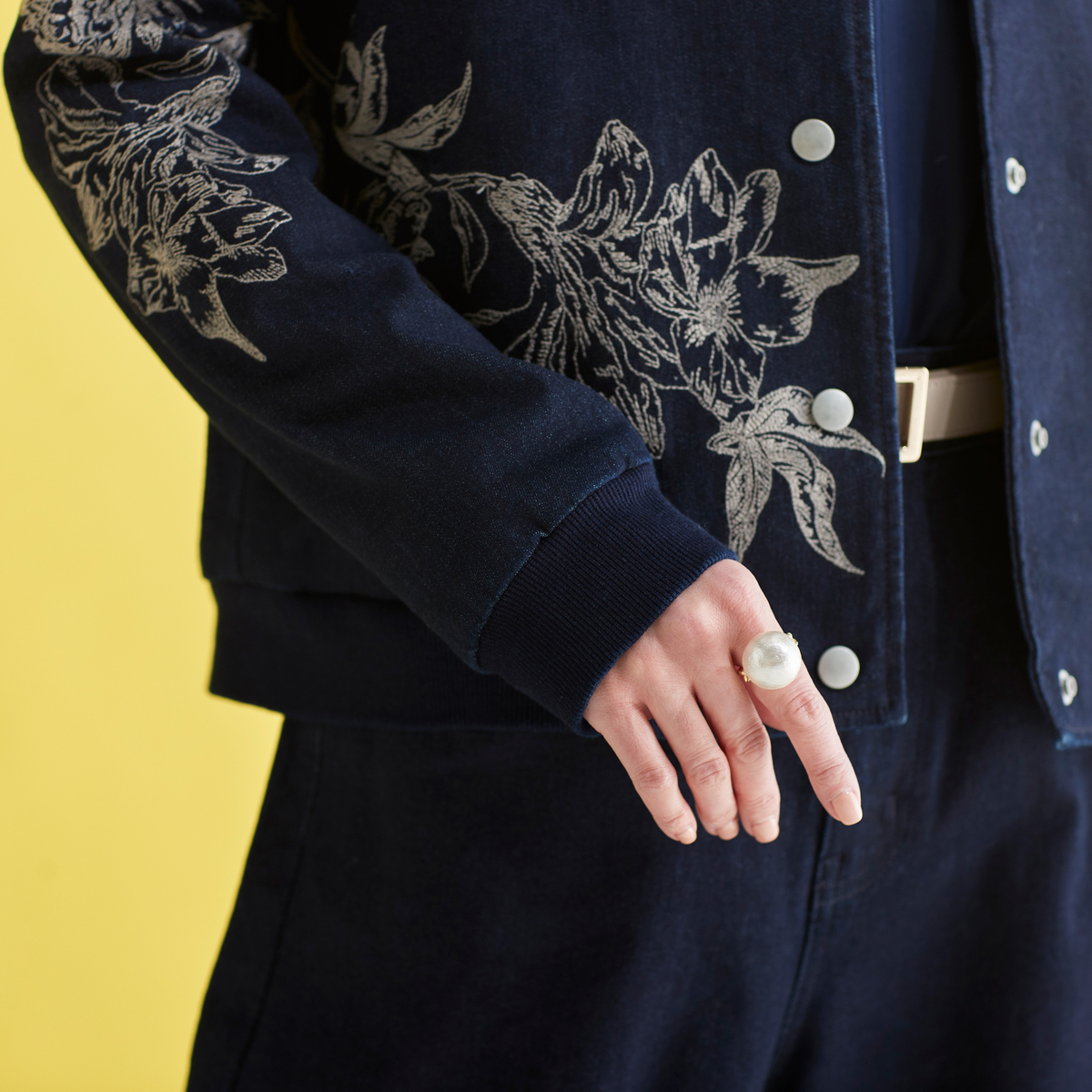 刺繍デザインが大好きですが、このピオニーとリリーの美しい刺繍には久々にお洋服で一目惚れしました。 自分の中では迷いなくホワイトを早々にカートイン。他のカラーが次々と完売した時、あれ…私カラー選びに失敗したかも…と若干の後悔が。笑 でも届いて袖を通してみて、春らしく爽やかなホワイトにして良かったと思いました。私も裏地あり大賛成派です。ここまで立派なデザインでありながら逆に裏地がないブルゾンだったら外出先での着脱が恥ずかしいです…。リブの部分の素材が柔らかすぎて少し心許なく感じるのは共感しますが、柔らかいからこそ首や手首の肌あたりが良く着心地が良いのかなとも思います。きっと藤島さんが色々考えてくださった素材だと感じて、ここは受け入れております。刺繍デザイン推しなので、また新作の刺繍楽しみにしています。