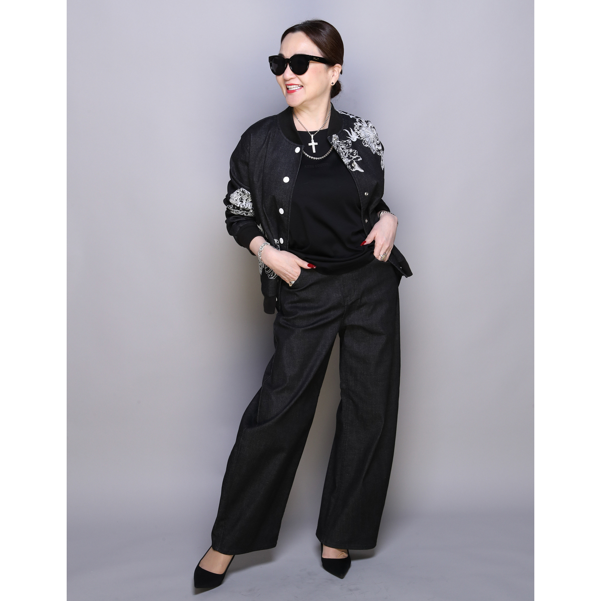 ブラックとグレージュを購入しました。テレビで観たブラックは光沢感があったから厳つい感じになるかなと思いましたが、デニム感が素敵でブラックにして良かったです。ホワイトの刺繍が華やかで素敵、裏地が凄く良い。裏地絶対要ります。温かいです。冬終わりから春まで迄重宝します。