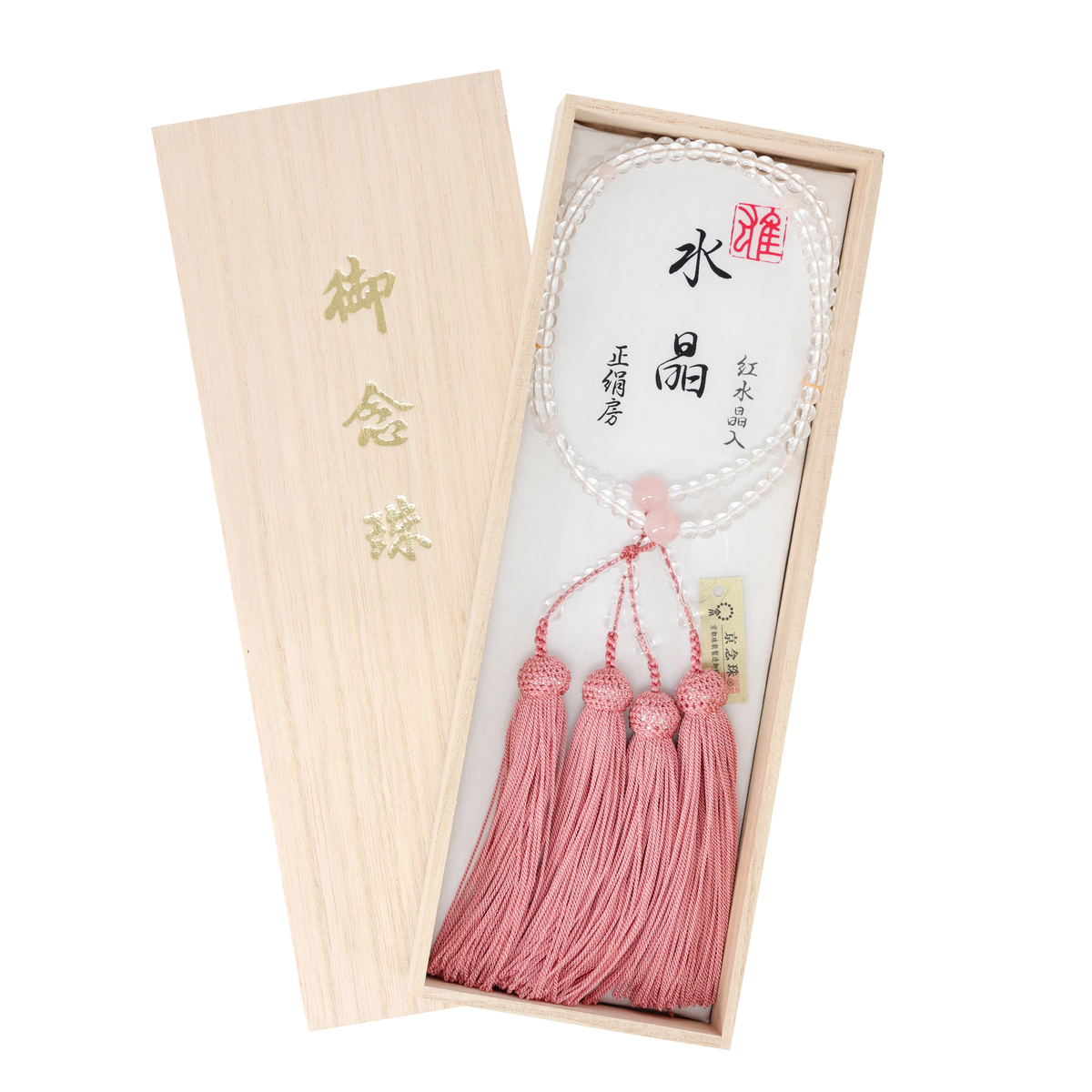 [素材(約)] <水晶> 主珠:5.0mm その他:4.0mm 他 <紅水晶> 合珠:5.0mm 親珠:10.0mm 房:正絹房 [内周]約57cm [付属品] 桐箱 ■主に水晶を使用しておりますが、一部合成水晶が混在する可能性がございます ■素材の大きさ・形・色合い、製品のサイズは1点1点多少異なります ■専用ケース付 【日本製】
