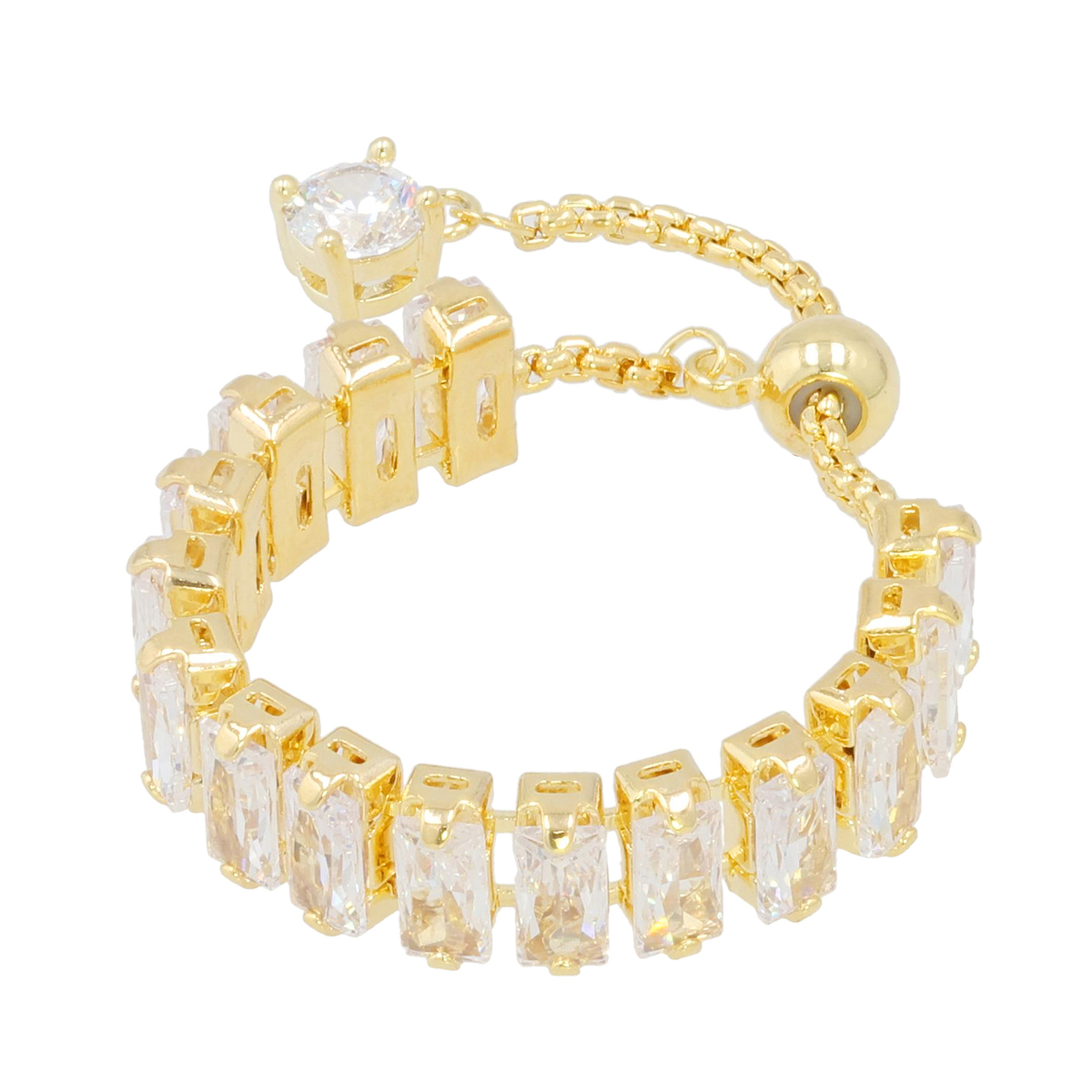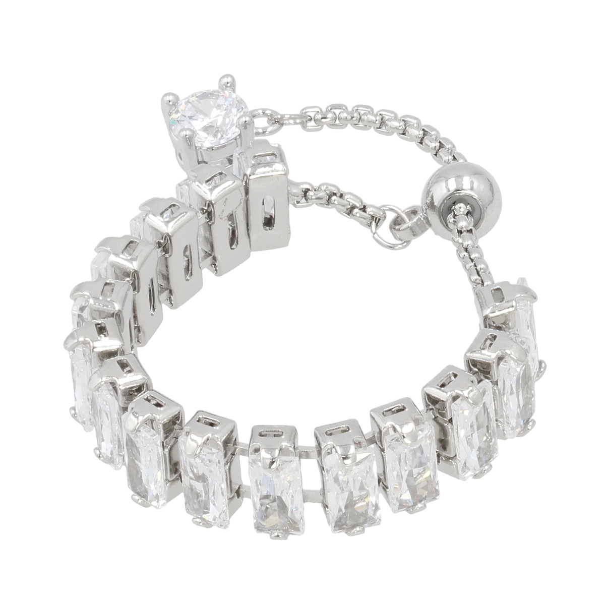素材: [キュービックジルコニア] バゲットシェイプ、ラウンドシェイプ 爪留め 最大幅(約) 5.5mm 最小幅(約) 1.0mm 総重量(約) 2.5g [地金] 合金 [メッキ] シルバーカラー:シルバーカラーメッキ ゴールドカラー:金メッキ ■フリーサイズ:12〜27号対応 ■素材の大きさ・形・色合い、製品のサイズは1点1点多少異なります ■チェーンのスライド調節式リングですので、使用感サイズは個人差があります 【中国製】