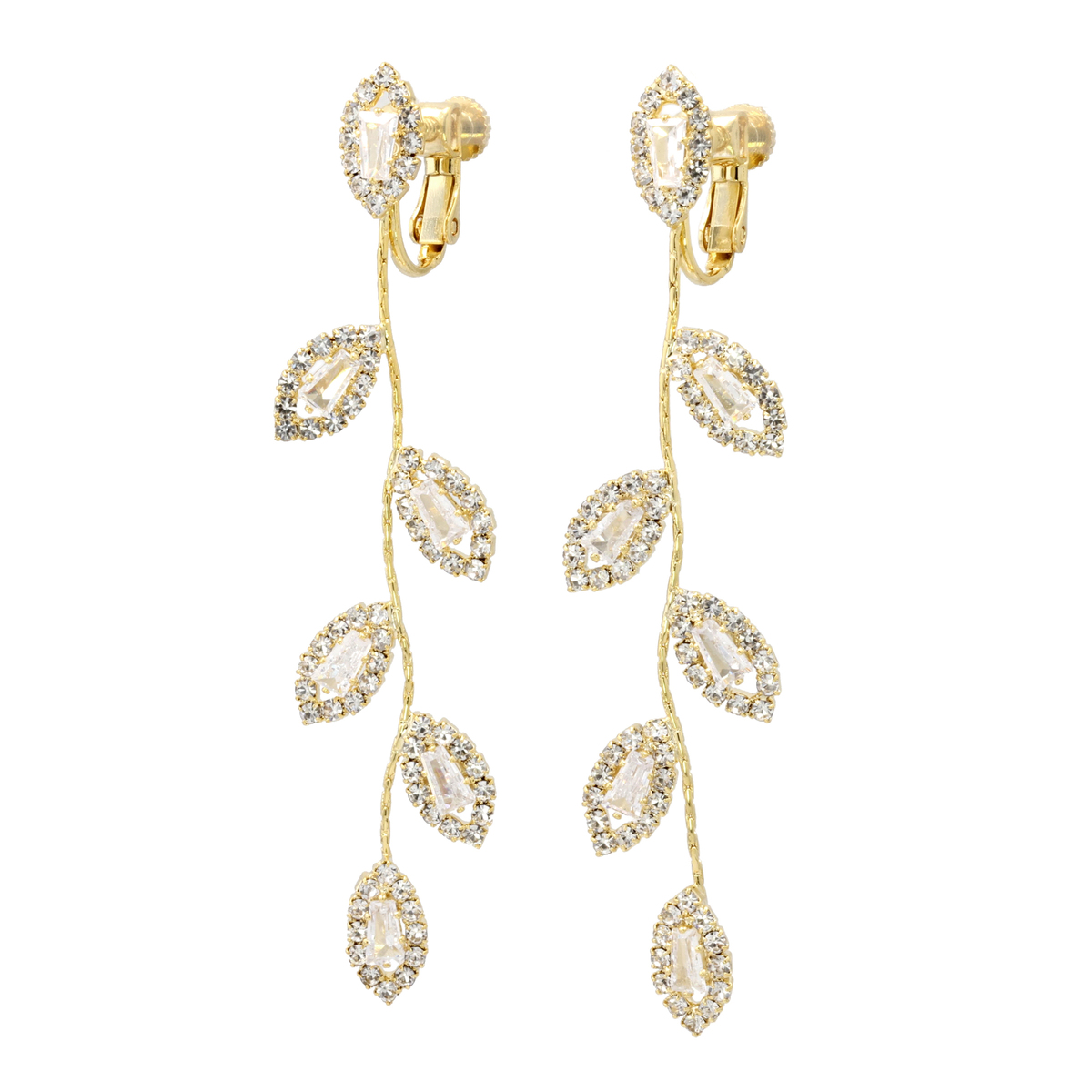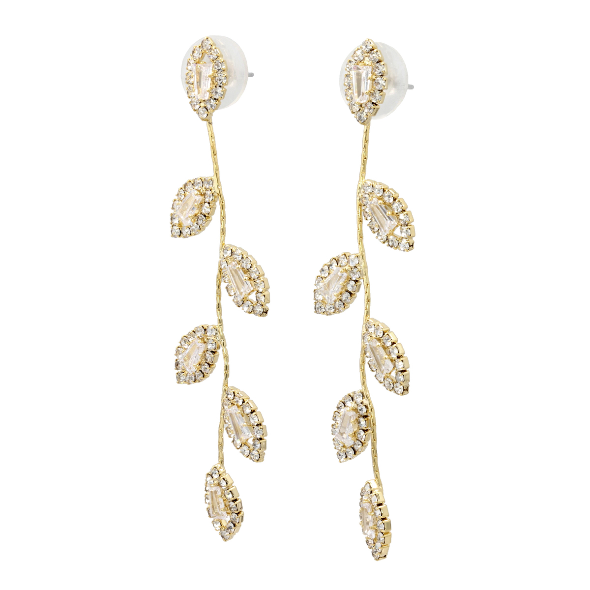 揺れるたびに光をまとうリーフモチーフのイヤリングまたはピアス。縦に連なるパーツが動きとともに表情を見せ、キュービックジルコニアのきらめきが顔まわりを明るく演出。フォーマルにもカジュアルにも取り入れやすい万能なデザインです