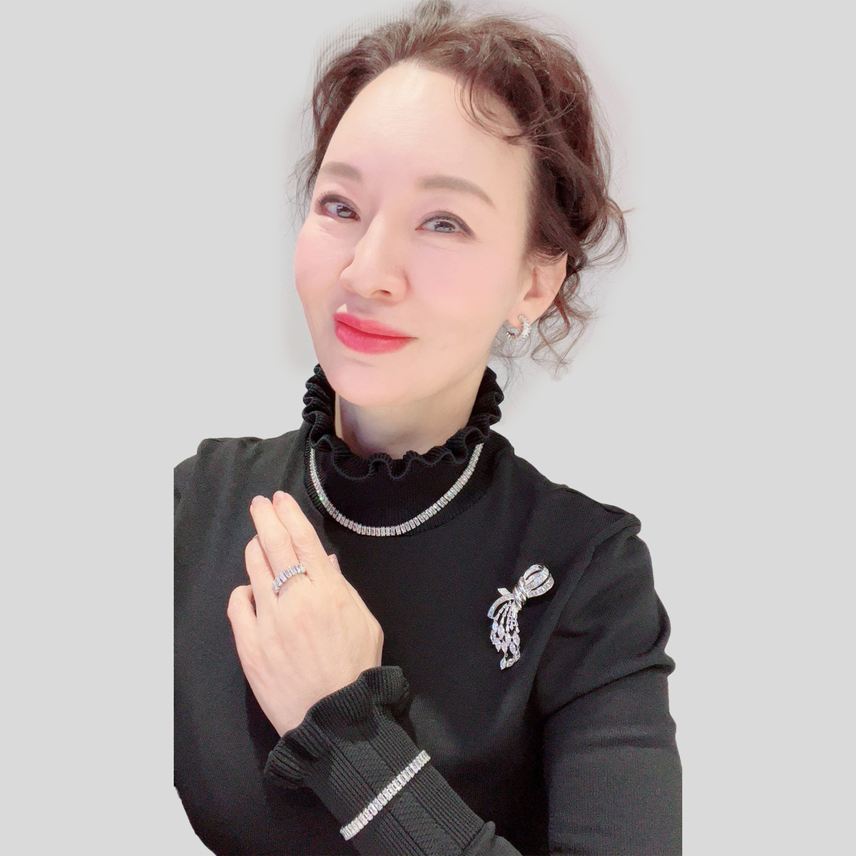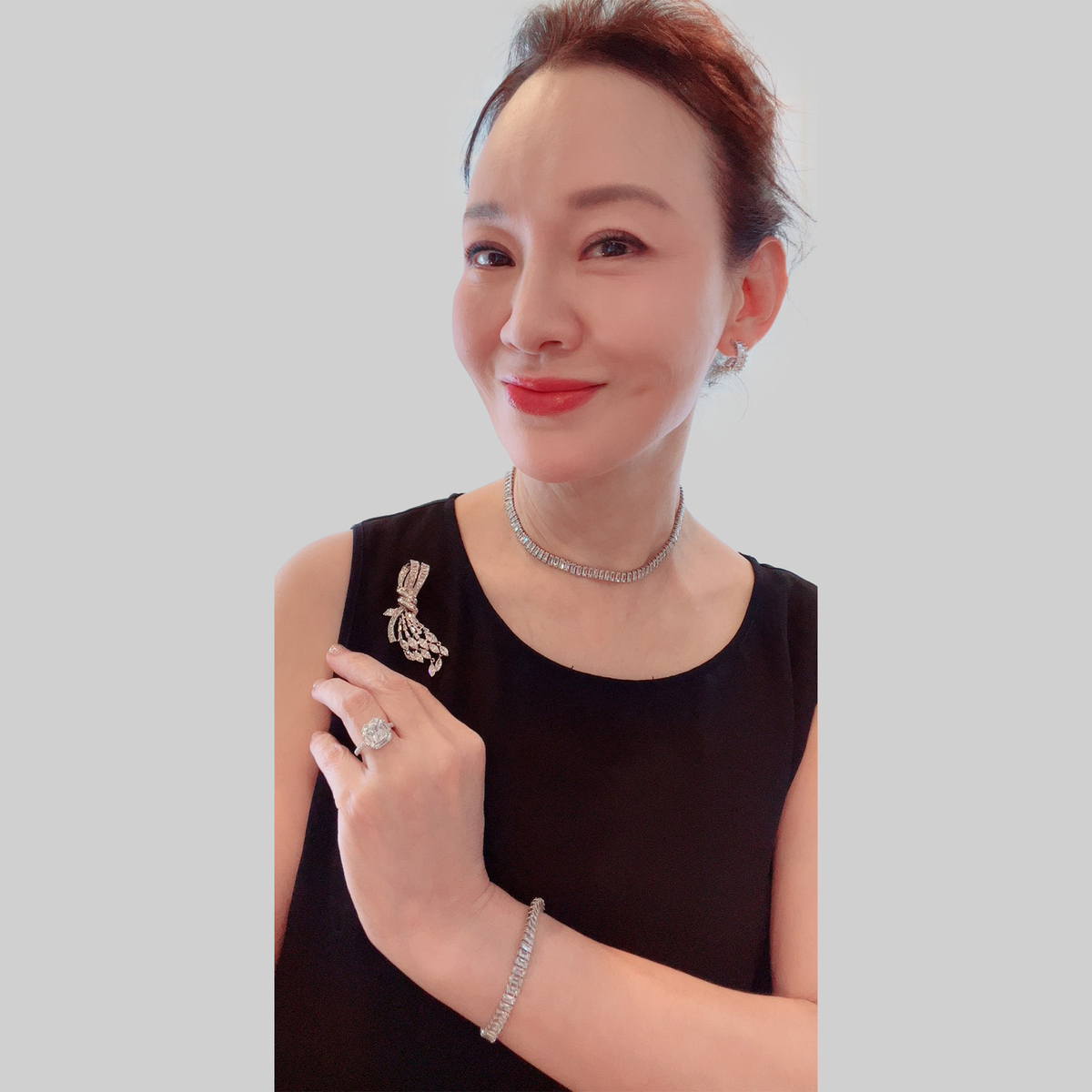 90石以上のキュービックジルコニアを贅沢に使用。コード部分には直線的な輝きを生み出すテーパーカット、繊細に揺れ動くタッセル状の部分にはマーキスカットのキュービックジルコニアを使用しました