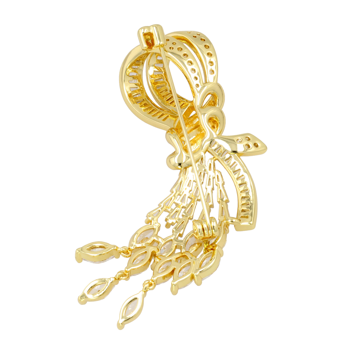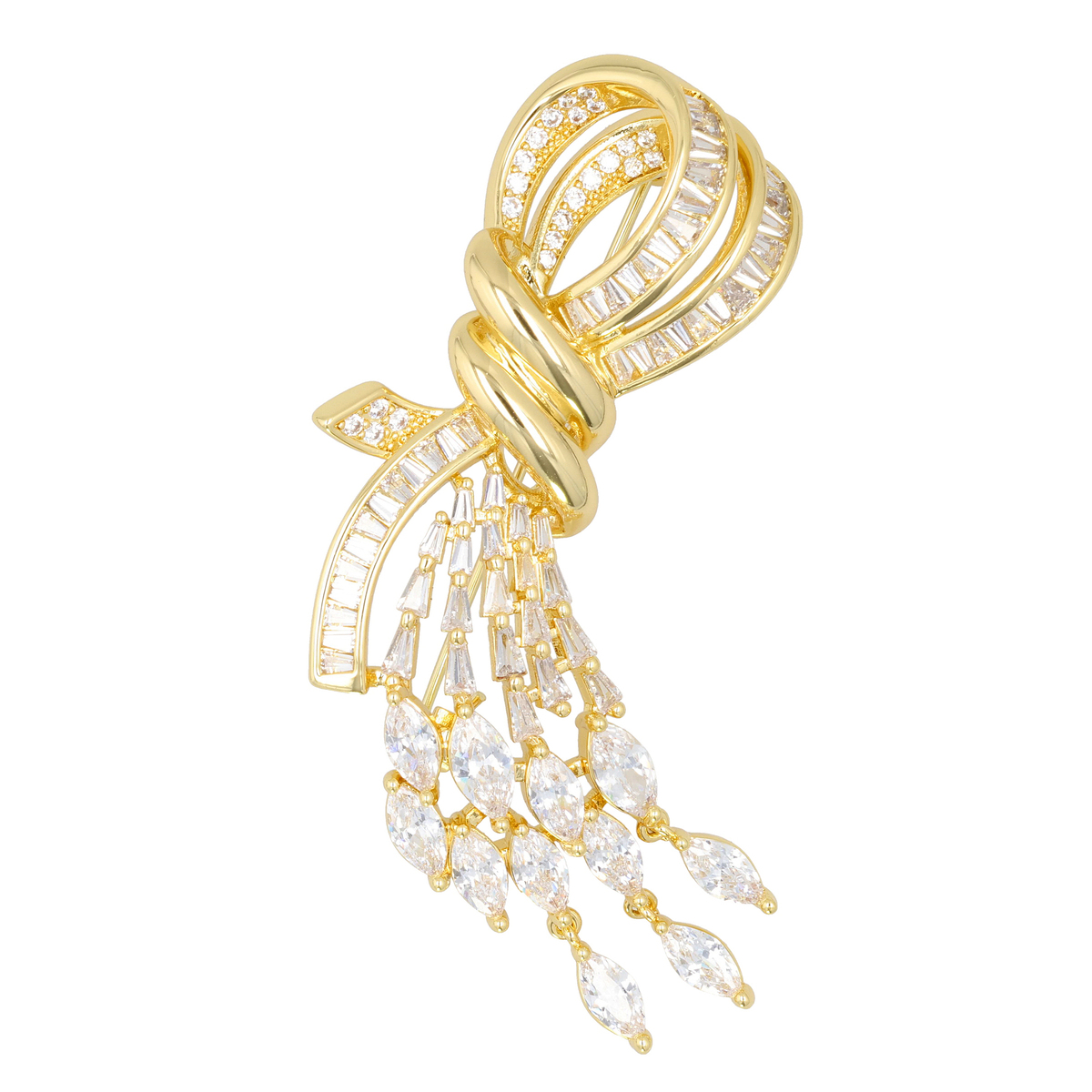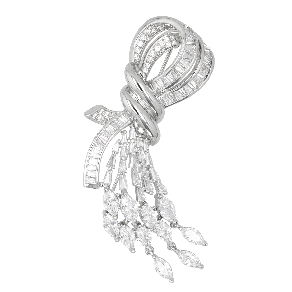 結び目をモチーフにエレガントに仕上げたブローチ。美しい結び目から流れるように連なるキュービックジルコニアが、動きと輝きを生み出します