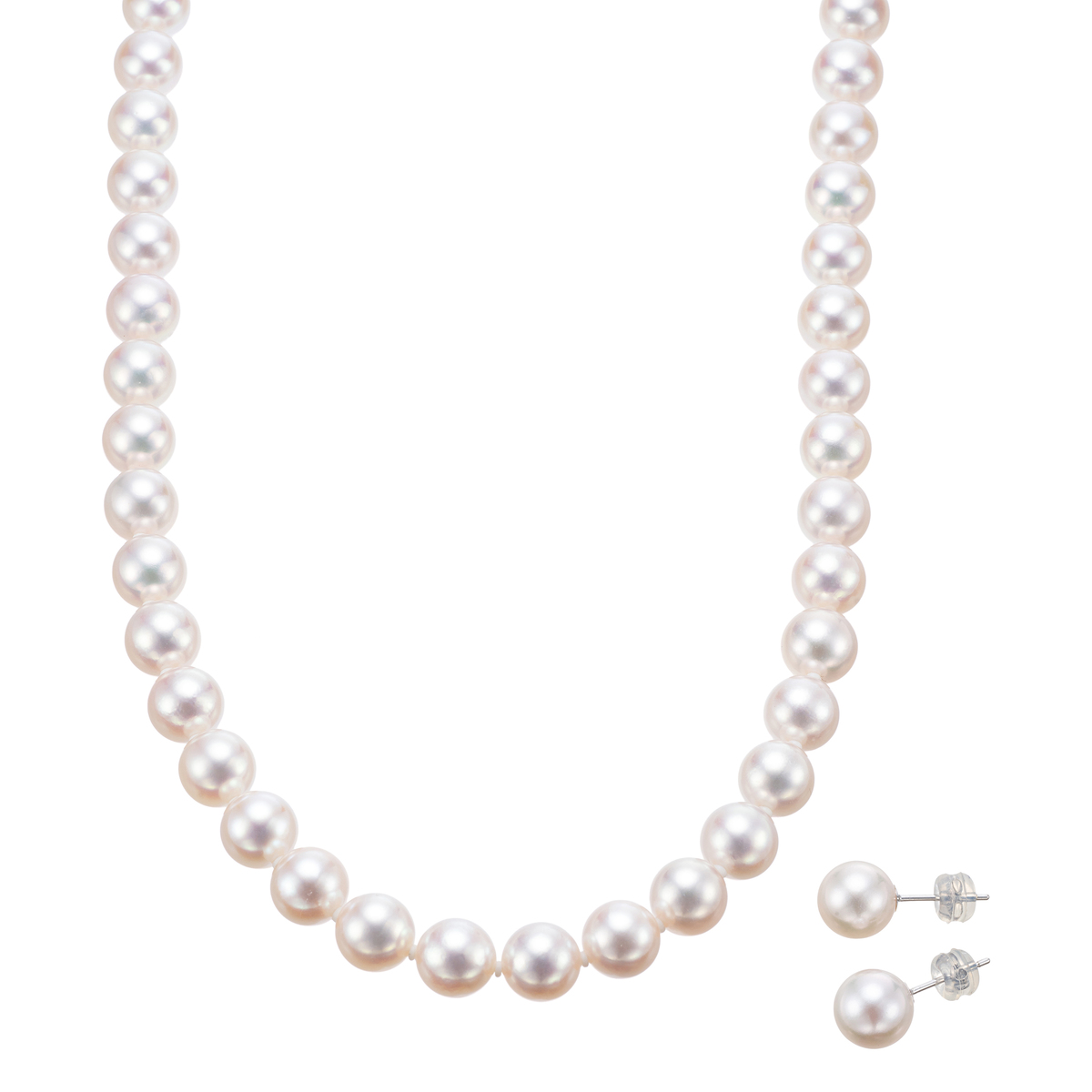 花珠真珠8.5mm珠ネックレス&イヤリング/ピアスセット