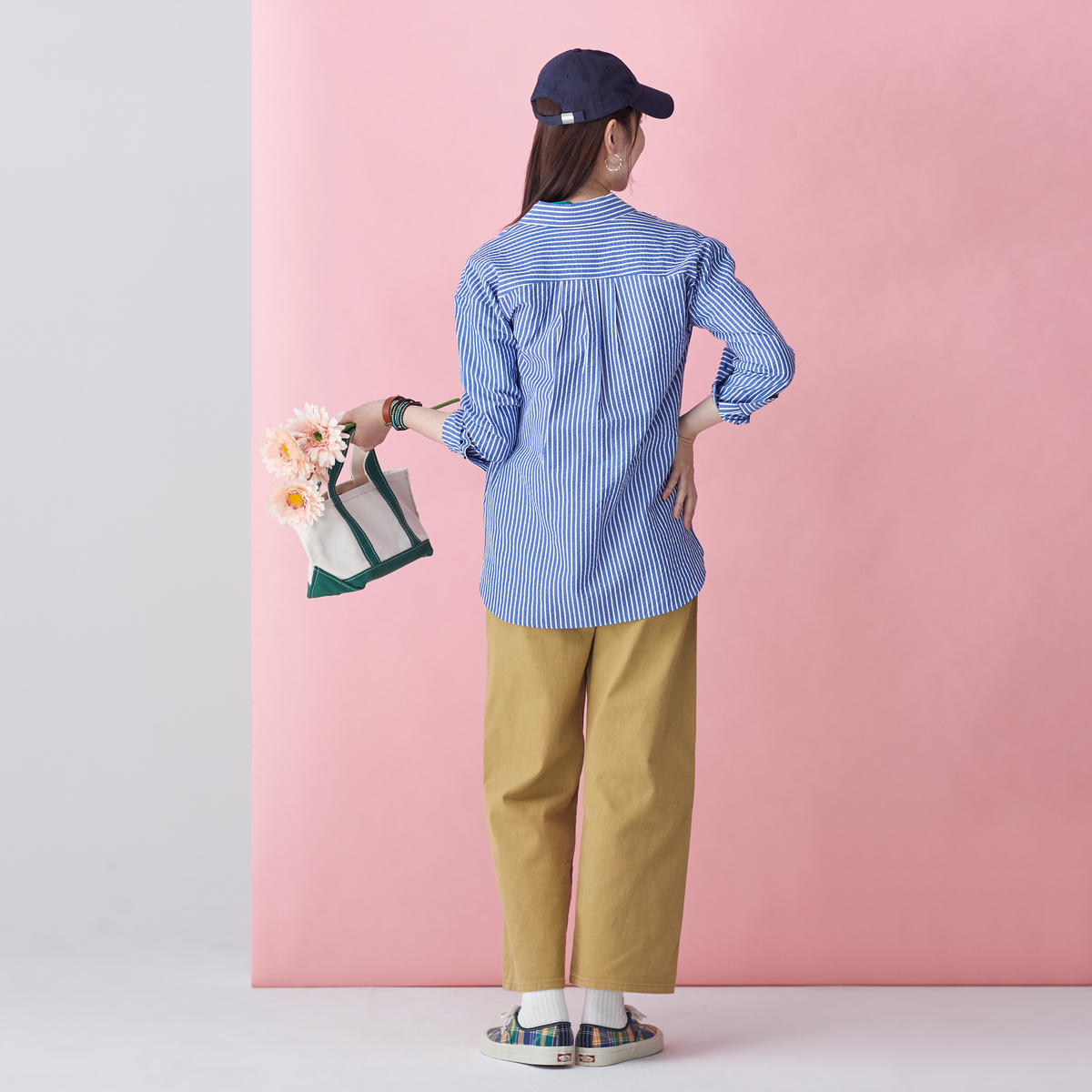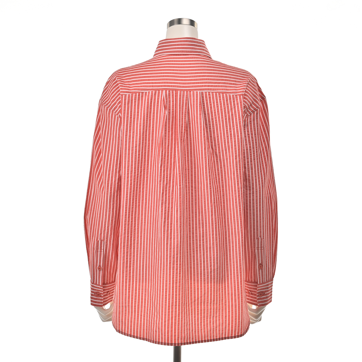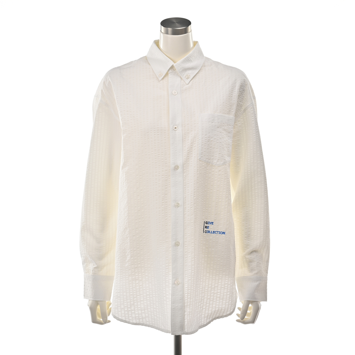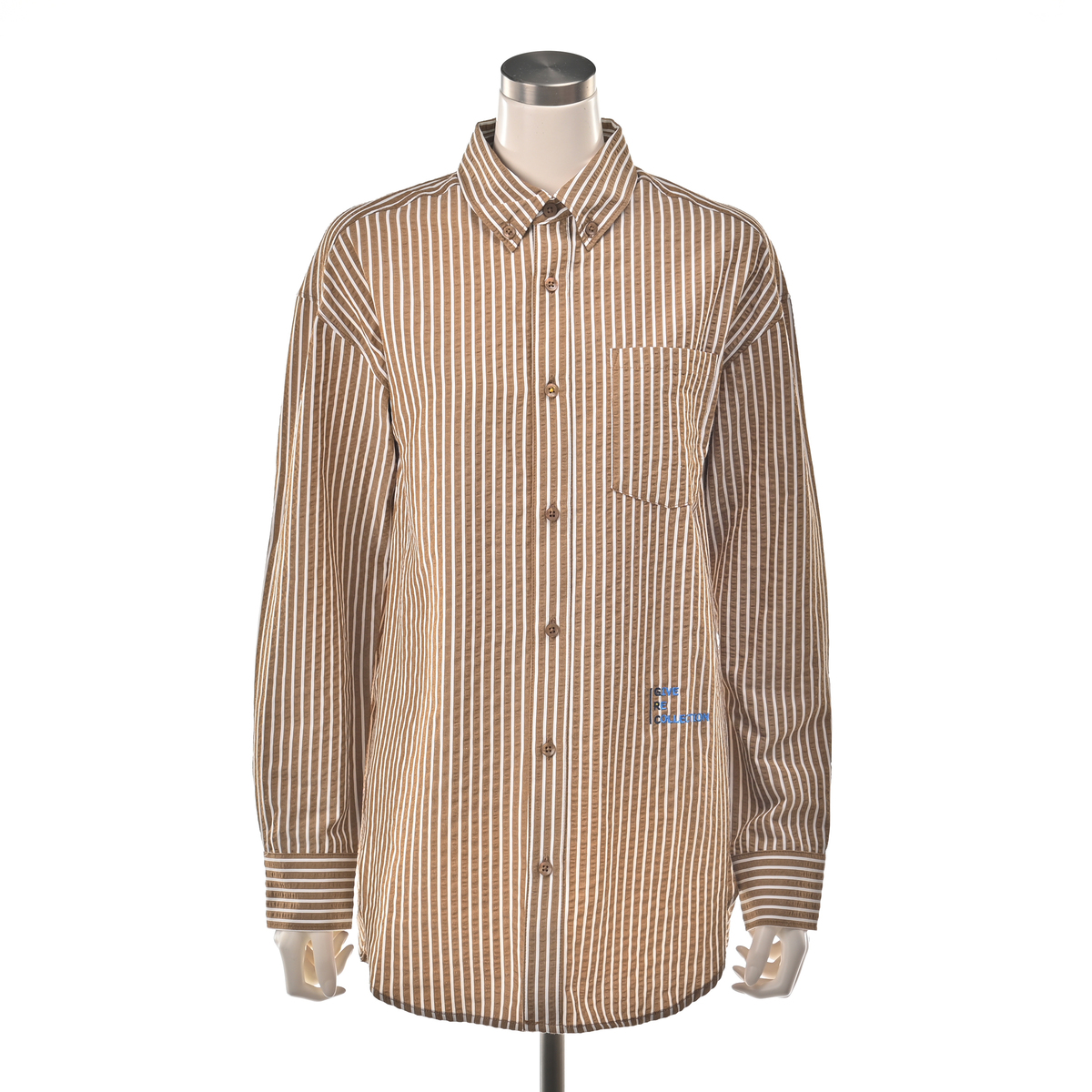 メンズライクに着こなせる左前でお仕立てしたサッカーストライプシャツ。大き目な胸ポケットとボタンダウンのえりがポイント。インナーにして襟だけチラ見せしたり、フロントを開けて軽い羽織としても。ベーシックなアイテムなので、幅広く活躍します