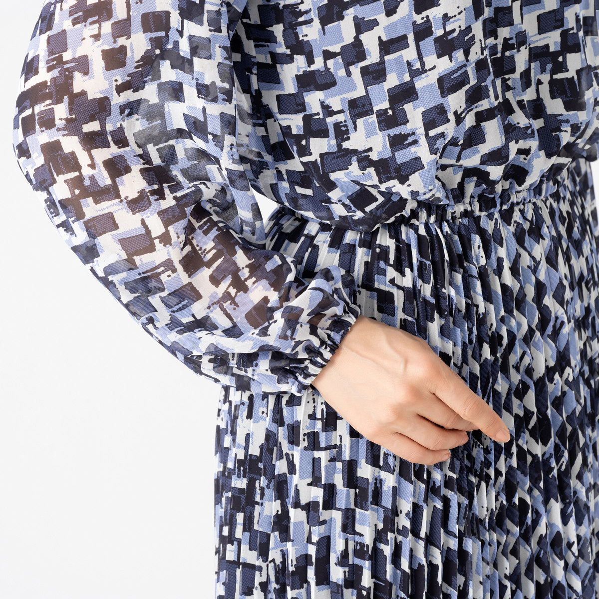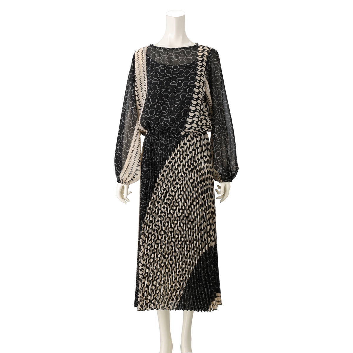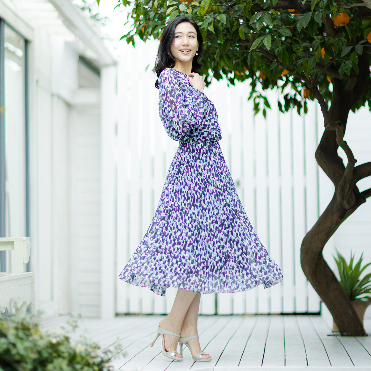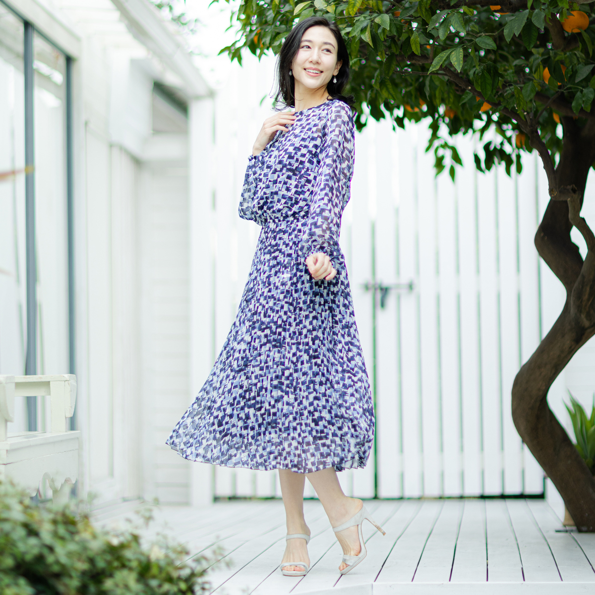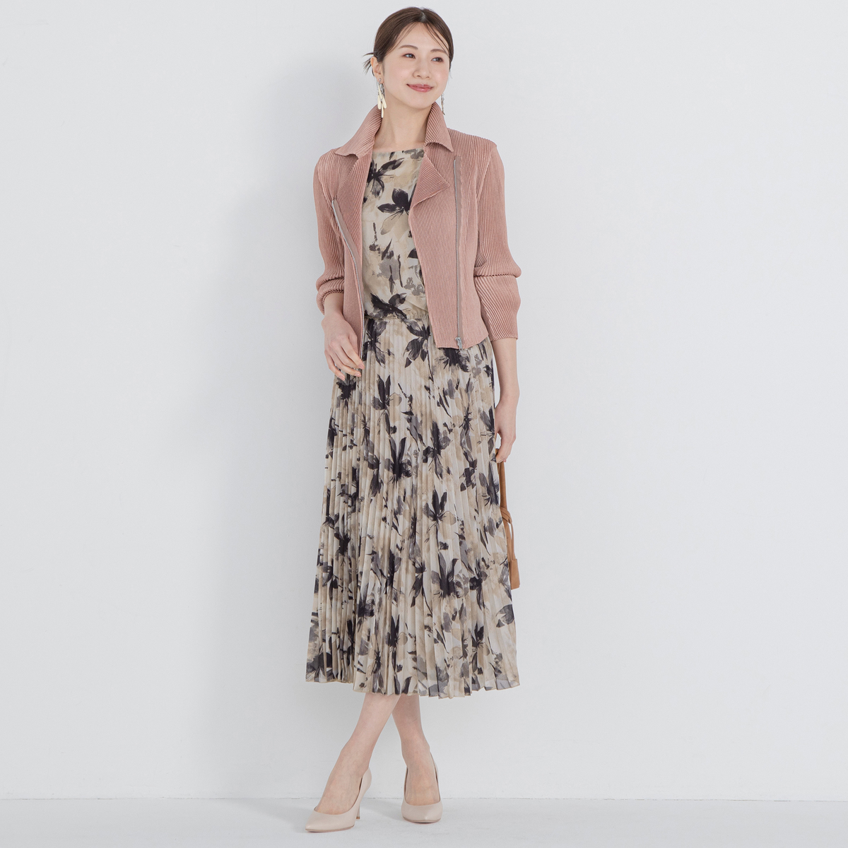 すとんと着るだけで、絵になるワンピース。アコーディオンプリーツ加工を施した柔らかさのあるシフォンプリーツのスカート部分が、軽やかさと立体感を演出します