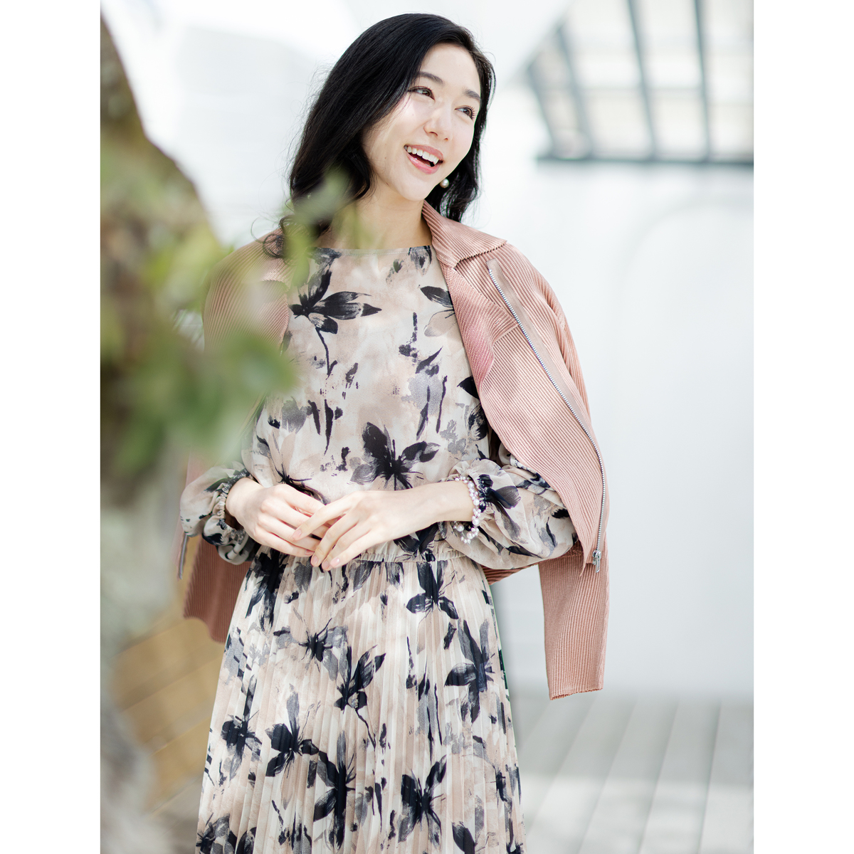 アクセサリーや靴などの小物次第で、大人可愛いカジュアルからエレガントなフォーマルスタイルまで着回せます。ジャケットと合わせればオフィスシーンにも対応し、幅広く活躍します