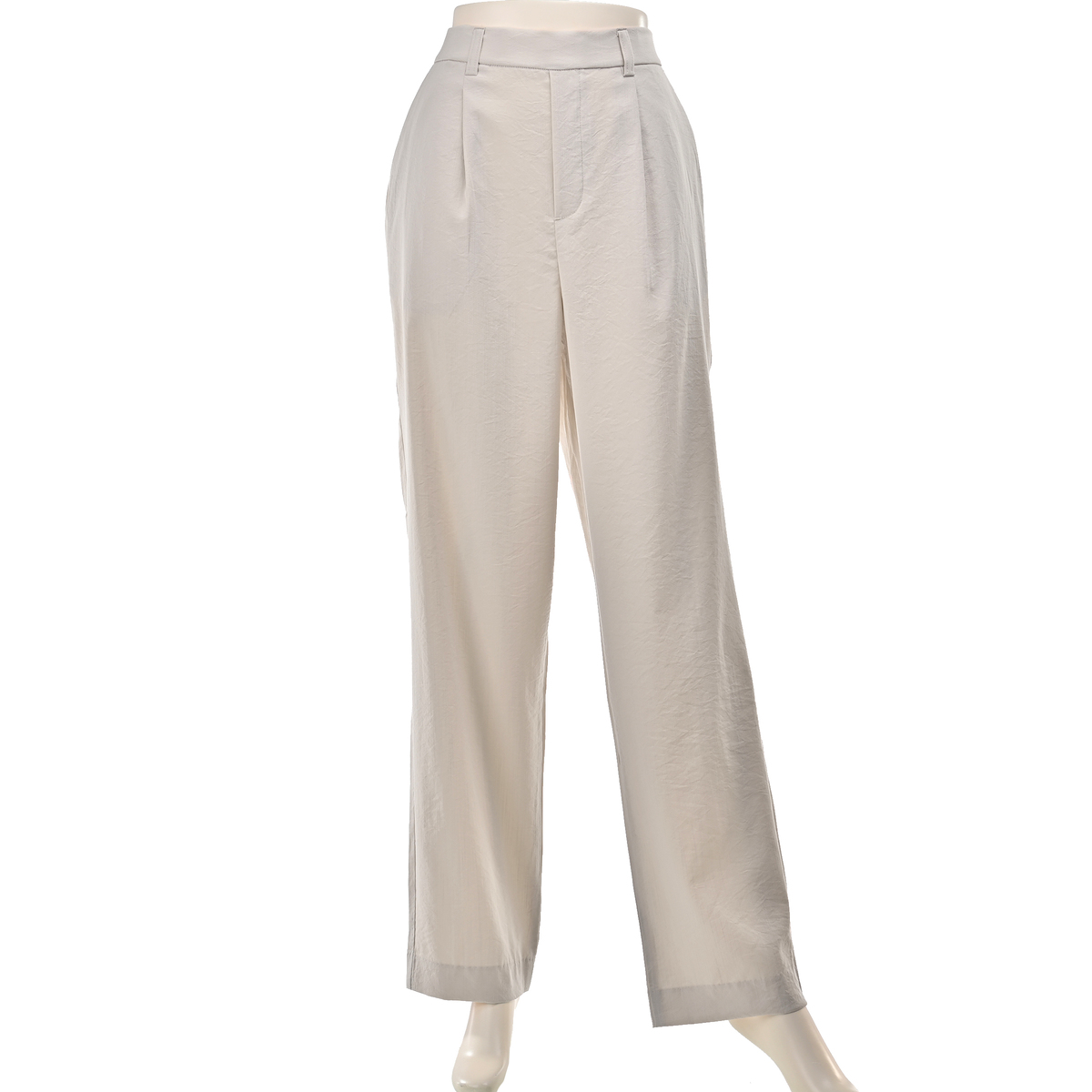 軽くさらりとした肌触りのスラブ感と洗いざらしたような素材感が特徴のストレッチ素材を使用したストレートパンツ。両脇には便利なポケット付きで、後ろの飾りポケットはヒップアップ見せ効果が期待できます