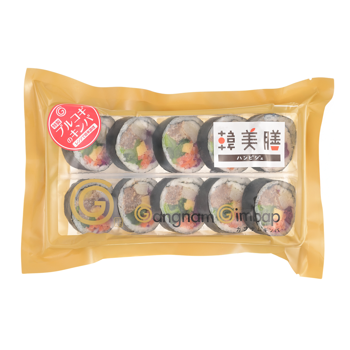 [アレルギー物質特定原材料8品目] 卵、小麦 [商品内容] ・彩り野菜のキンパ 10ピース 220g×2パック ・特製プルコギのキンパ 10ピース 250g×2パック/計4パック [賞味期間] 製造日より60日 [保存方法] 開封前:ー18℃以下で保存してください 開封後:お早めにお召し上がりください [お召し上がり方] 500W 約3分30秒 600W 約3分 1.袋を1〜2cm開封し、凍ったままの状態で袋のままレンジで解凍してください 2.そのまま約10〜15分間、蒸らした状態で時間をおいてからお召し上がりください *解凍後、部分的に熱くなっている可能性があるため、やけど等にご注意ください・ *冷たく感じた場合は10秒毎に加熱を追加してください *加熱し過ぎの原因になるため、オート(自動)機能は使用しないでください *調理時間は目安です。お使いの電子レンジの機種により異なります [注意事項] ※冷凍庫(-18℃以下)で保存してください ※一度溶けたものを再凍結すると、味・品質が変わることがあります ※加熱のし過ぎは、崩れや硬くなる原因となりますので、ご注意ください ※解凍・調理後は賞味期限に関わらずお早めにお召し上がりください [原料原産地] 彩り野菜のキンパ:米(国産)、野菜(小松菜(国産)、人参(中国産)) 特製プルコギのキンパ:米(国産)、野菜(小松菜(国産)、人参(中国産))、牛肉(アメリカ産) [原産国] 日本 [原材料] ■彩り野菜のキンパ: 味付ご飯(米(国産)、ごま油、食塩、加工酢)、野菜(小松菜(国産)、人参(中国産))、厚焼玉子、ポークソーセージ、きんぴらごぼう、風味かまぼこ、たくあん漬け、野菜調味液、焼海苔、ごま油/加工でん粉、調味料(アミノ酸等)、酸味料、ソルビトール、増粘剤(加工でん粉、増粘多糖類)、グリシン、リン酸塩(Na)、トレハロース、 保存料(ソルビン酸)、酸化防止剤(V.C)、pH調整剤、甘味料(ステビア)、酢酸Na、乳化剤、チアミン、着色料(紅麹、カラメル)、発色剤(亜硝酸Na)、香辛料抽出物、乳酸Na、香料、安定剤(加工でん粉)、くん液、(一部に小麦・卵・大豆・豚肉・ゼラチン・ごまを含む) ■特製プルコギのキンパ: 味付ご飯(米(国産)、ごま油、食塩、加工酢)、野菜(小松菜(国産)、人参(中国産))、牛味付焼肉(牛肉(アメリカ産)、醤油、砂糖、にんにく、その他)、紫キャベツ酢漬け、厚焼玉子、たくあん漬け、野菜調味液、焼海苔、ごま油/調味料(アミノ酸等)、カラメル色素、加工でん粉、酸味料、ソルビトール、増粘剤(加工でん粉、 増粘多糖類)、香料、トレハロース、甘味料(ステビア)、乳化剤、チアミン、(一部に小麦・卵・大豆・牛肉・りんご・ごまを含む)
