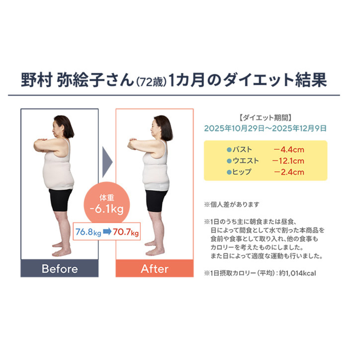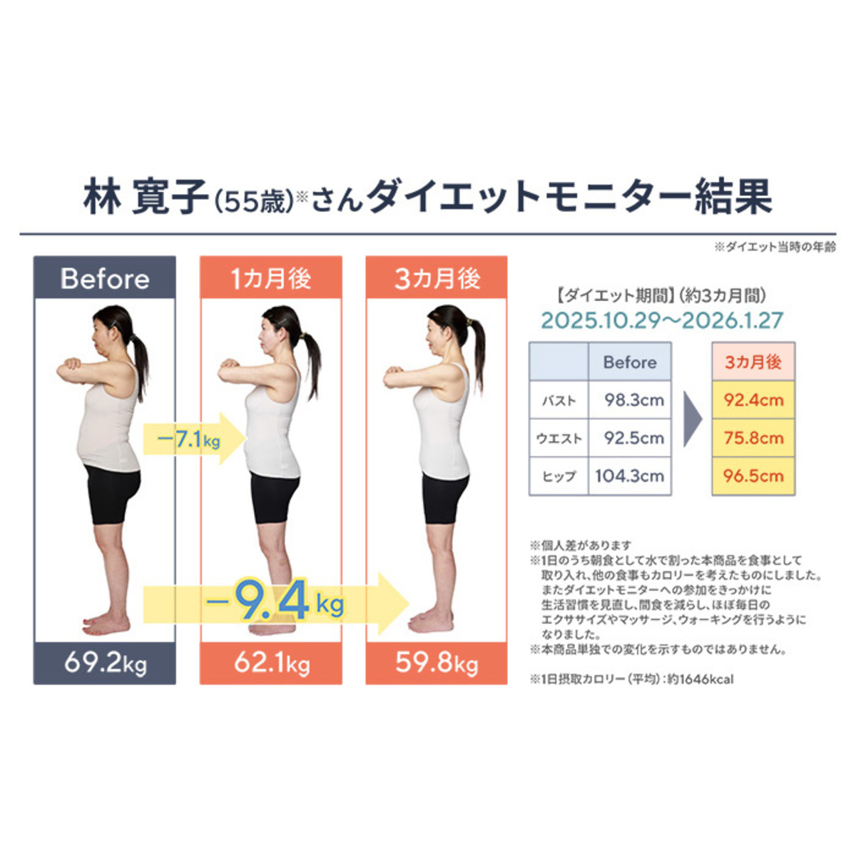 腹持ちが良いので、置き換えを試した所、三日くらいで体重が動き出しました。毎日ほんのわずかずつですが、体重減少しています。継続して行こうと思います
