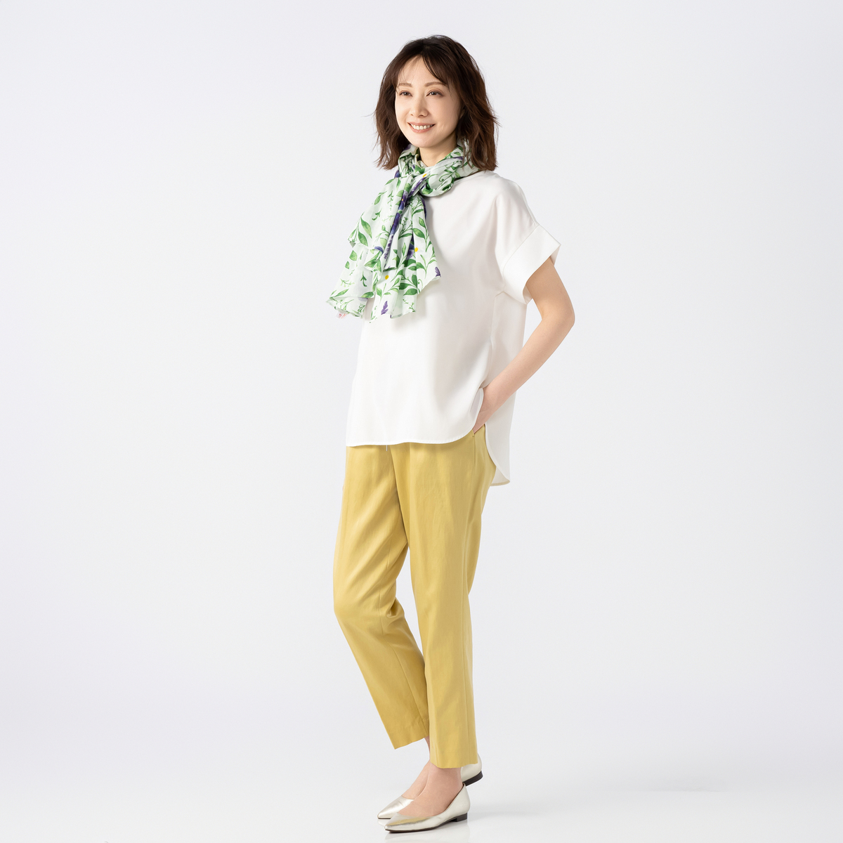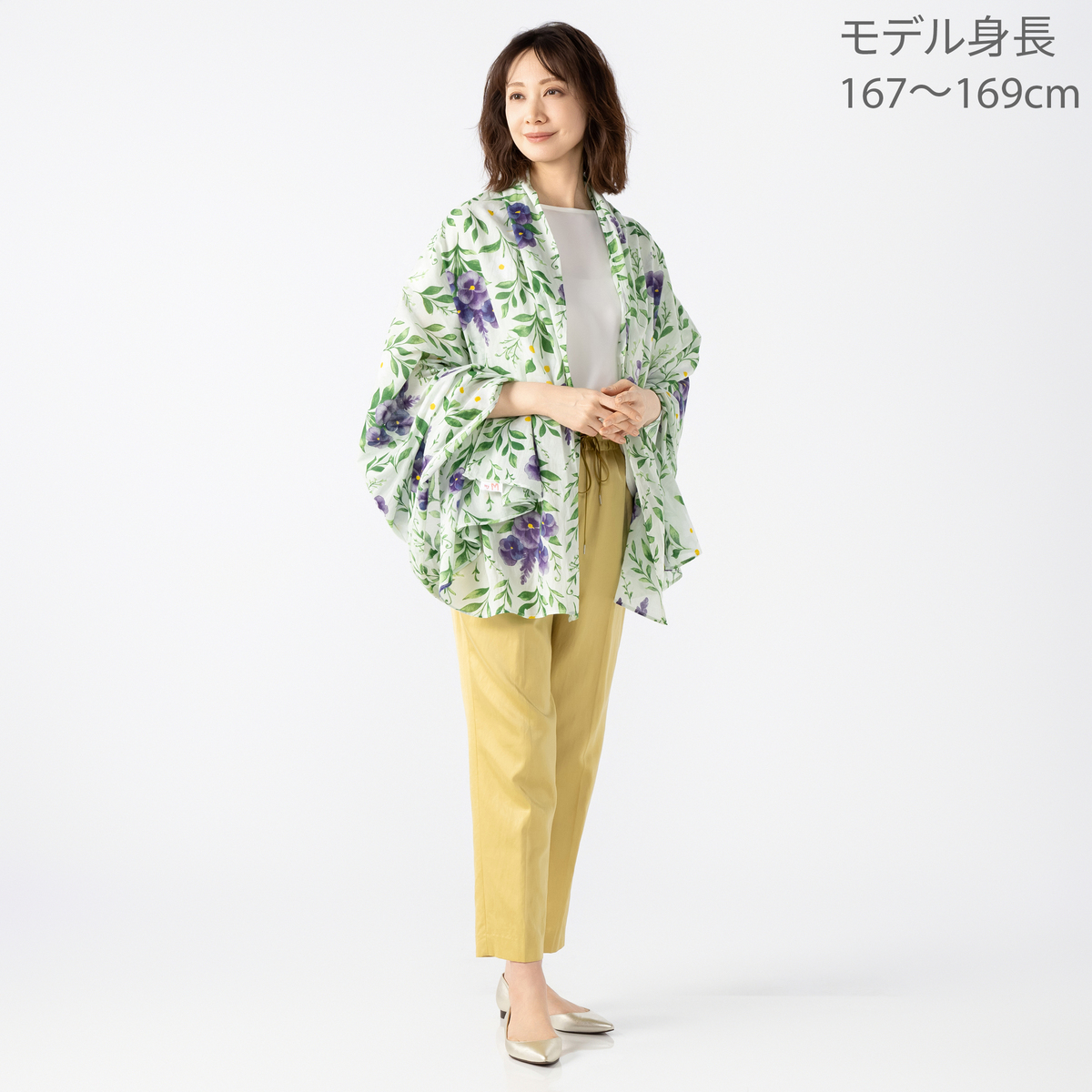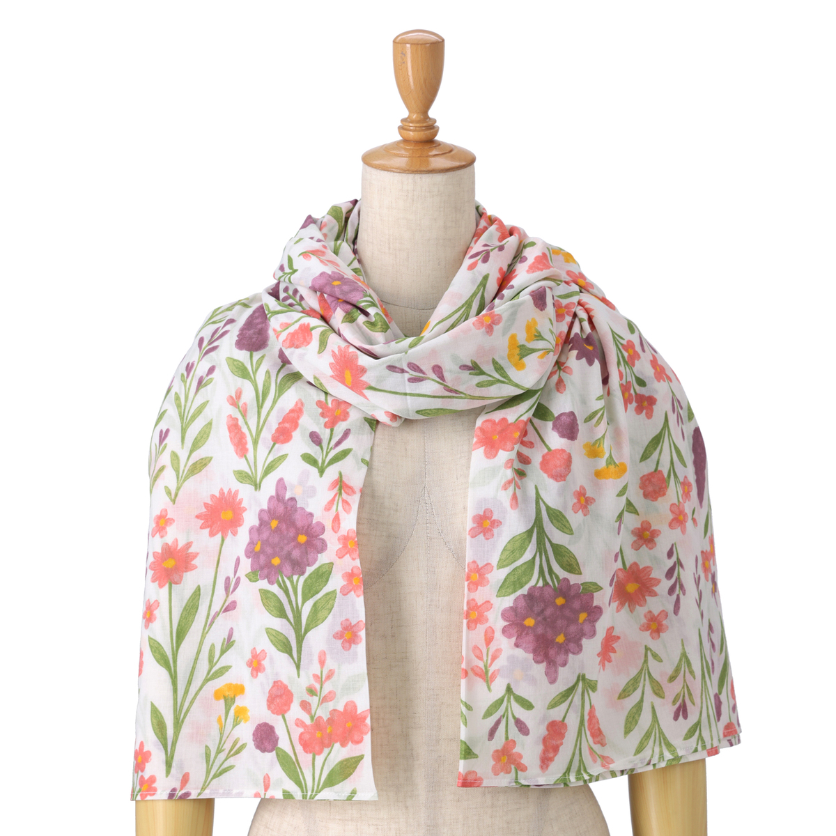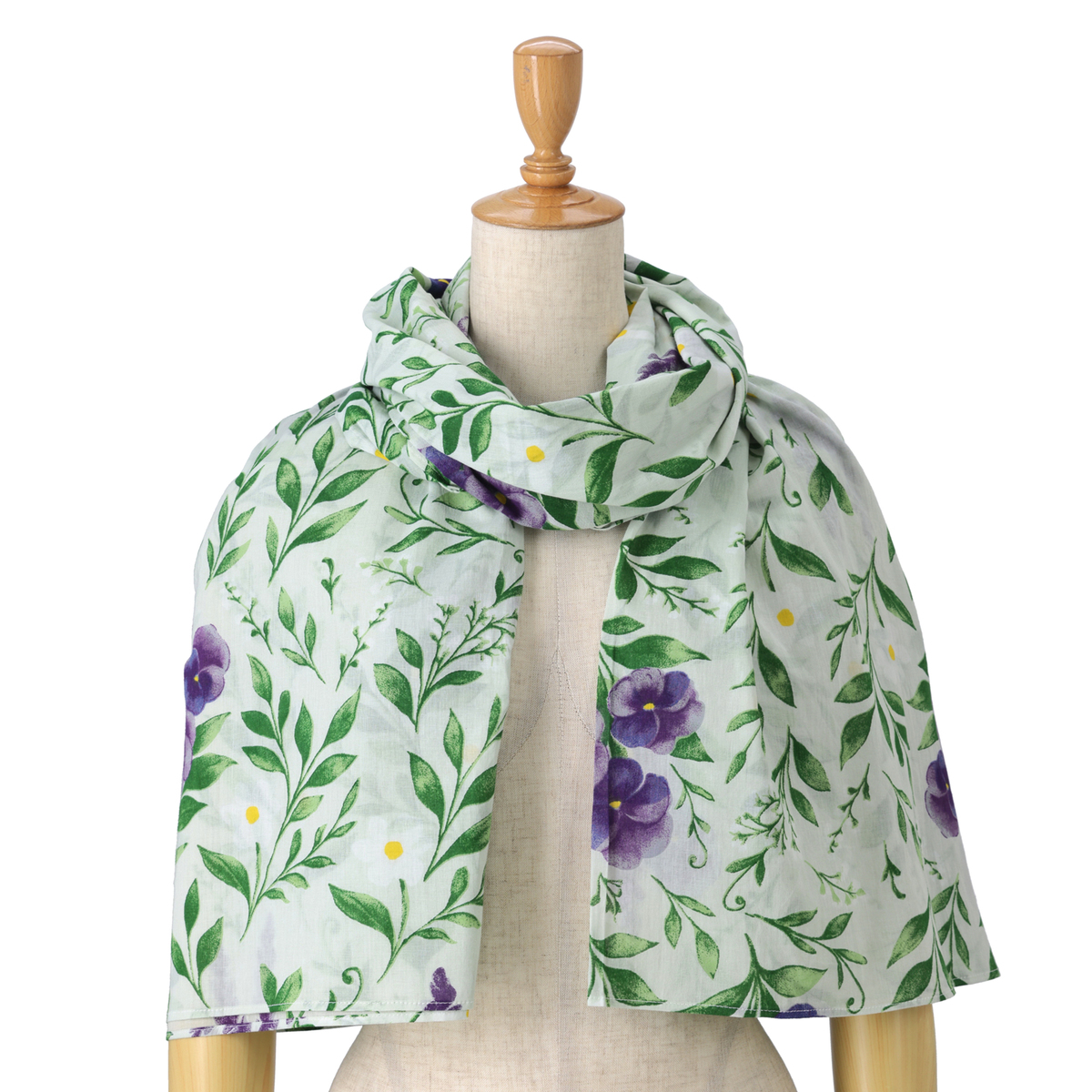 インド綿混素材を使用したストール。約180cm×105cmと大判サイズで、首元に巻いたり、広げて肩から掛け、お洋服のように見せるアレンジも楽しめます