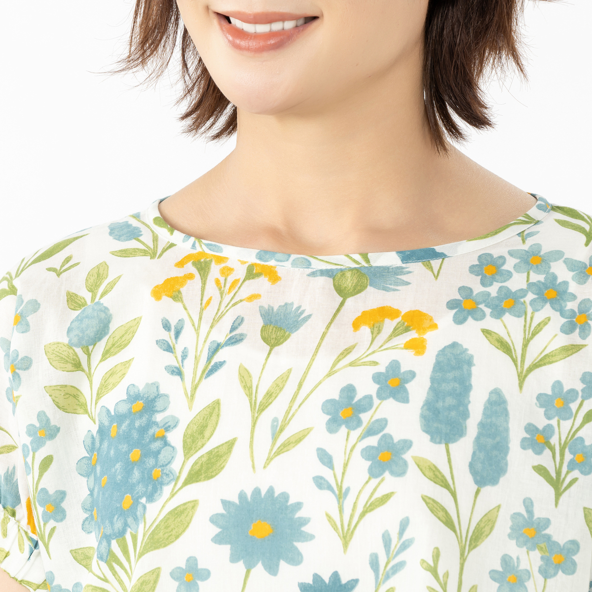 インド綿のプルオーバー。肩にさらっとかかるくらいの袖丈のフレンチスリーブです