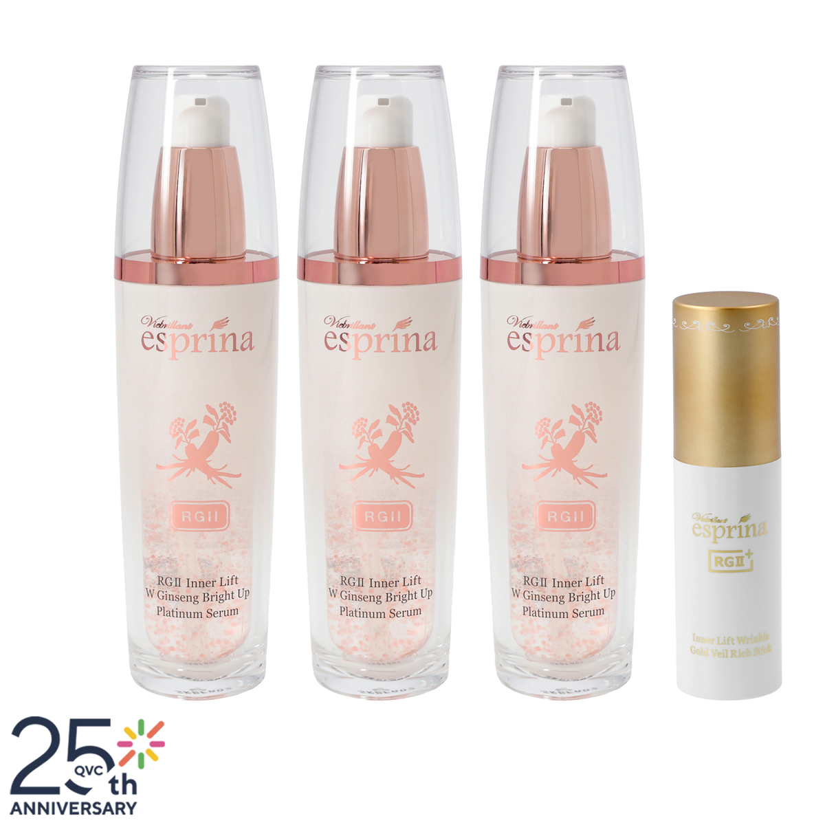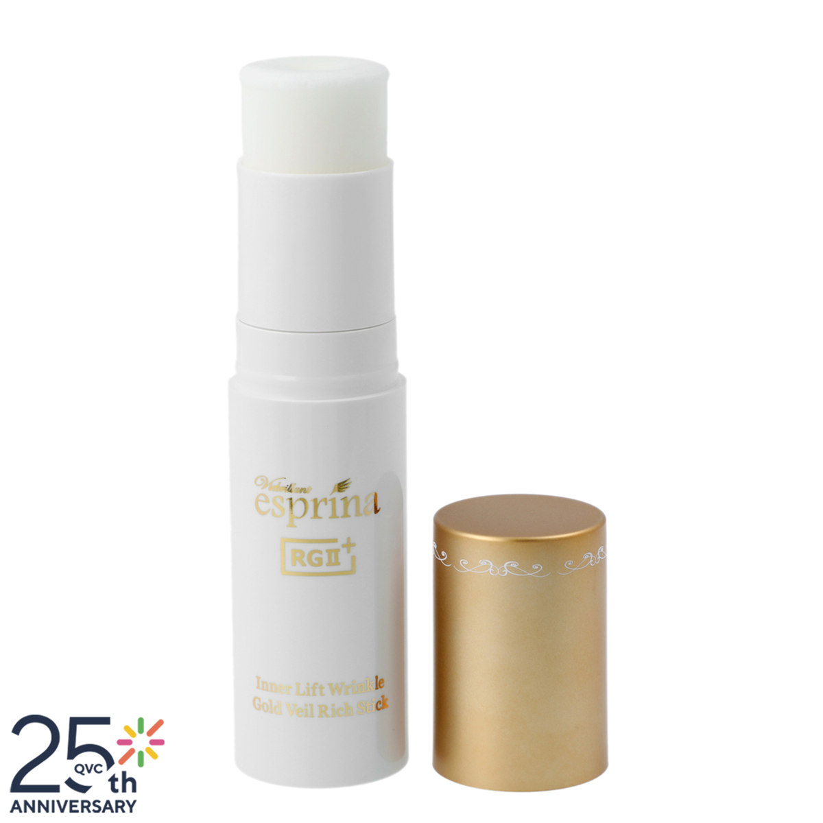 肌の内側(角質層)と外側(肌表面)から"Wのハリ感"を目指した、美肌力アップのための美容液。QVC25周年を記念してボトルは華やかなピンクをメインカラーにした特別デザイン。さらにスティック型の美容クリーム「RGII+ インナーリフト リンクル ゴールド ベール Rich スティック」をセットにしました
