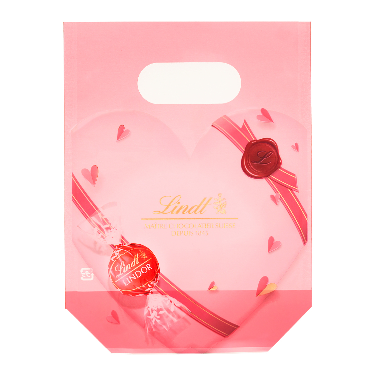 バレンタイン限定フレーバー。ミルクチョコレートのシェル、ホワイトチョコレートベースのフィリング、2つのシンプルなチョコレートが味わえるリンドール。可愛らしいハートが描かれたデザインの包み紙で、バレンタイン気分を味わえます