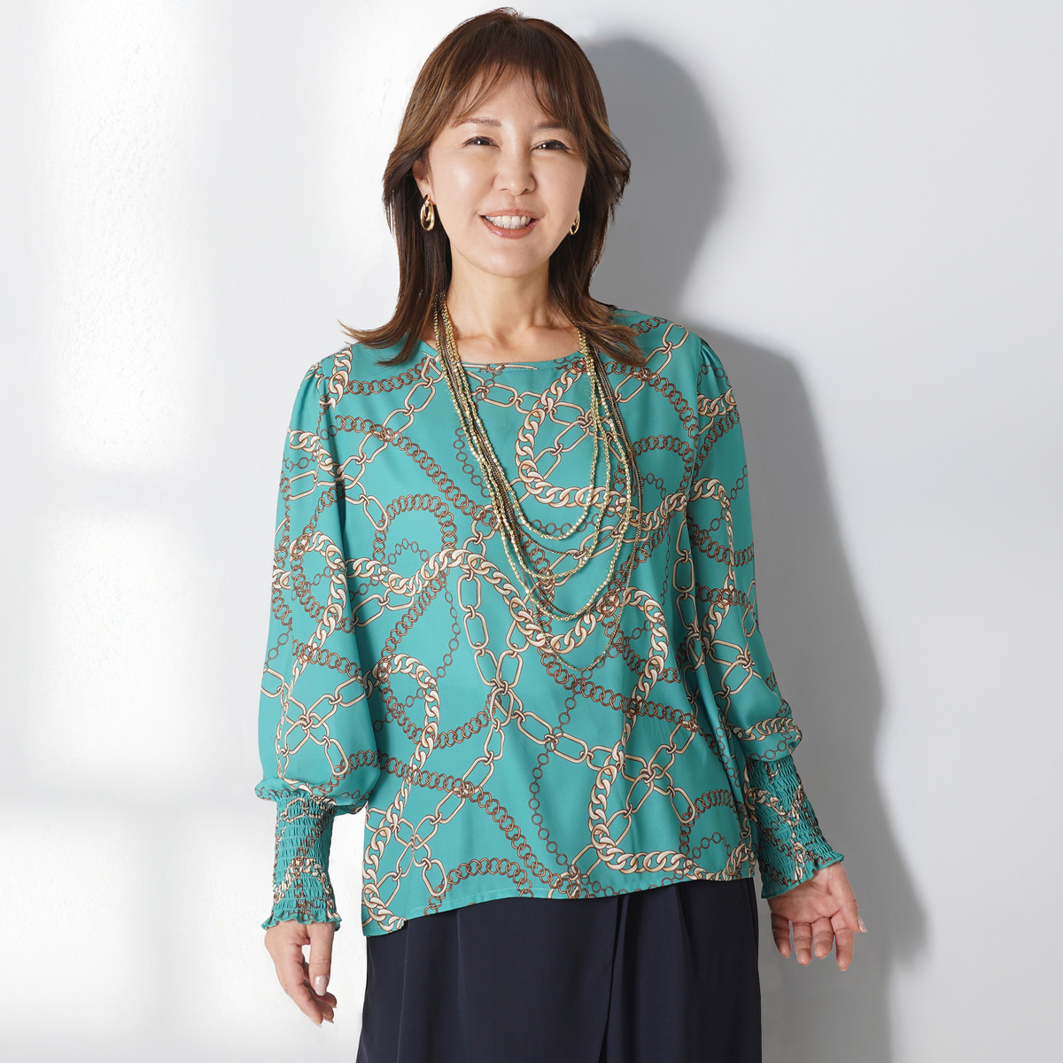 No. 751982 JEWEL MORRY’S チェーン柄ジョーゼットブラウス