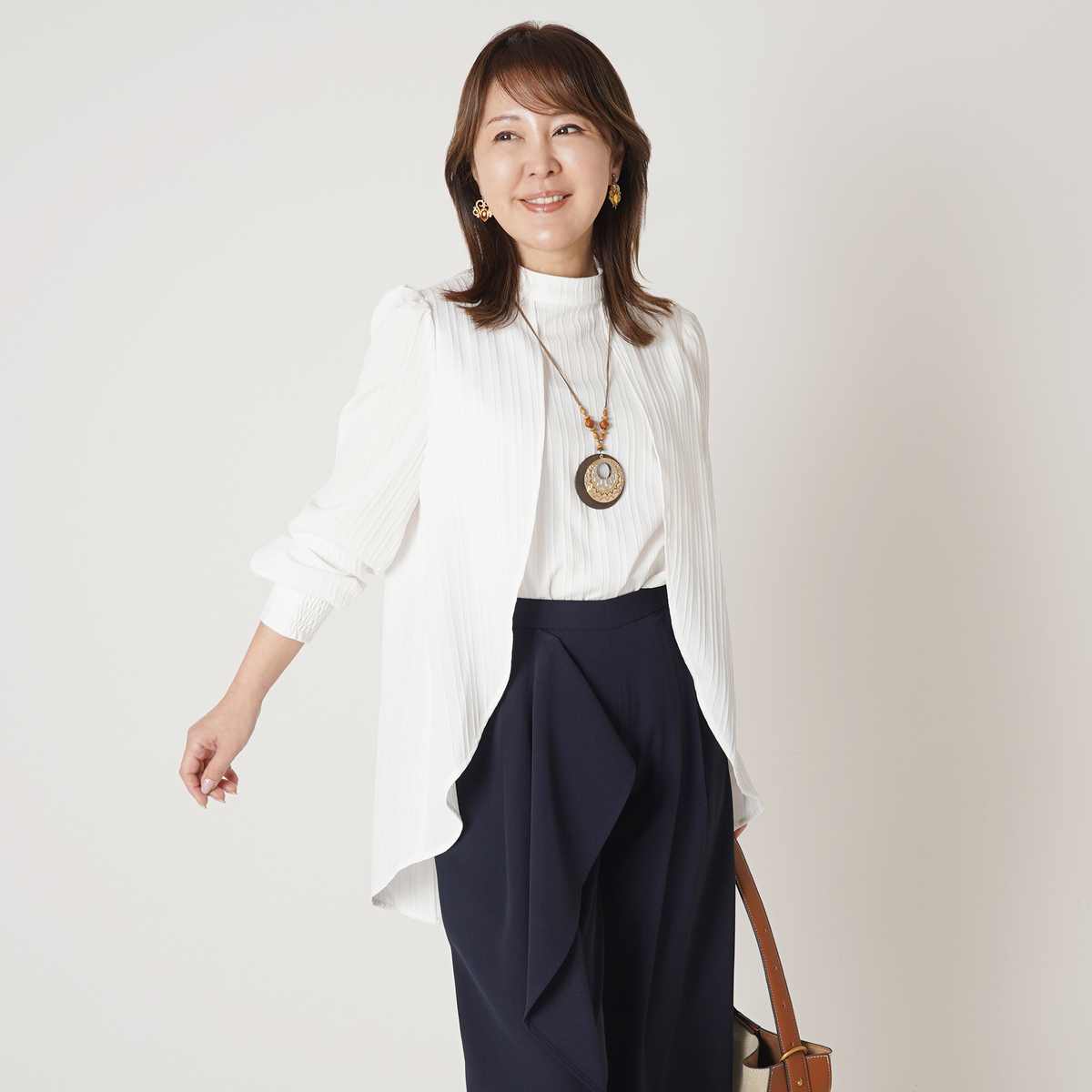〇前後差のある裾で軽やかな印象に
