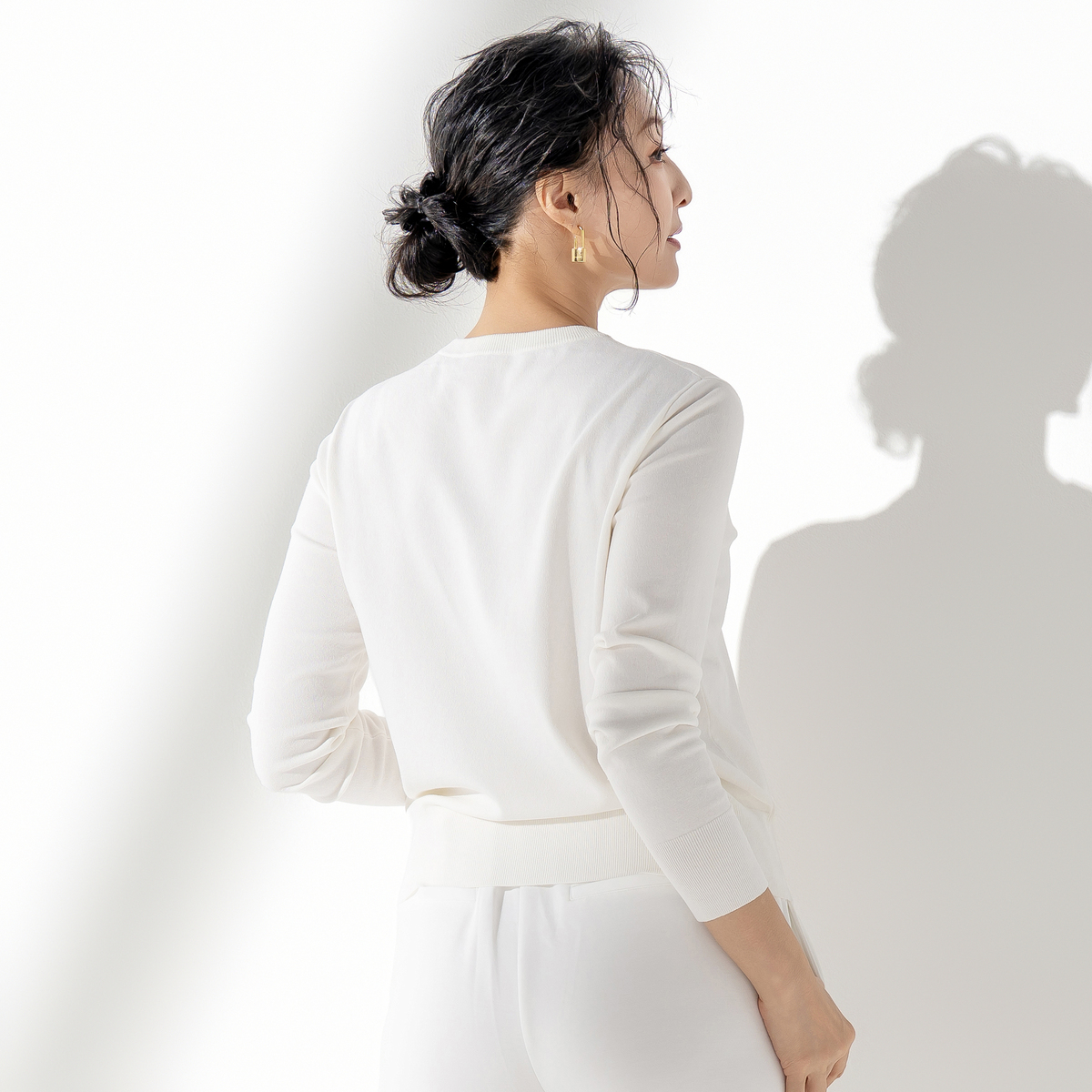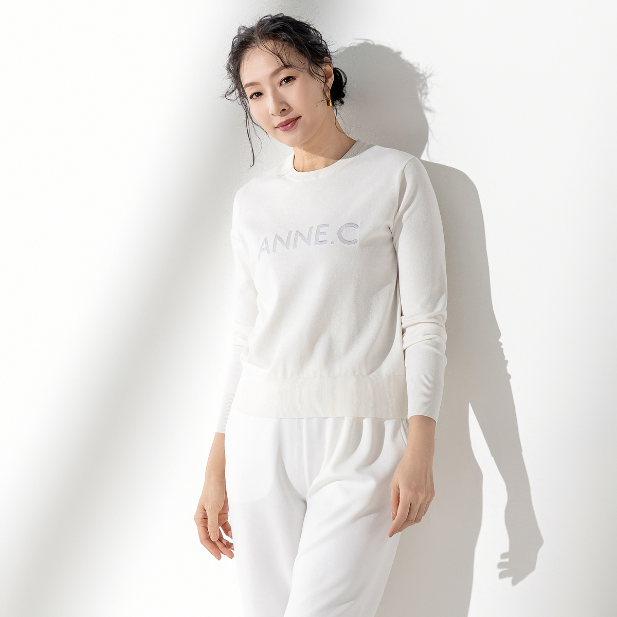 人気のコアスパンヤーンで仕立てたプルオーバー。前身頃にはオリジナルロゴをラメ糸で施し、後ろ中心には身頃同色でコーティングしたAパーツを配置。ベーシックな中に個性をしっかり宿した、着まわしやすい一枚です