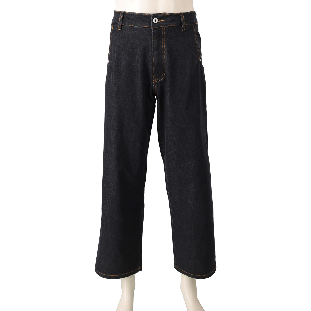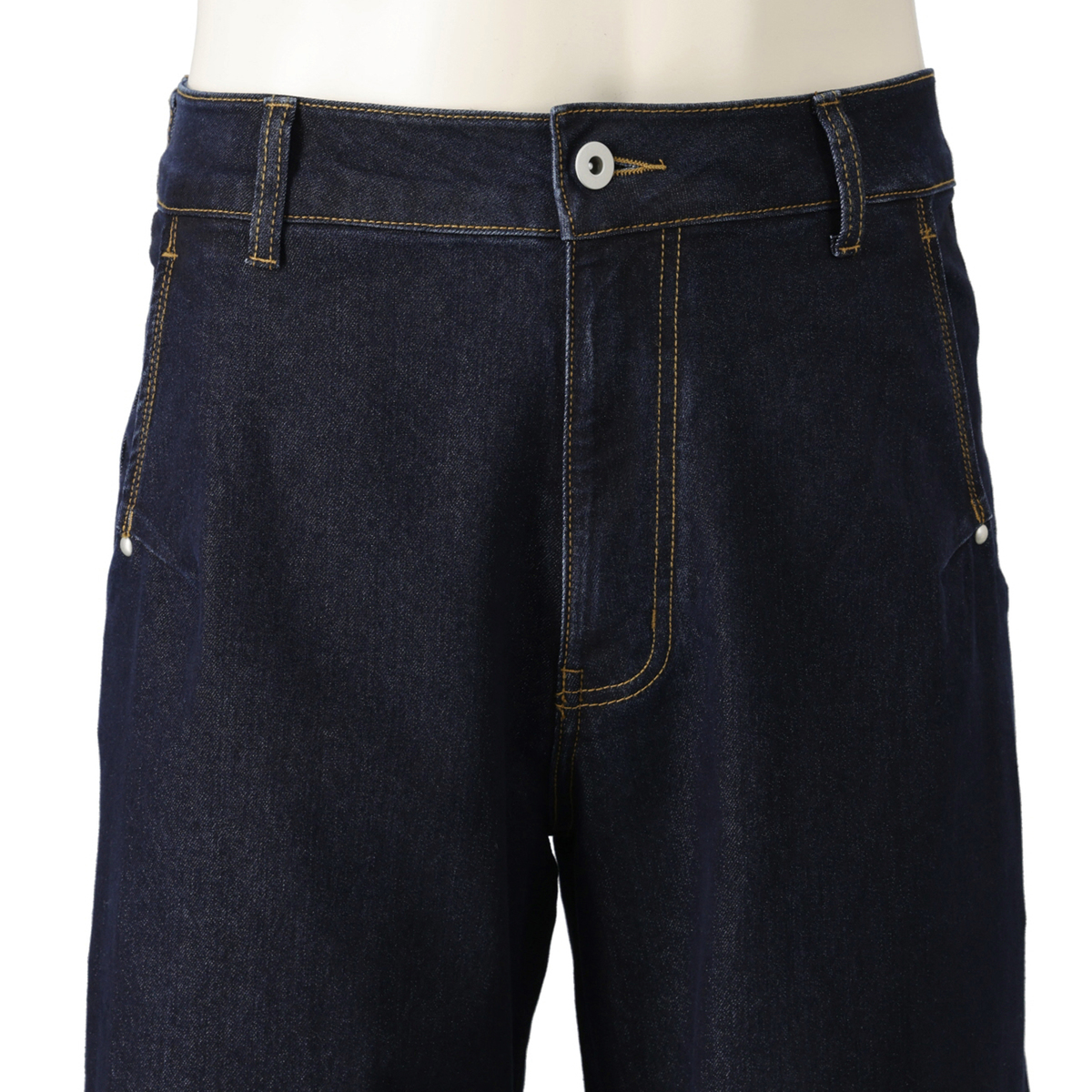 着回しに活躍してくれるデニムパンツ。ウエスト周りをすっきり仕上げた、程よい太さのワイドストレートシルエットです