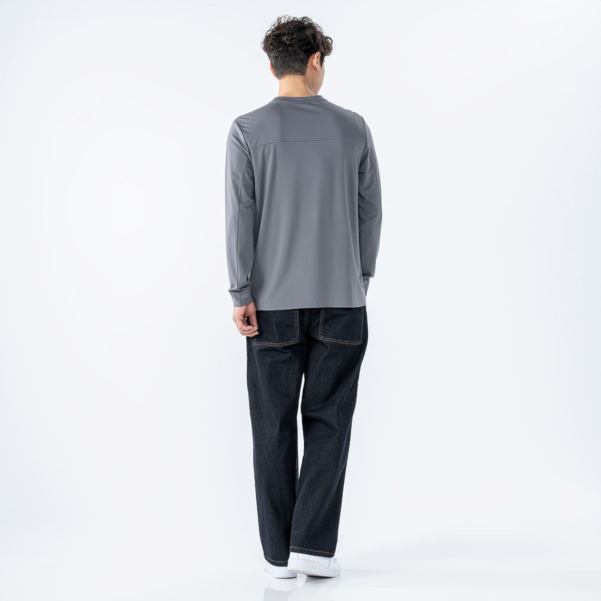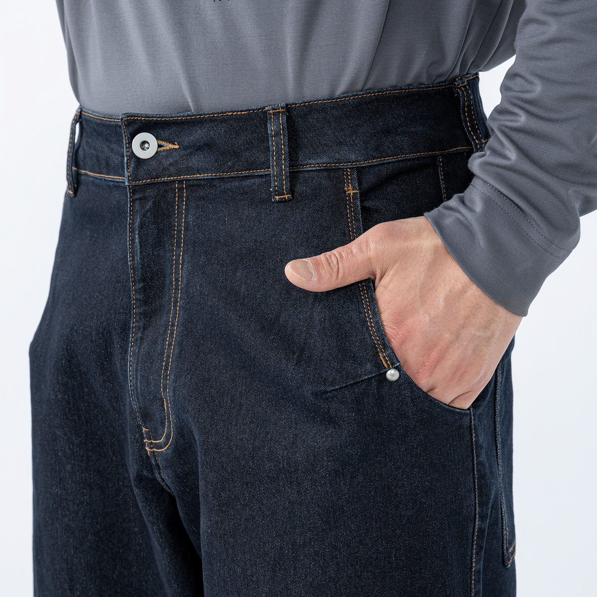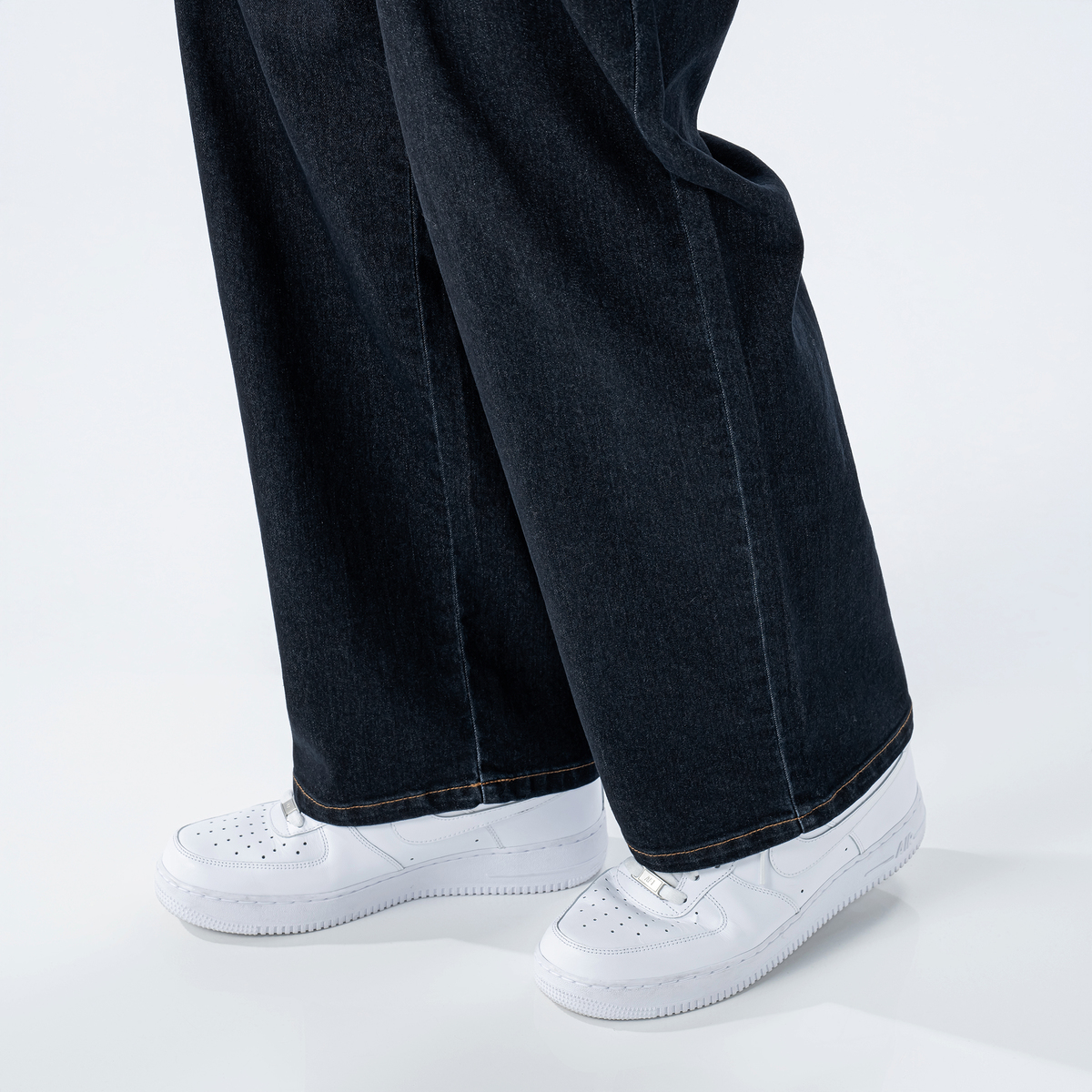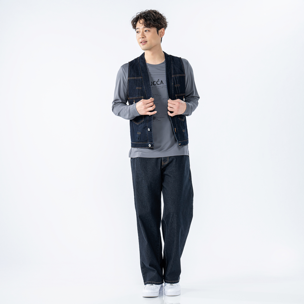 着回しに活躍してくれるデニムパンツ。ウエスト周りをすっきり仕上げた、程よい太さのワイドストレートシルエットです