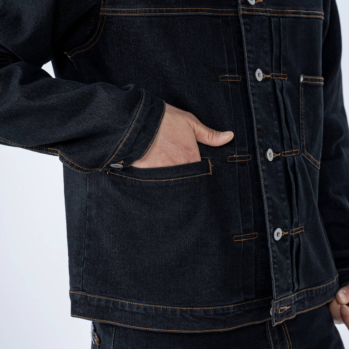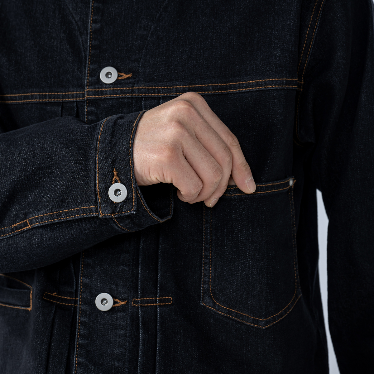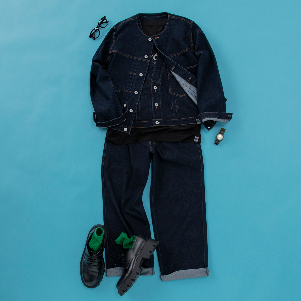 端正に見えるストレッチ生地を使った、軽さが心地よいデニムジャケット。かっちりとした見え方ながら軽やかに羽織れ、金茶ステッチがビンテージ感をほどよく引き立てます。ラウンドネックで組合せがしやすく、すっきりした印象に。洗濯機で気軽にお手入れできます
