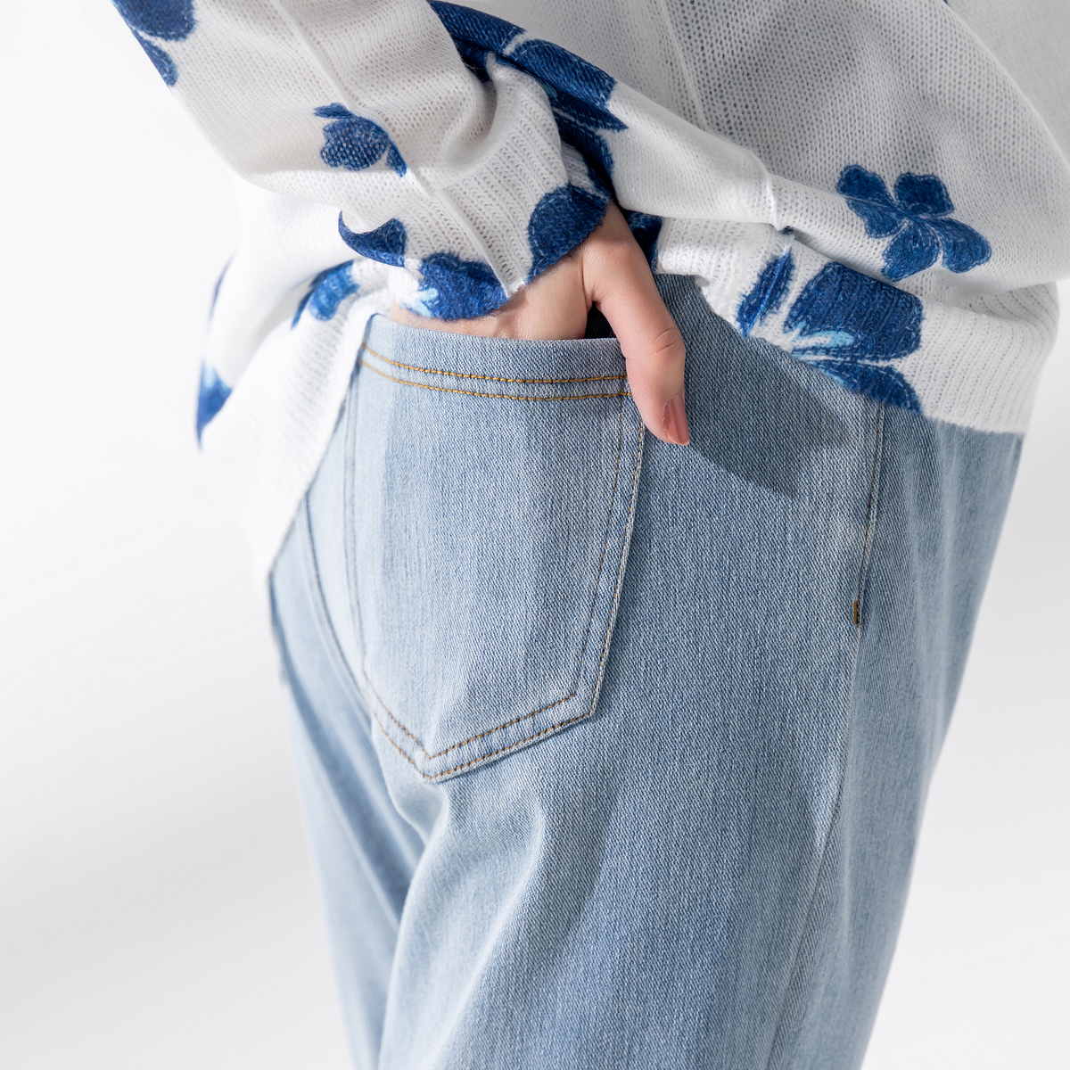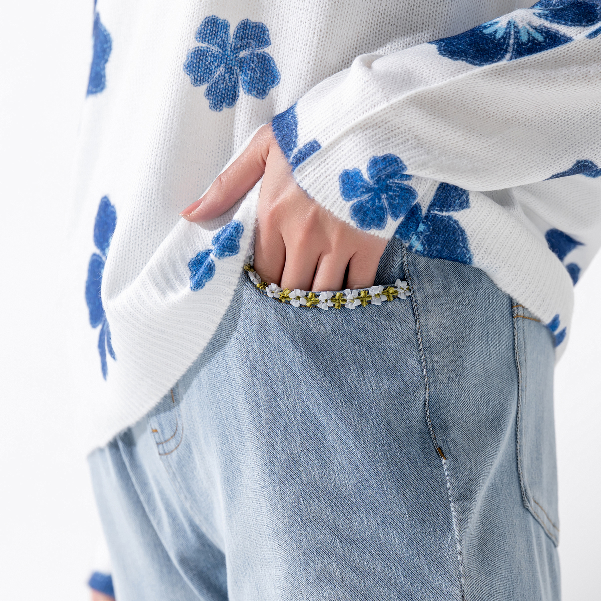 No. 751994 BLUE POOL ROAD フローラルトリムデニムニットパンツ