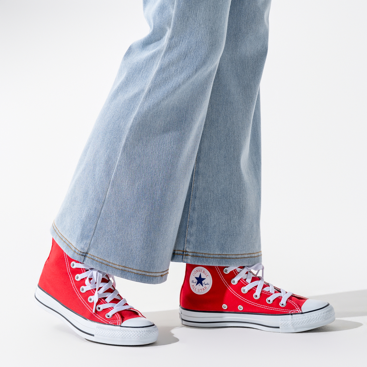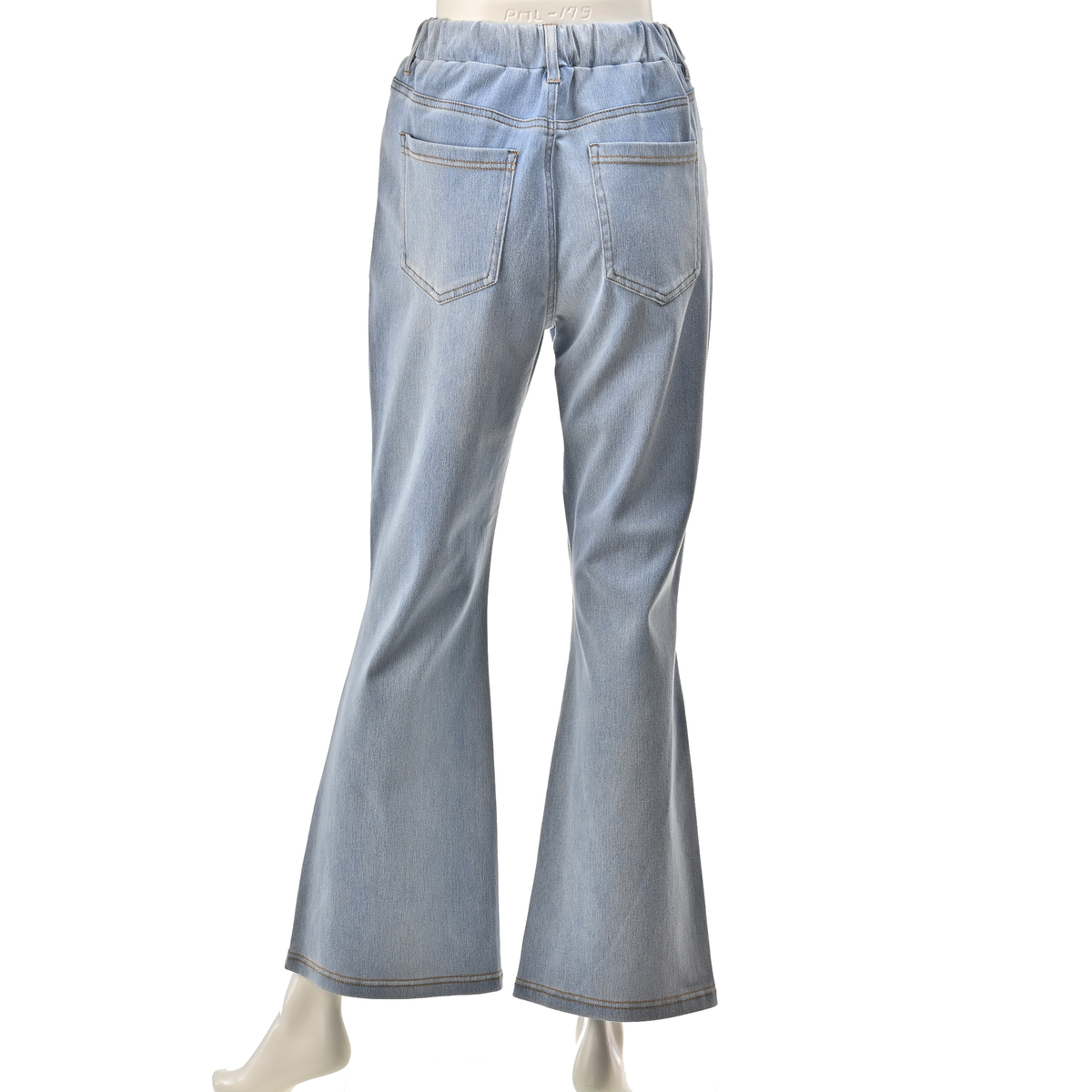 デニムの見た目とニットのしなやかさを兼ね備えたデニムニット素材を使用。窮屈感を感じにくい快適な穿き心地です。ウエストは総ゴムでラクな穿き心地。裾に向かって自然に広がるフレアラインが脚をまっすぐ長く見せ、合わせるトップスを選ばず幅広いスタイリングに馴染みます