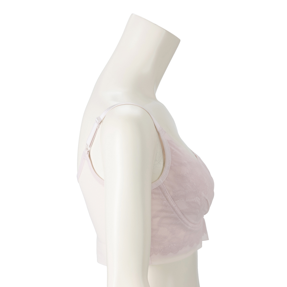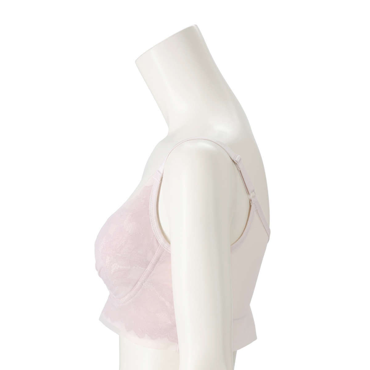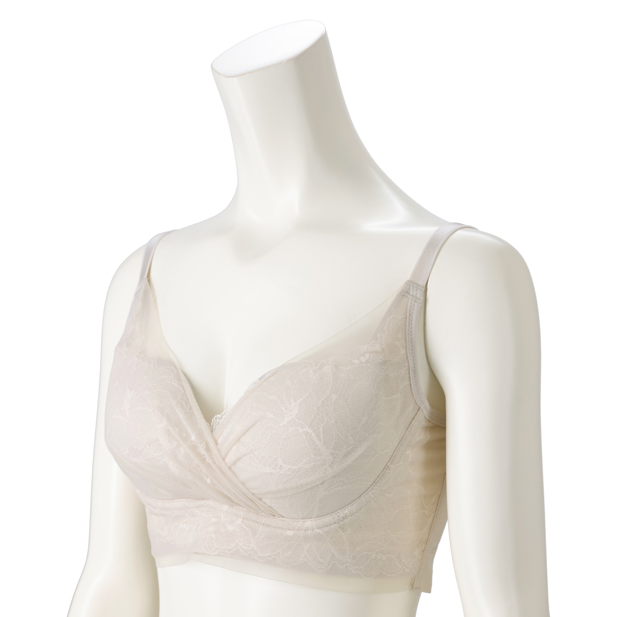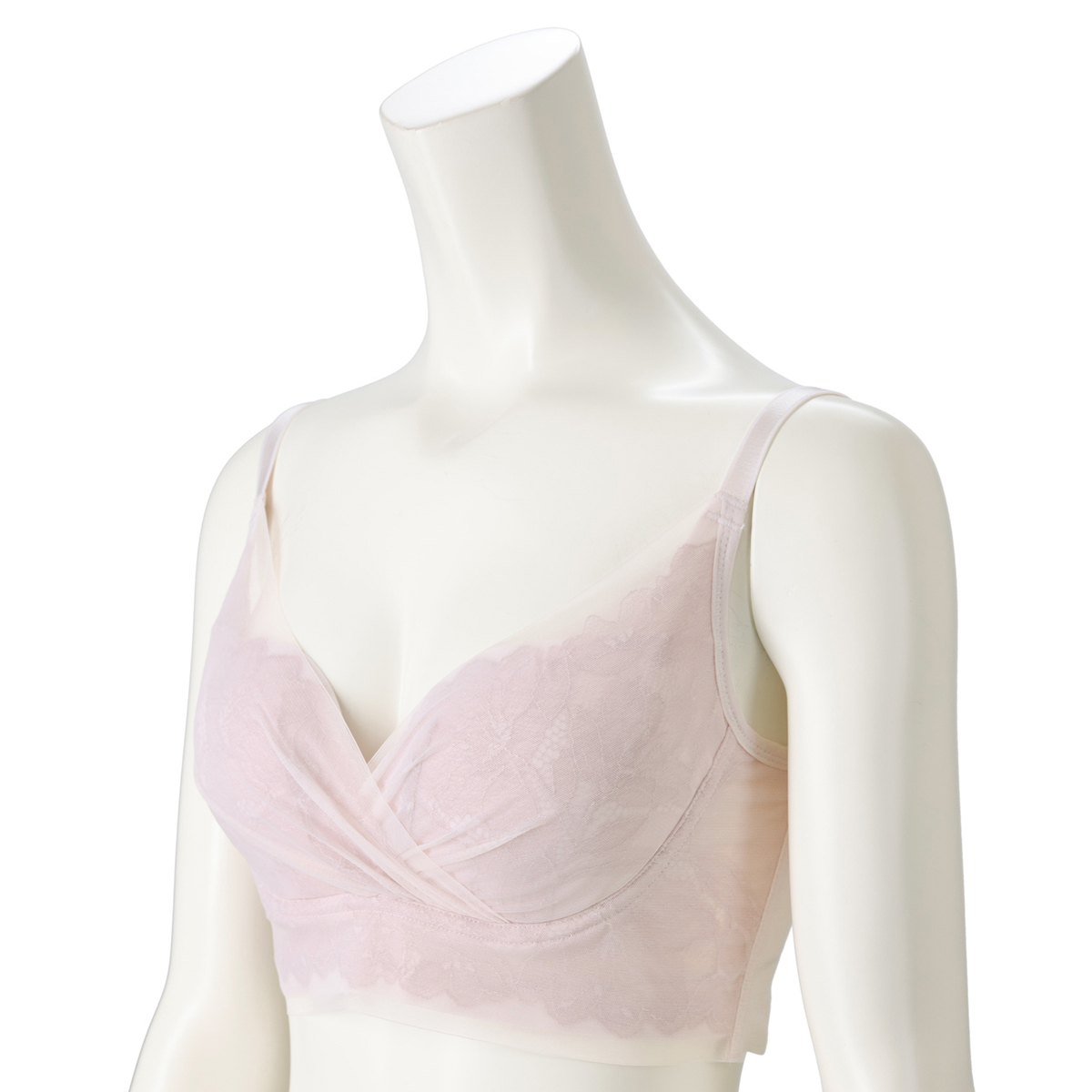 まるでワイヤーブラのようにバストメイクする、オリジナルの立体設計ブラパターンを採用。しなやかなフィット感で楽な着心地とバストアップ機能を両立。カップの前中心は縫い合わせることで、カップが横に広がりにくく、きれいなバストシルエットをキープします
