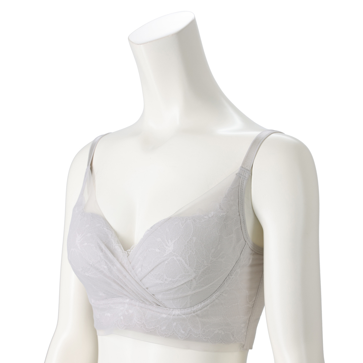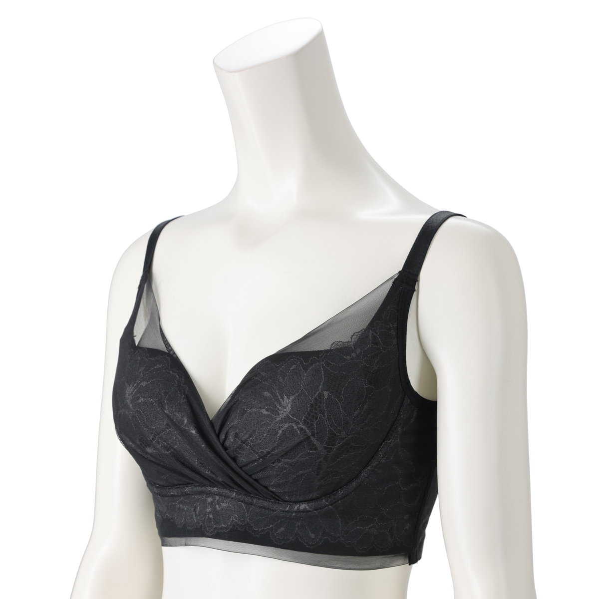 カサブランカをイメージした上品で繊細なレースに、透明感があり軽くて柔らかい肌触りのシアーパワーネットを重ねた仕様***。レースがアウターに響きにくく、日常使いしやすい仕上がりです