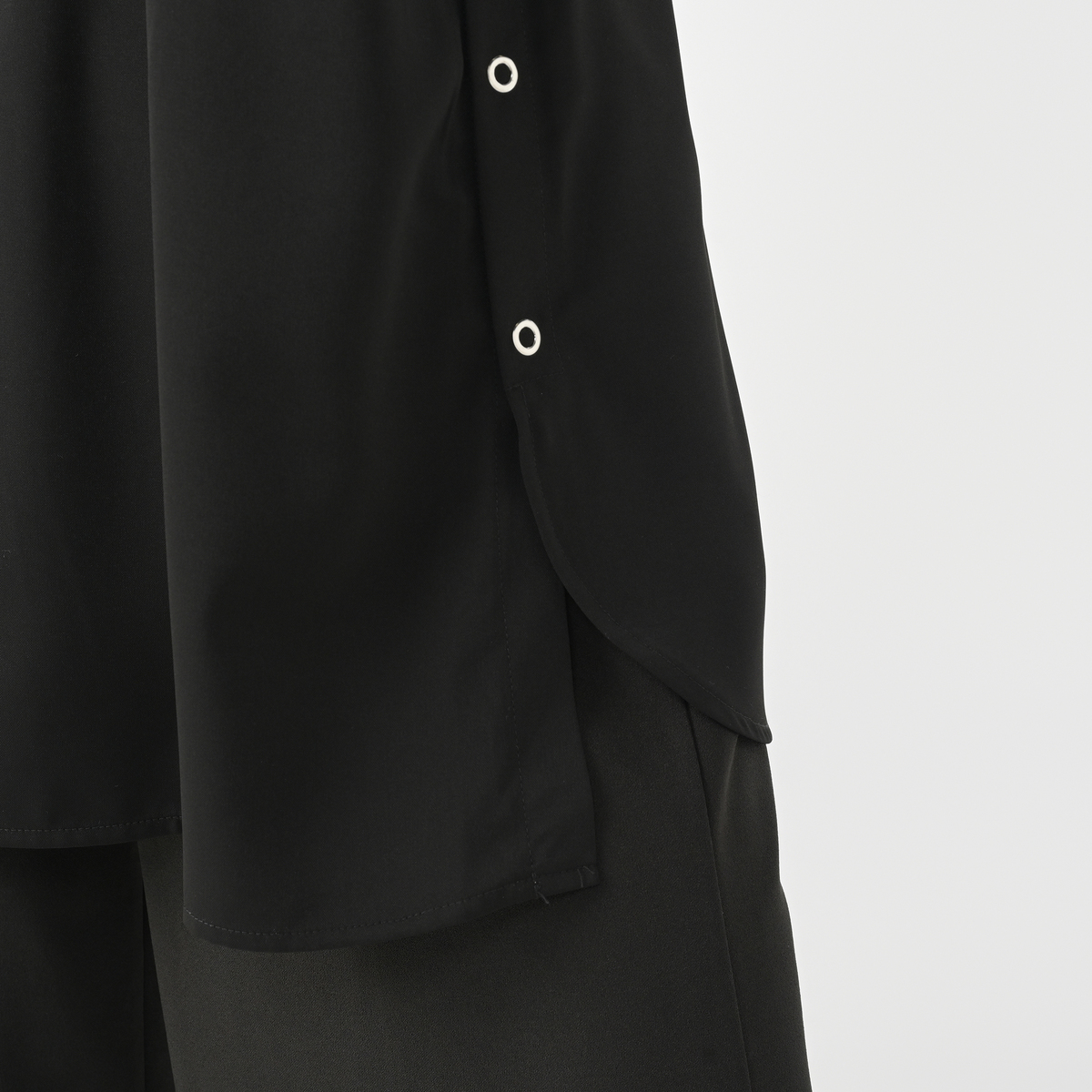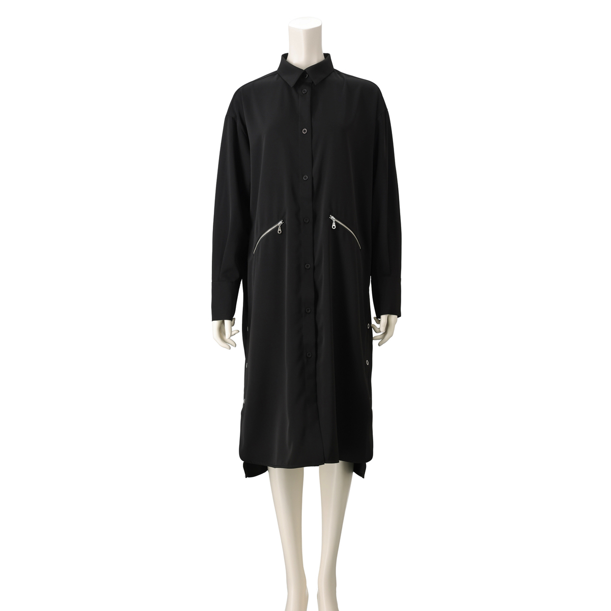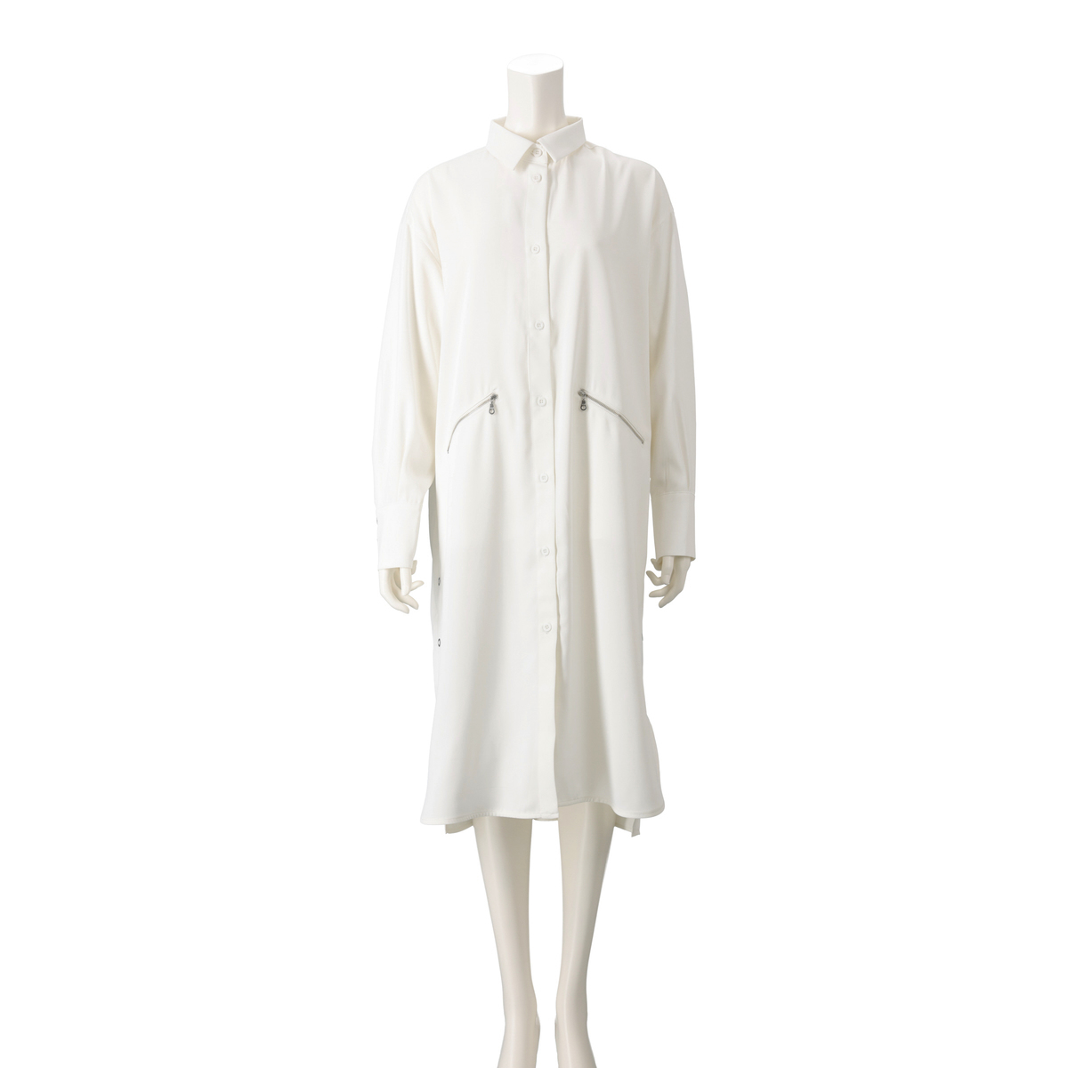 ドット釦がアクセントになった、デザインシャツワンピース。サイドスリット釦の開閉で、シルエットや着こなしをアレンジできます