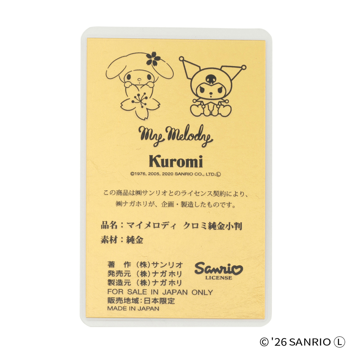 マイメロディ/クロミ 純金 小判 3g 桐箱入り