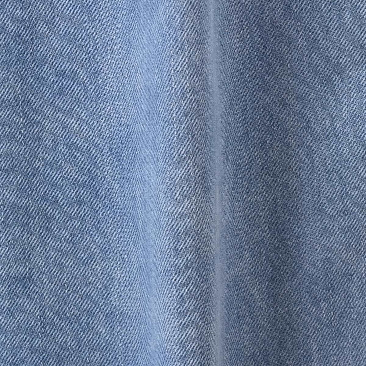 落ち感のよい柔らかなデニム生地を使用。太めのスラブが入った本格デニムで、ほどよい厚みで真冬以外のロングシーズンで活躍します。製品でバイオウォッシュを施し、洗いならではの自然な表情が出ています