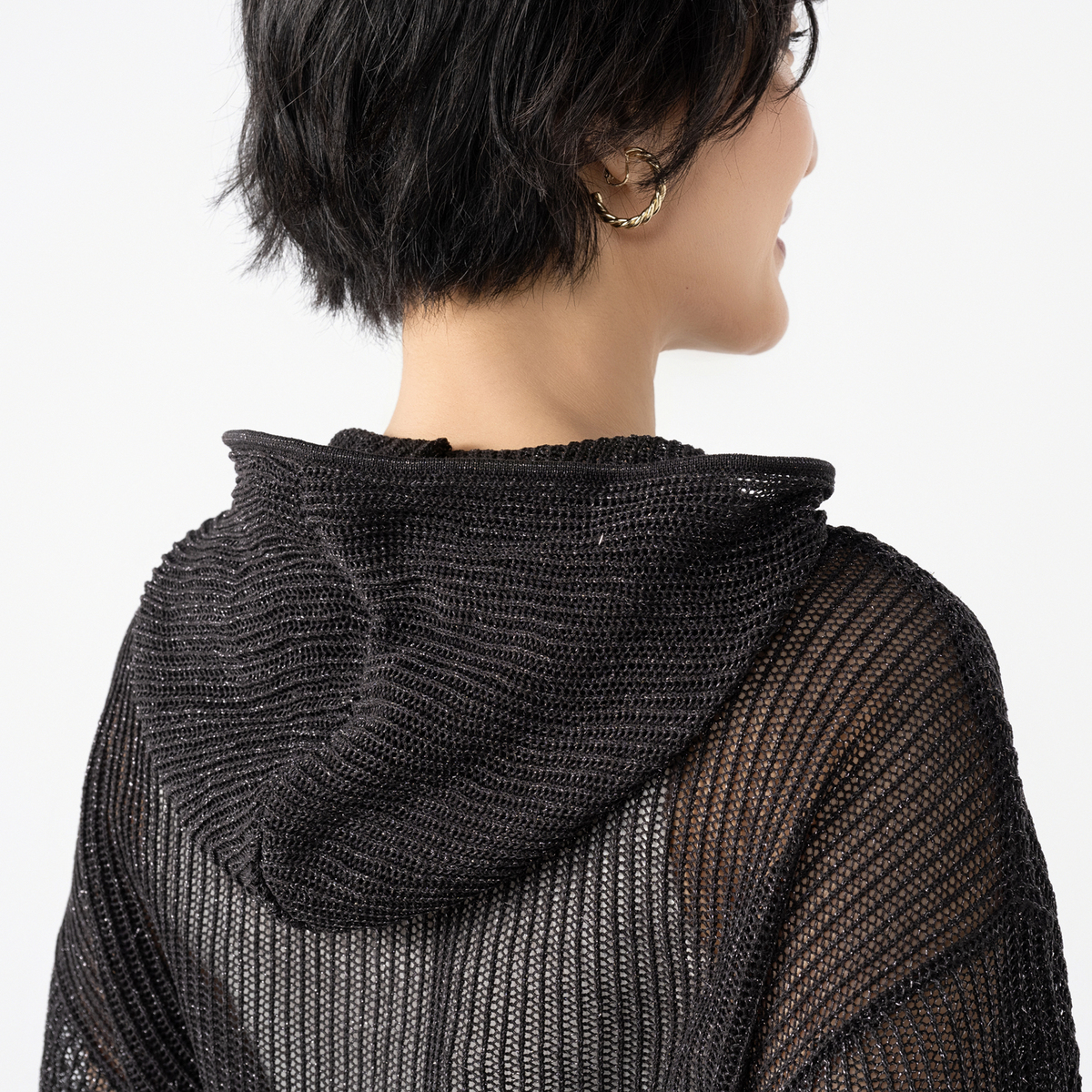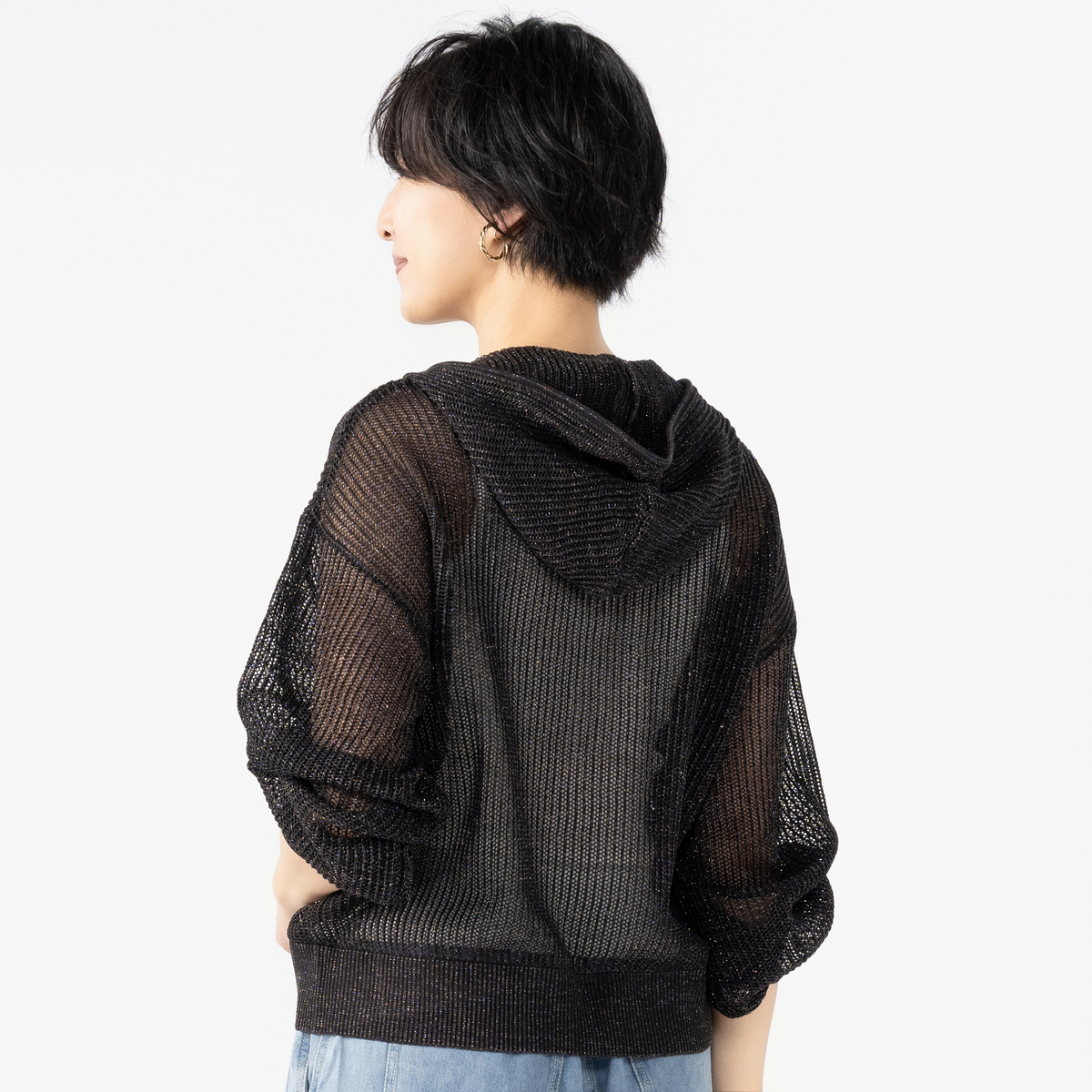 麻のようなドライタッチが心地よいシアーメッシュのジップアップパーカー。体のラインを拾いにくいリラックスシルエットで、季節の変わり目にさっと羽織れます。涼しい着用感で、裾と袖口のリブでシルエットがすっきりまとまります