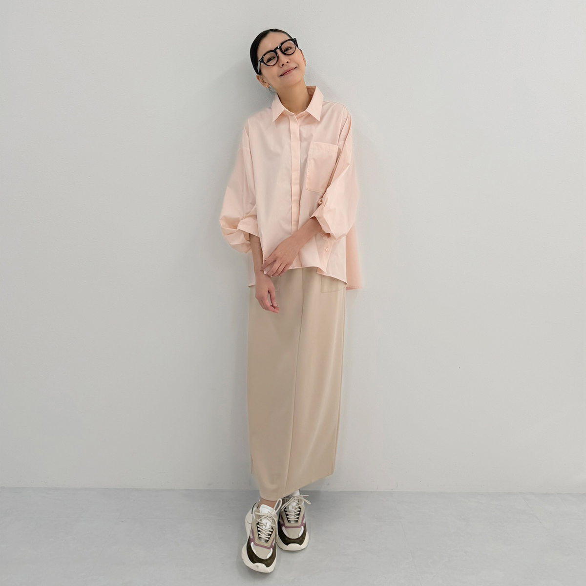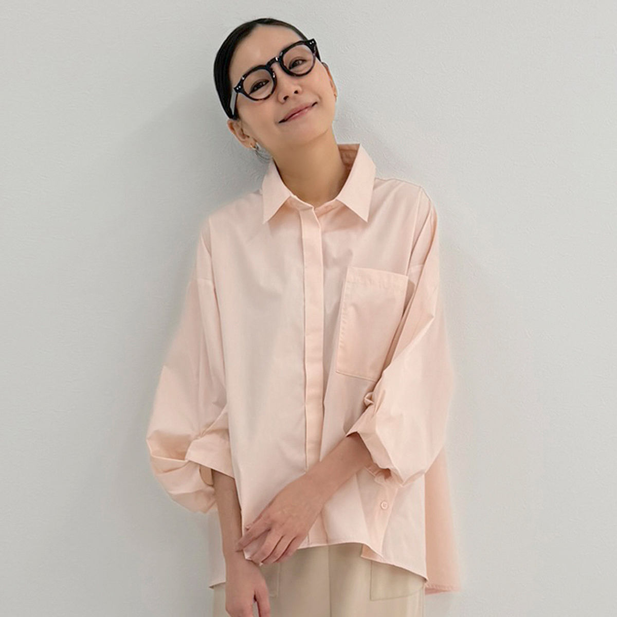 変形させた袖口が特徴のシャツブラウス。袖にボリューム感が生まれ、モードな雰囲気を引き立てます