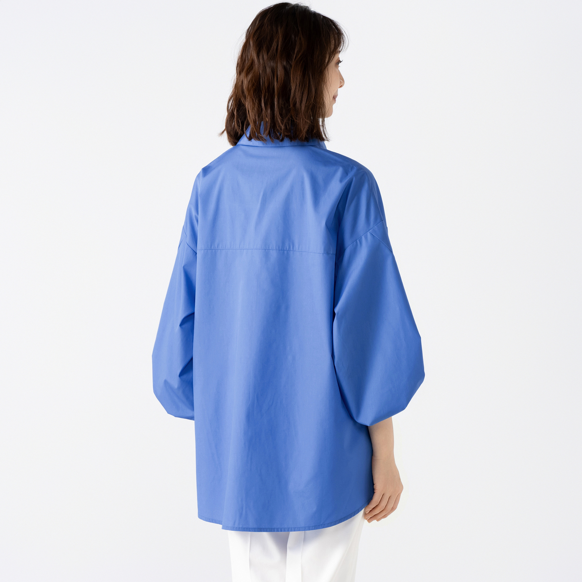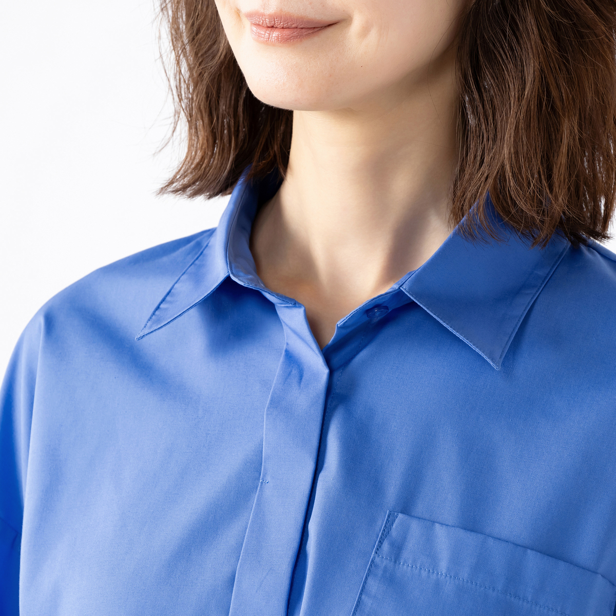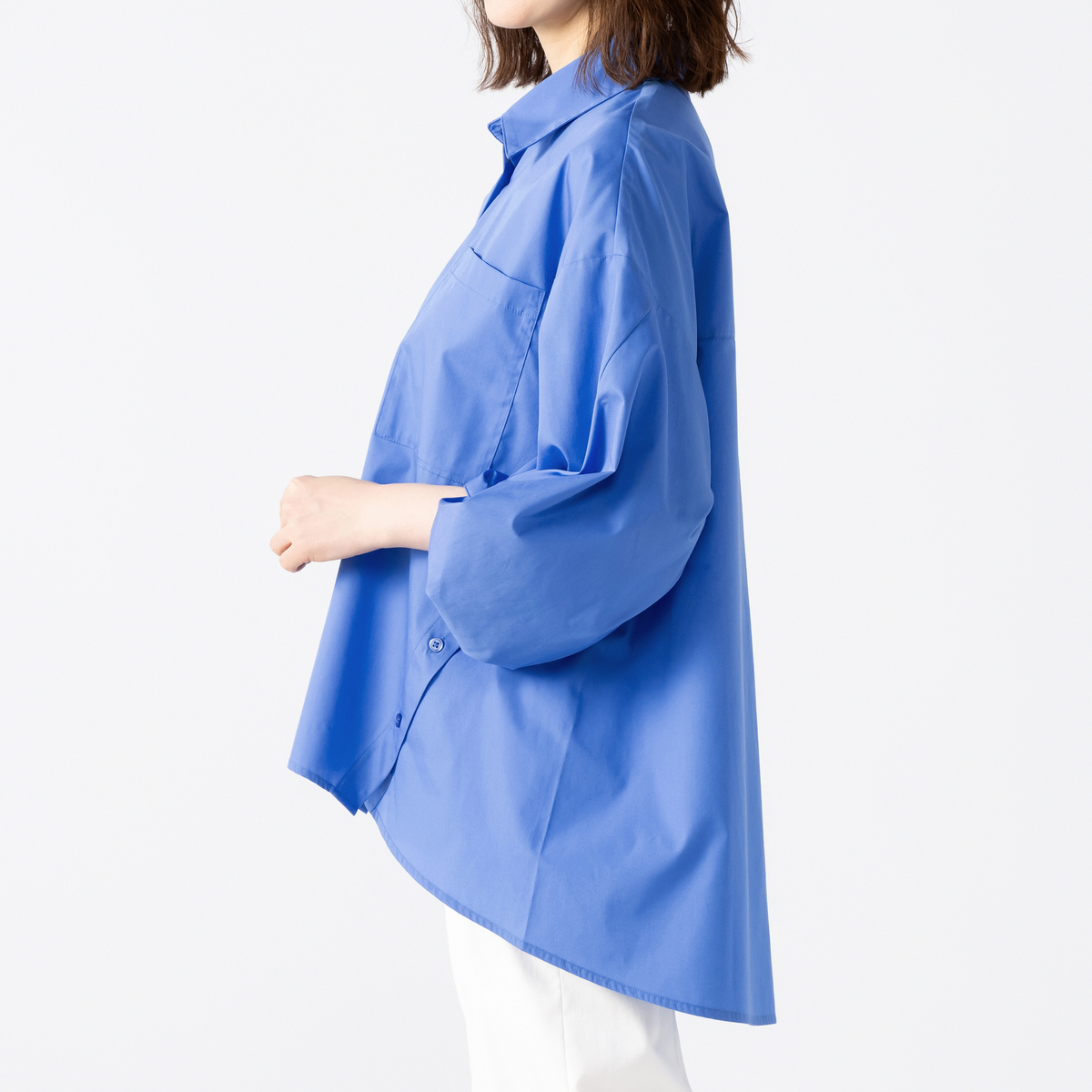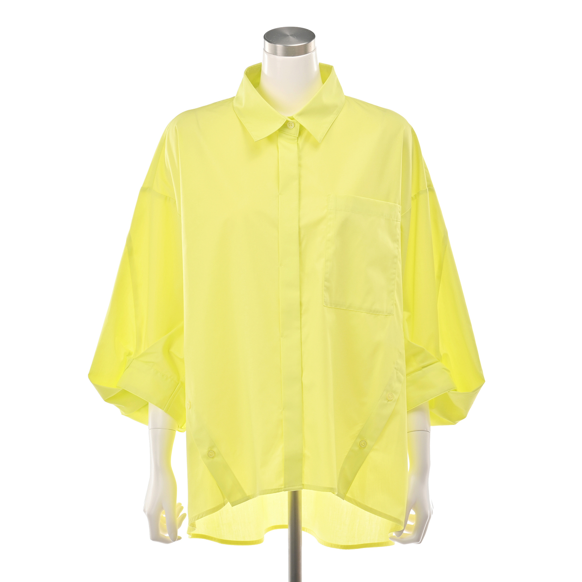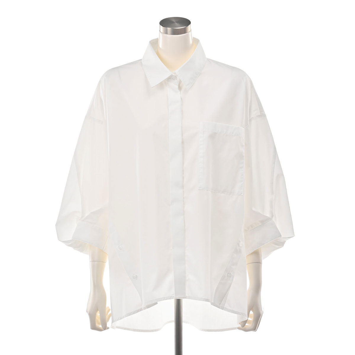 袖口を変形させてアクセントを効かせてデザイン。袖にボリューム感が生まれ、モード感とこなれ感も。フロントはあえて比翼仕立てにすることで、クリーンな印象が際立ちます