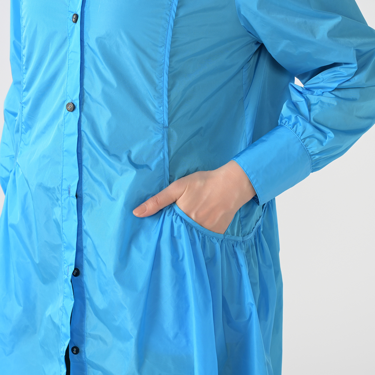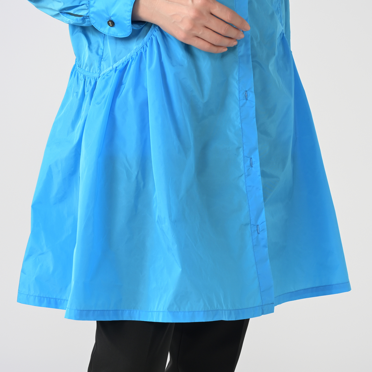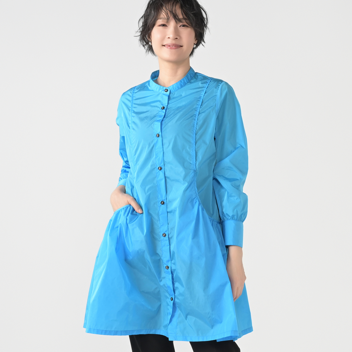 ブランドならではのフェミニンな特徴が詰まったワンピースです。ポケットにはギャザーのテクニックを取り入れ、スタンドカラーや膝が隠れる丈感が上品さとこなれた印象に導きます