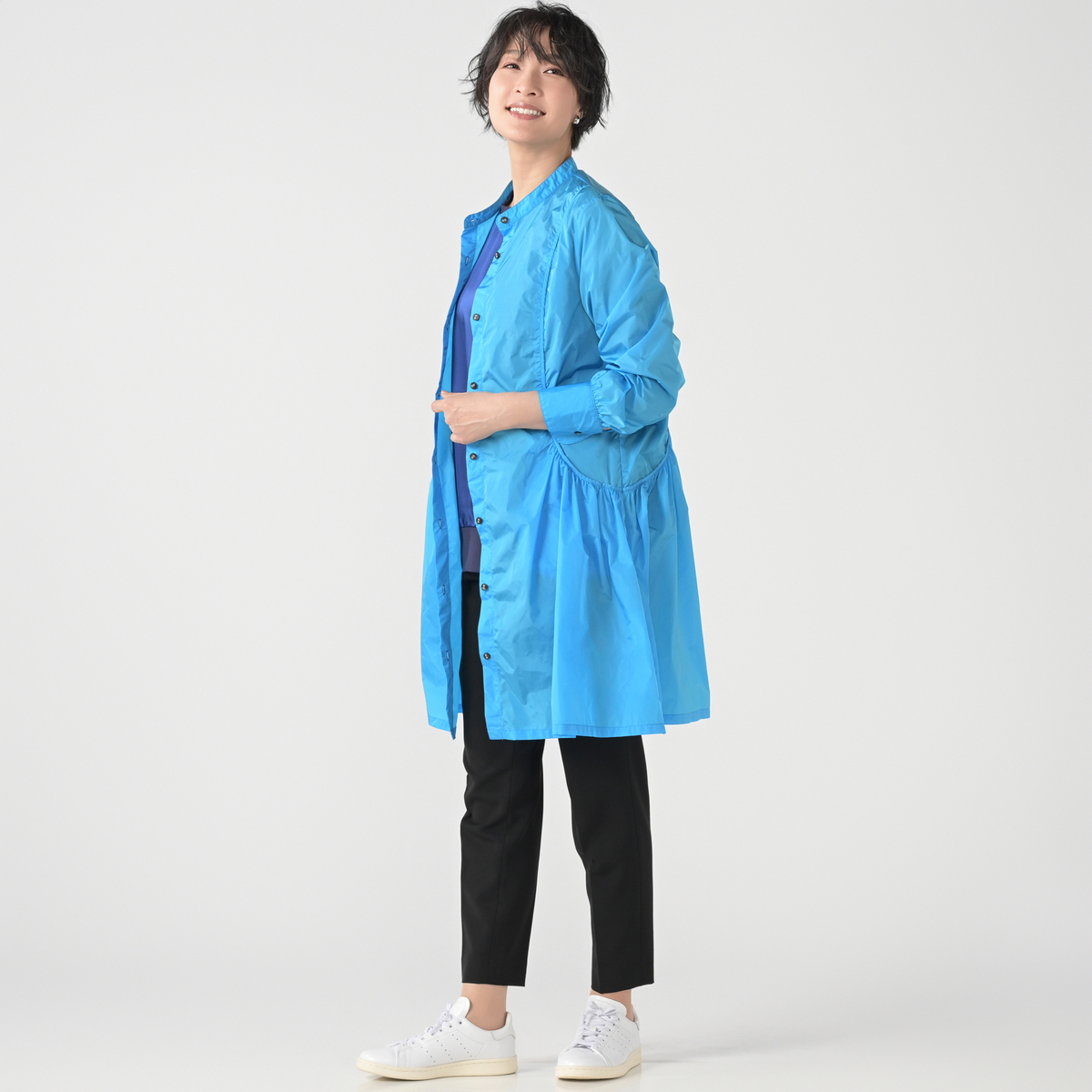 一枚で主役になるデザインなので、暖かい日はさらりと着用できます。ショート丈のジレと合わせれば旬のスタイルに。足元のおしゃれも楽しめる丈感で、毎日のコーディネートの幅が広がります