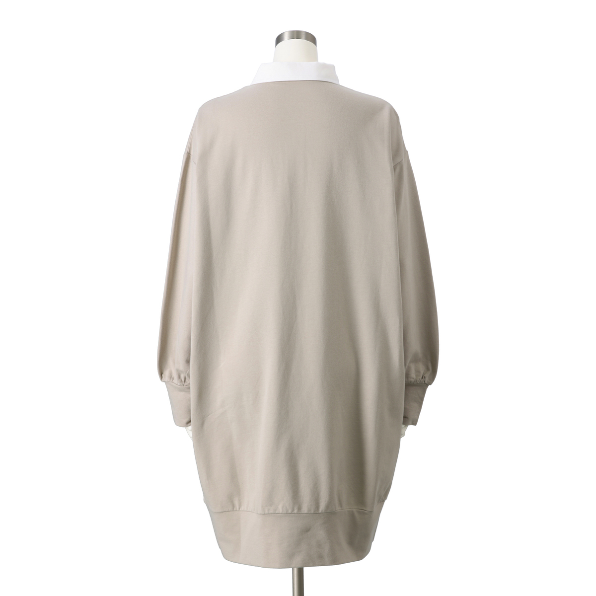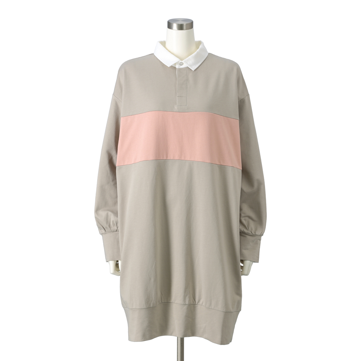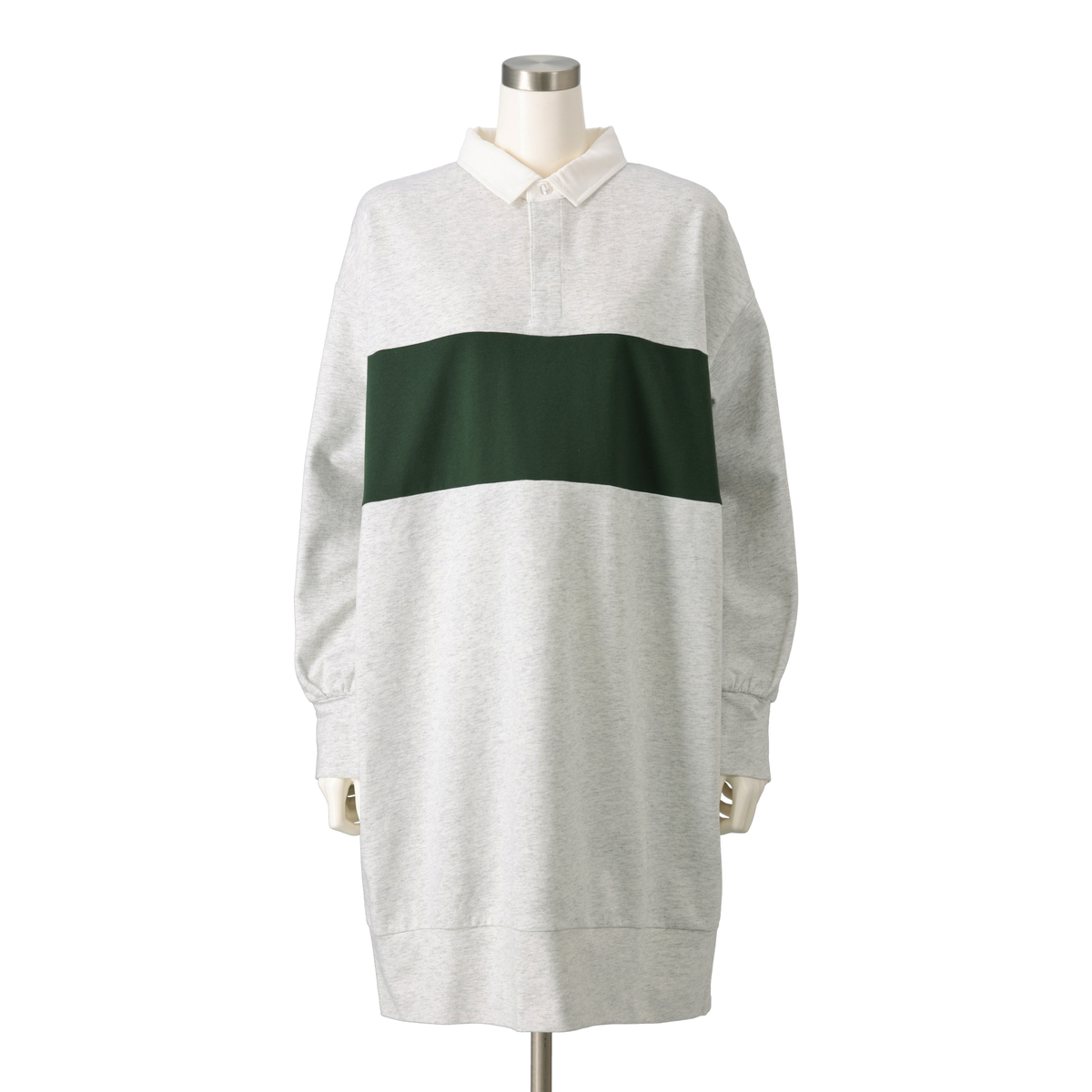 スポーティなラガーシャツデザインを、ワンピースに落とし込んでデザイン。衿にはきれい見えする布帛素材を使用。身頃は柔らかく軽いミニ裏毛で仕立てています