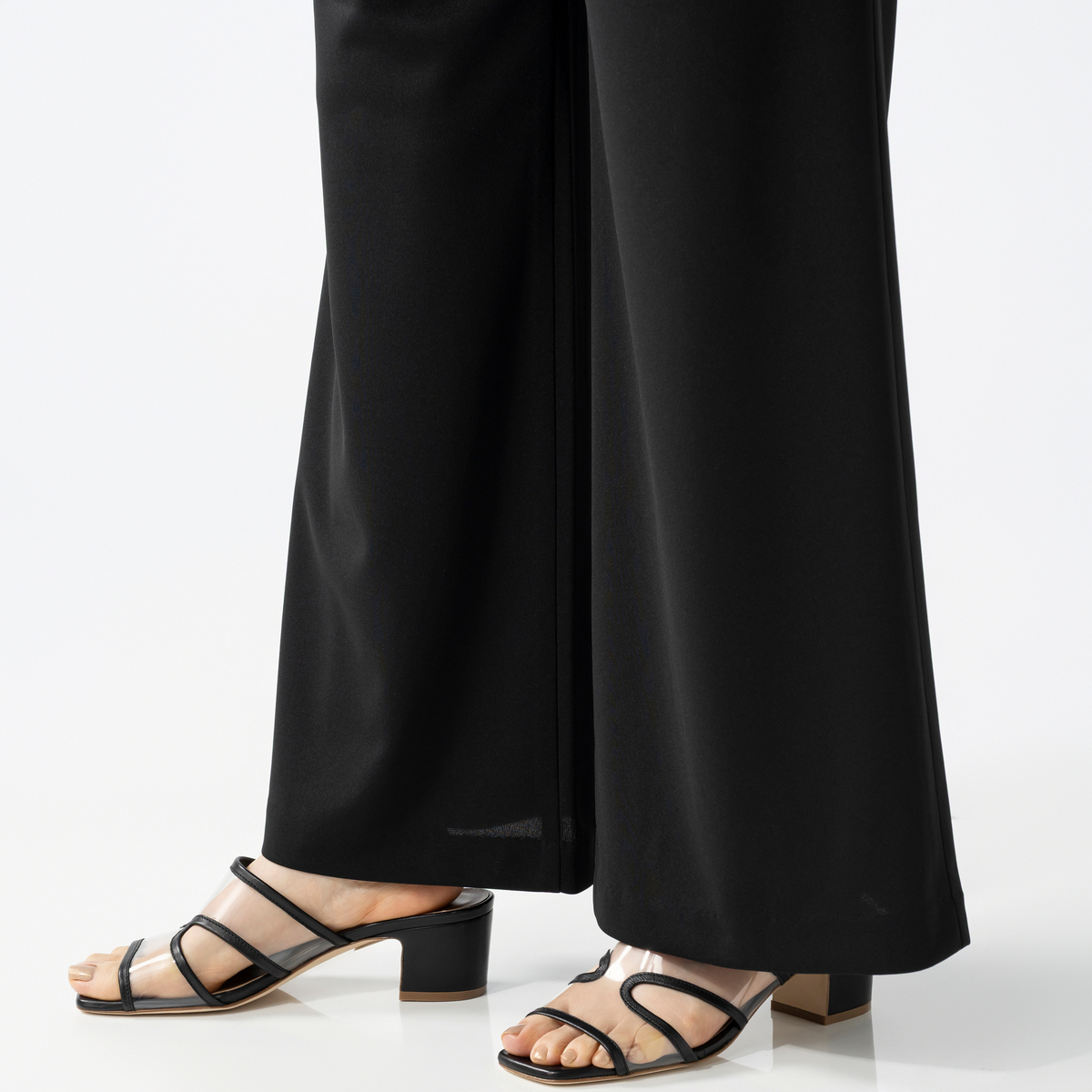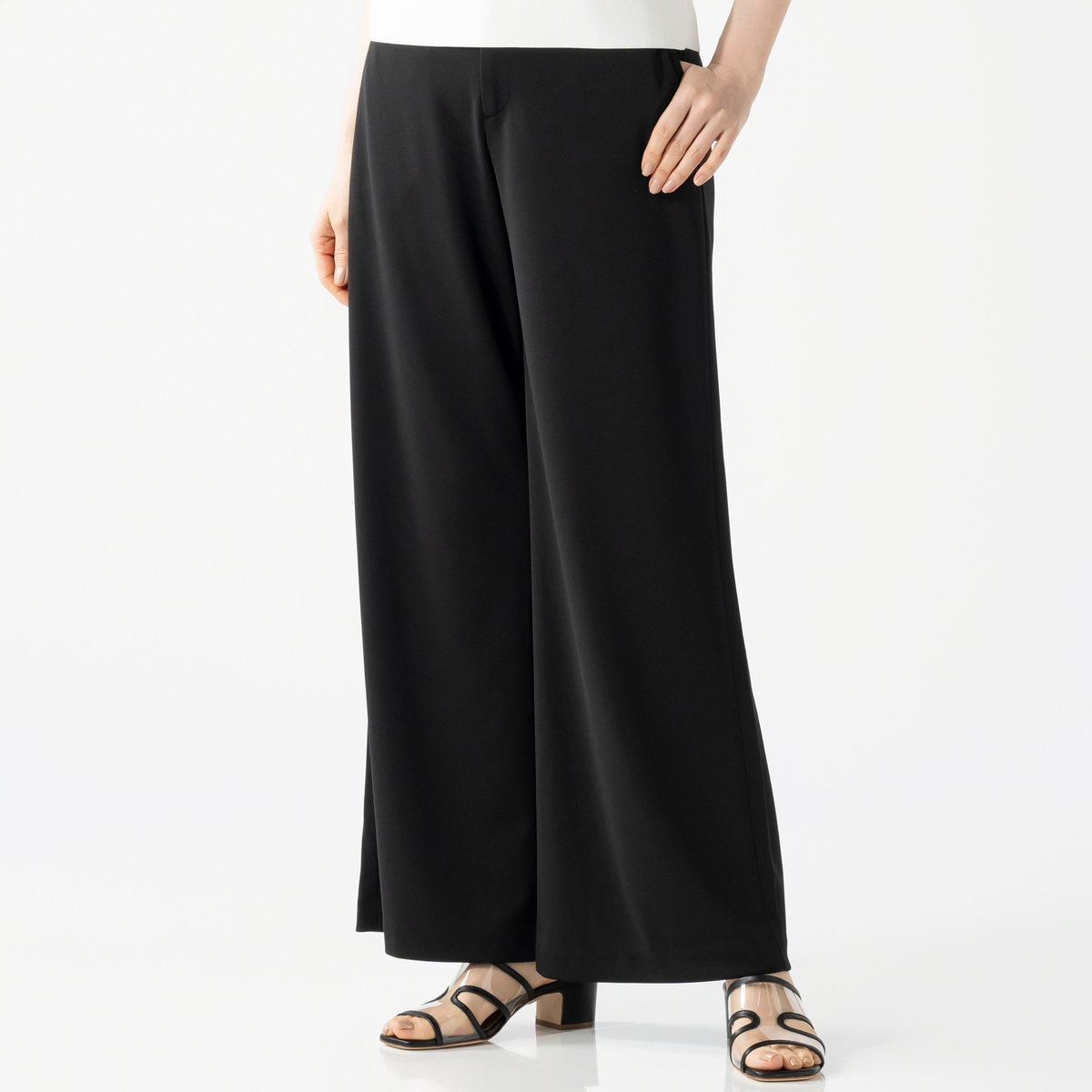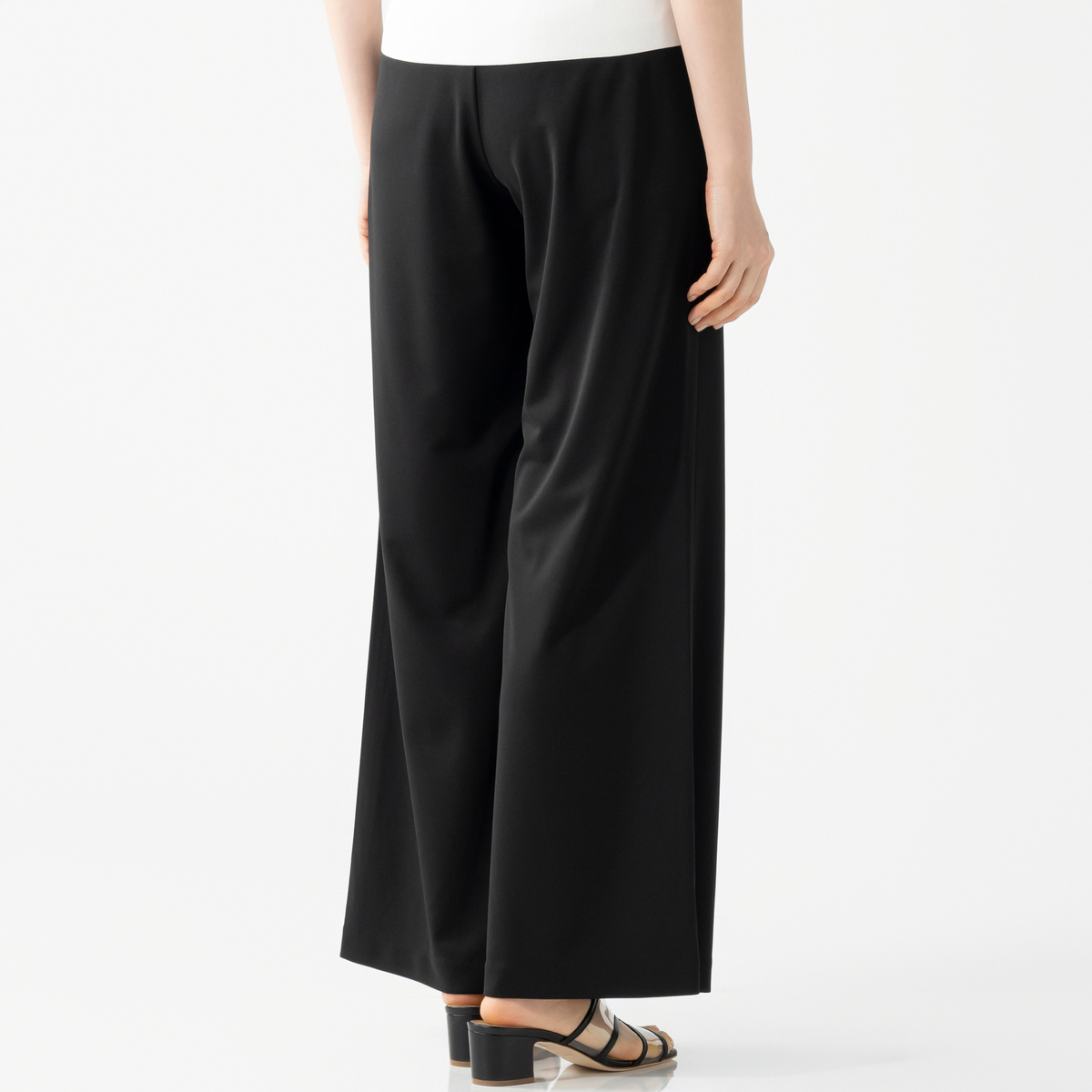 脚のラインをすっきり見せてくれるフレアシルエットのパンツ。洗練されたデザインで様々なトップスと合わせやすく、上品な印象で着こなせます