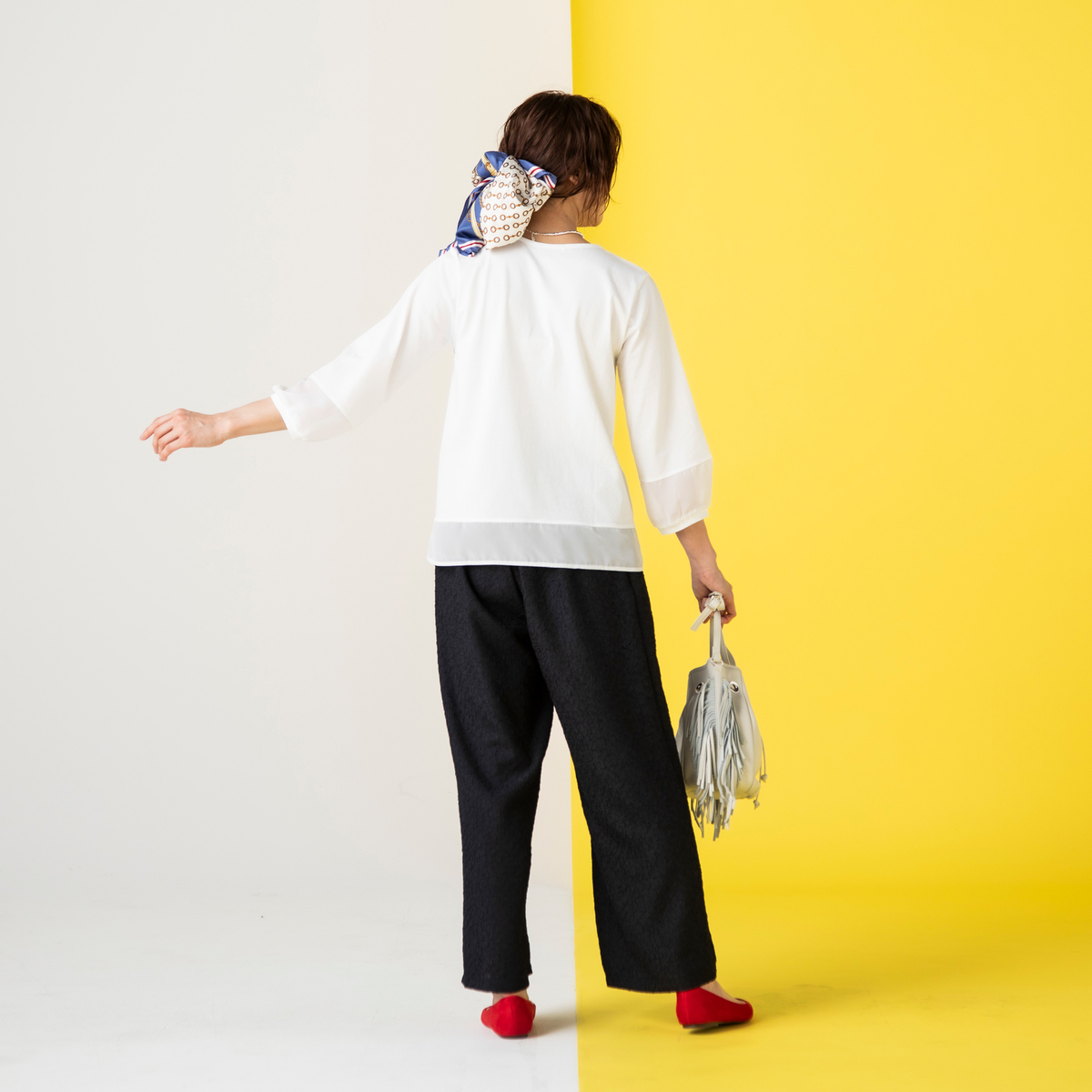 オフホワイトを購入。サラサラした素材で真夏でも涼しく着れそうです。ただ映像で見たイメージよりかなり素材が薄いです。1枚で着るのには下着選びは慎重にしなければ厳しそうです。